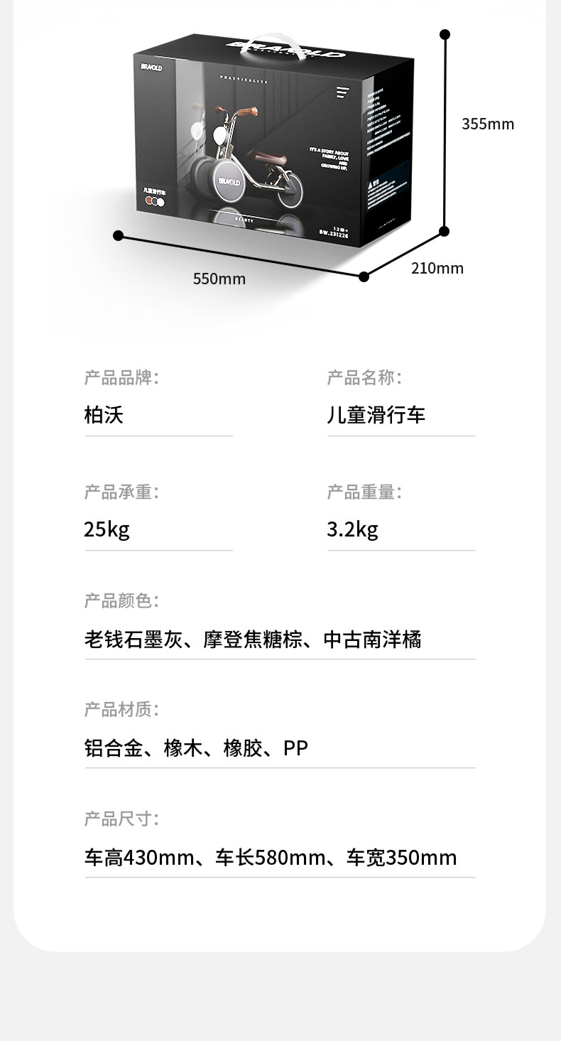 柏沃平衡车1到3岁儿童滑行宝宝2岁入门周岁礼物一岁玩具婴儿学步