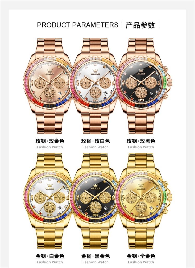 Color Classification Celebrity Endorsement - Stainless Steel Rose Gold Black Dial,Celebrity Endorsement - Stainless Steel Rose Gold White Dial,Celebrity Endorsement - Stainless Steel Rose Gold Dial,Celebrity Endorsement - All-Steel Gold & Black Dial,Celebrity Endorsement - Stainless Steel Band, All Gold, White Dial,Celebrity Endorsement - All Gold Steel Band with Gold Face,Upgraded Version-Steel Belt Rose Gold Black Surface,Upgraded Version-Steel Belt Rose Gold White Surface,Upgraded Version-Steel Belt Rose Gold Rose Surface,Upgraded Version - Steel Belt with All Gold and Black Surface,Upgraded Version - Steel Belt with All Gold and White Surface,Upgraded Version - Steel Belt with Full Gold Surface