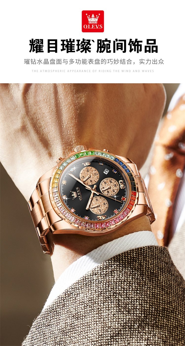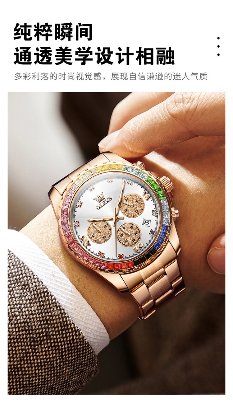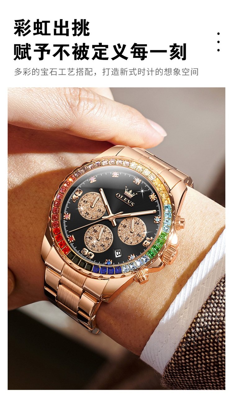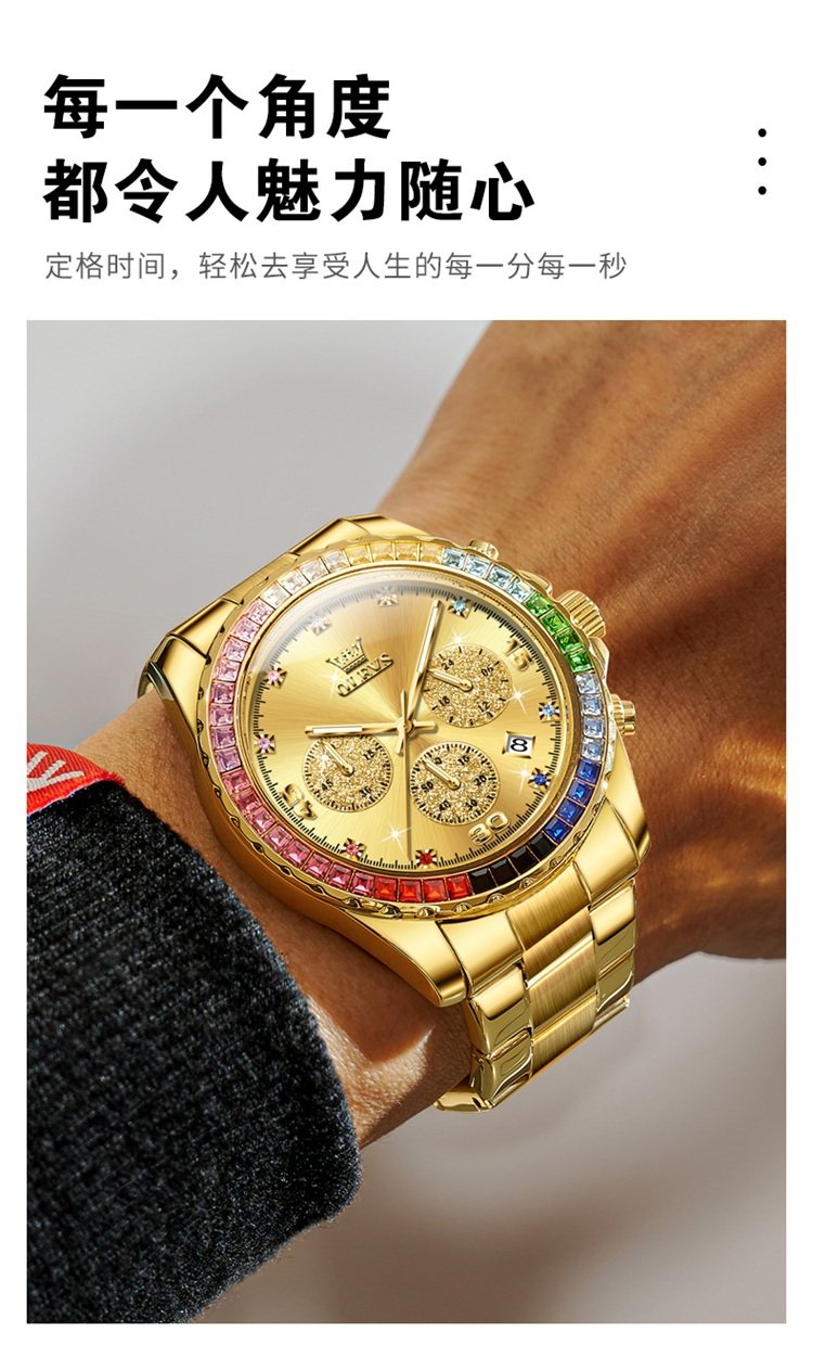 Swiss Watch Men's Panda Daytona Rainbow Di Watch Men's Colored Diamond Waterproof High-End Elegant Men's Watch