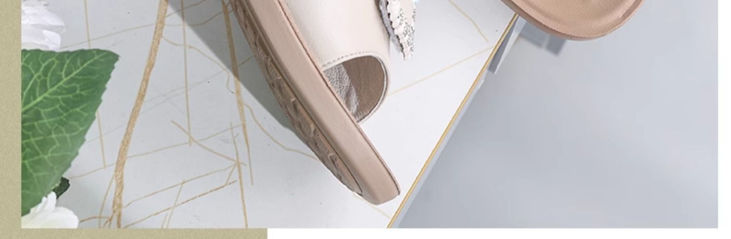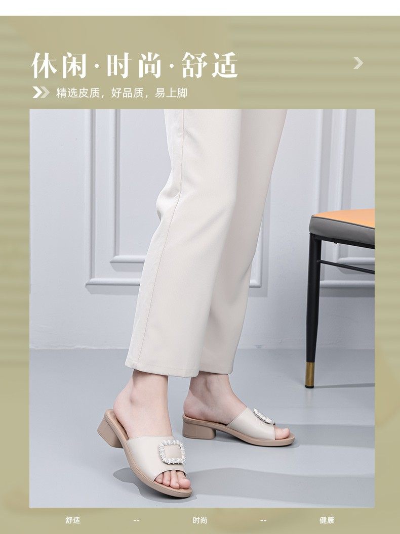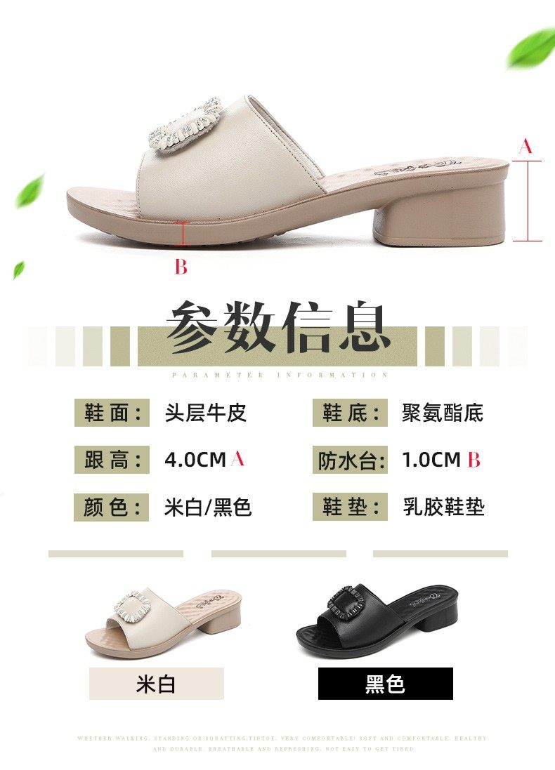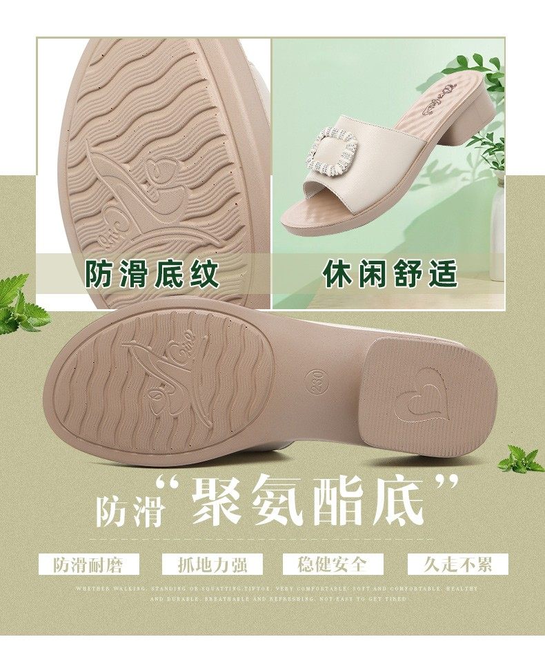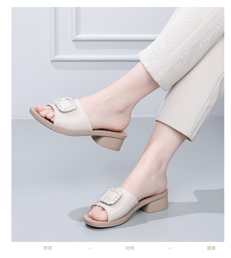 Genuine Leather Slippers for Women, Summer Mom Slippers, Thick Heels, Middle-Aged Sandals, Women's Soft Soles, Medium Heels, Women's Slippers