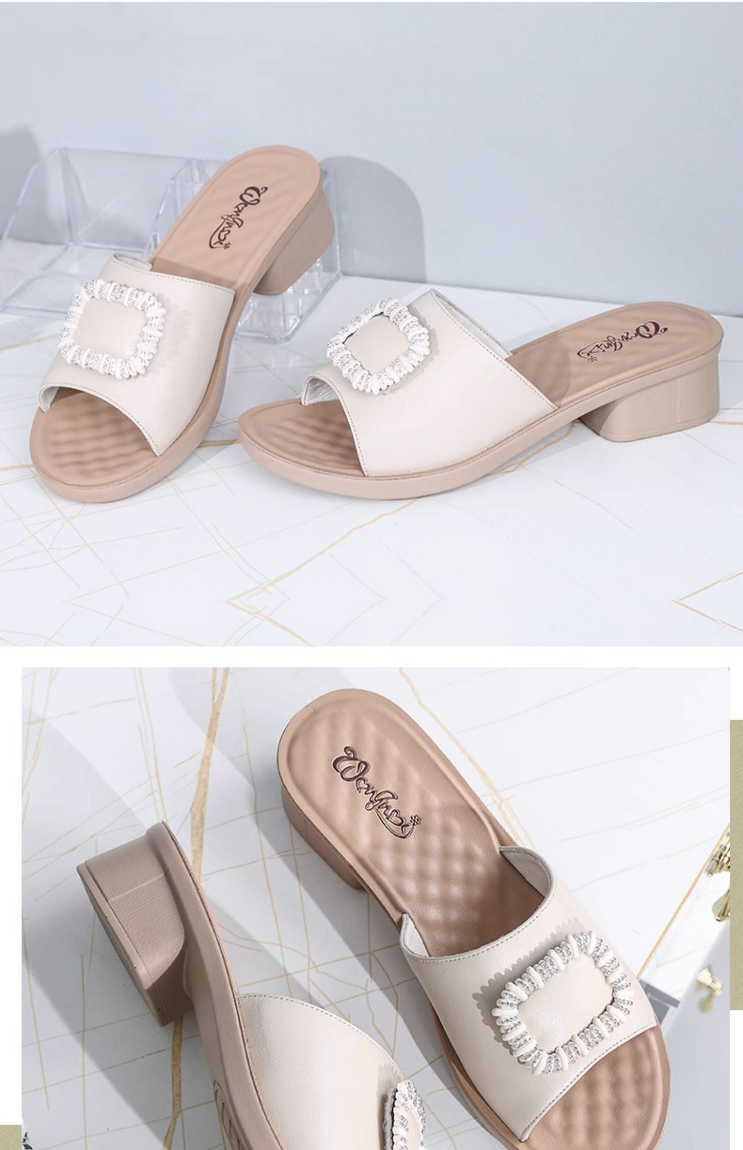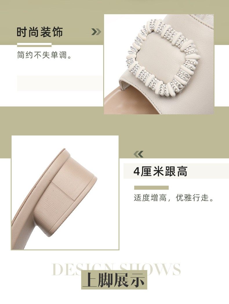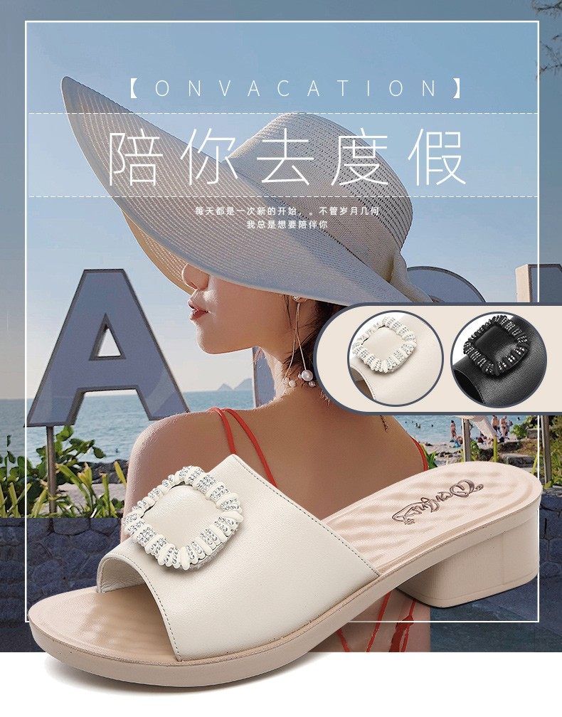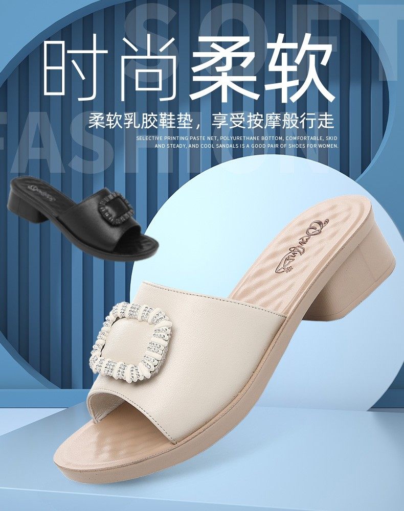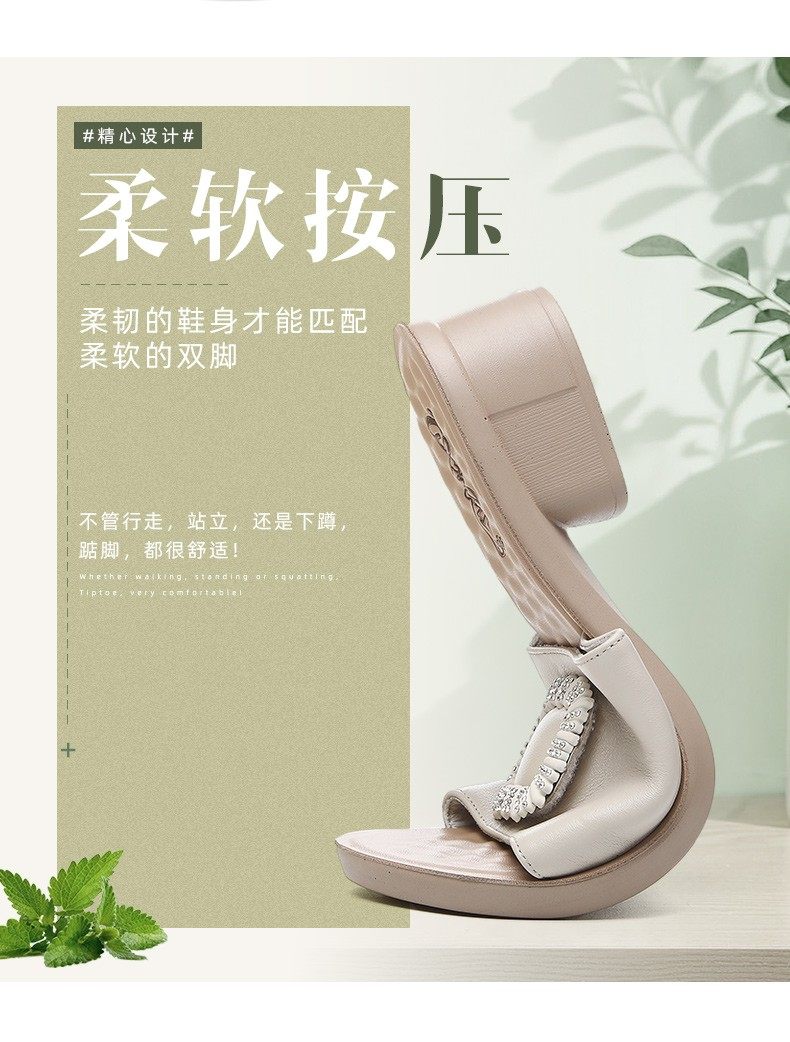 Genuine Leather Slippers for Women, Summer Mom Slippers, Thick Heels, Middle-Aged Sandals, Women's Soft Soles, Medium Heels, Women's Slippers