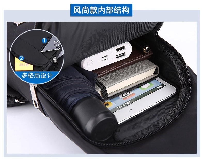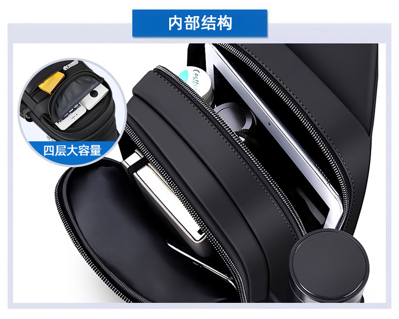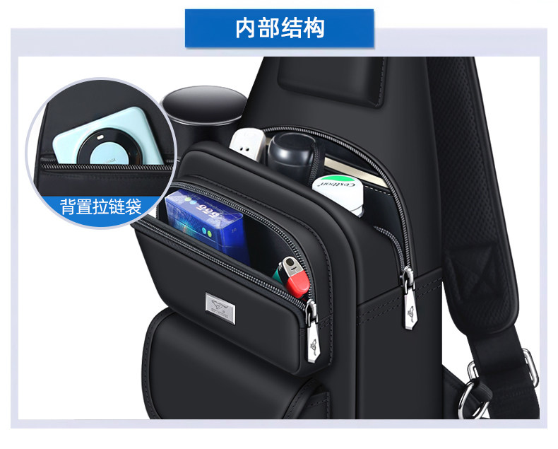 Innere Struktur Haupttasche,Handytasche,Geheimtasche mit Reißverschluss,laminierte Reißverschlusstasche,Kameratasche,ID-Steckplatz,Münzbeutel