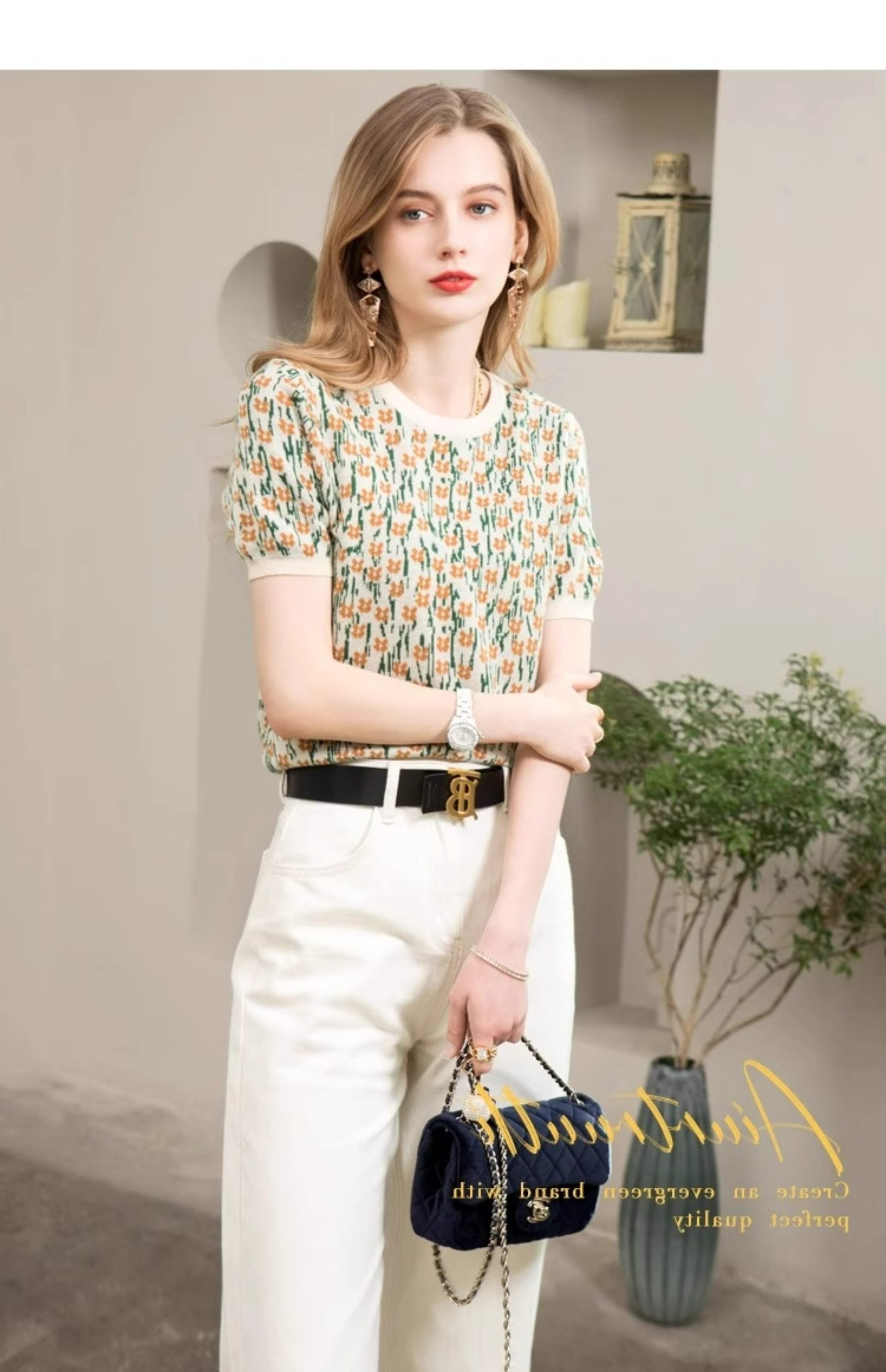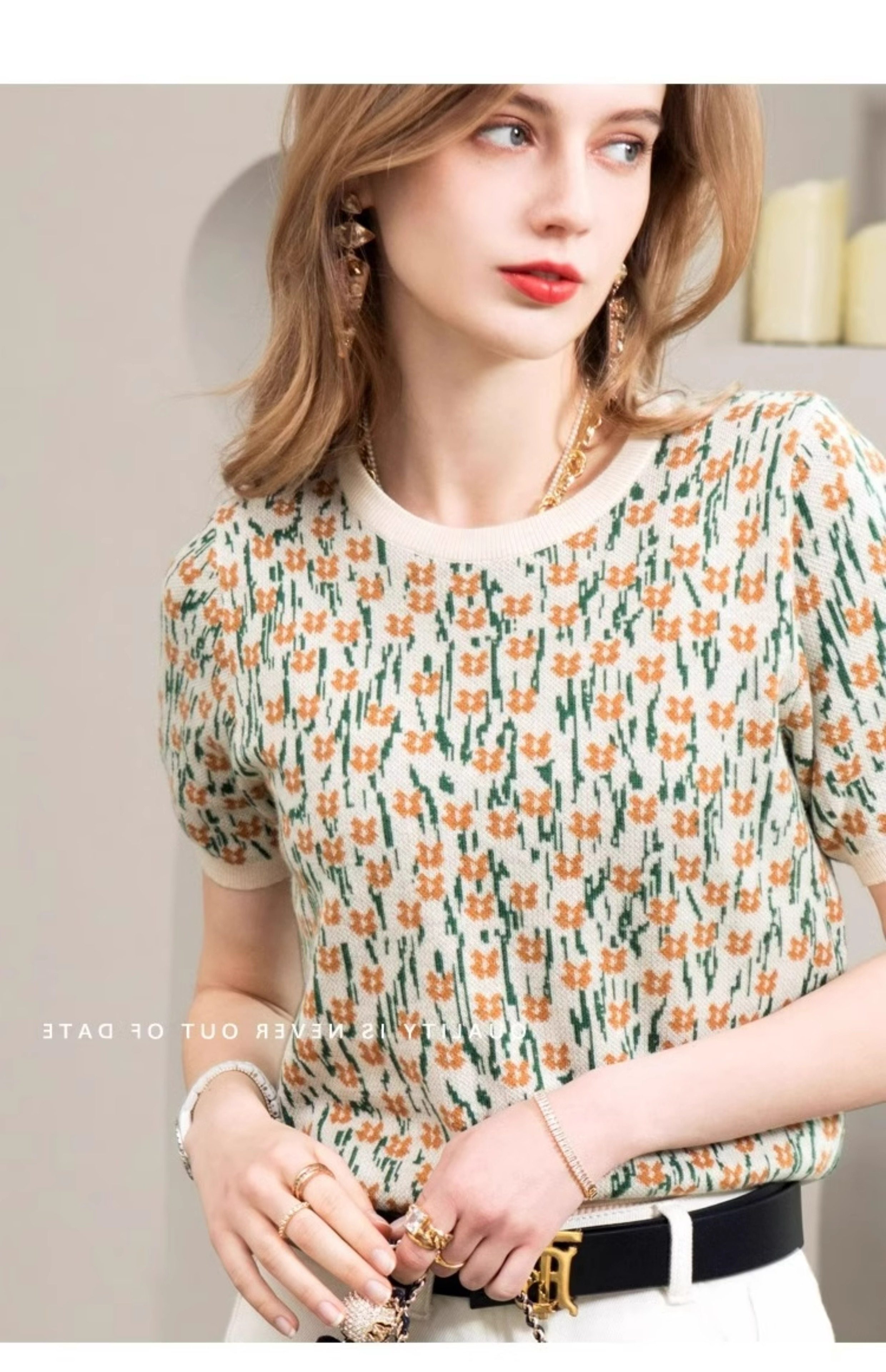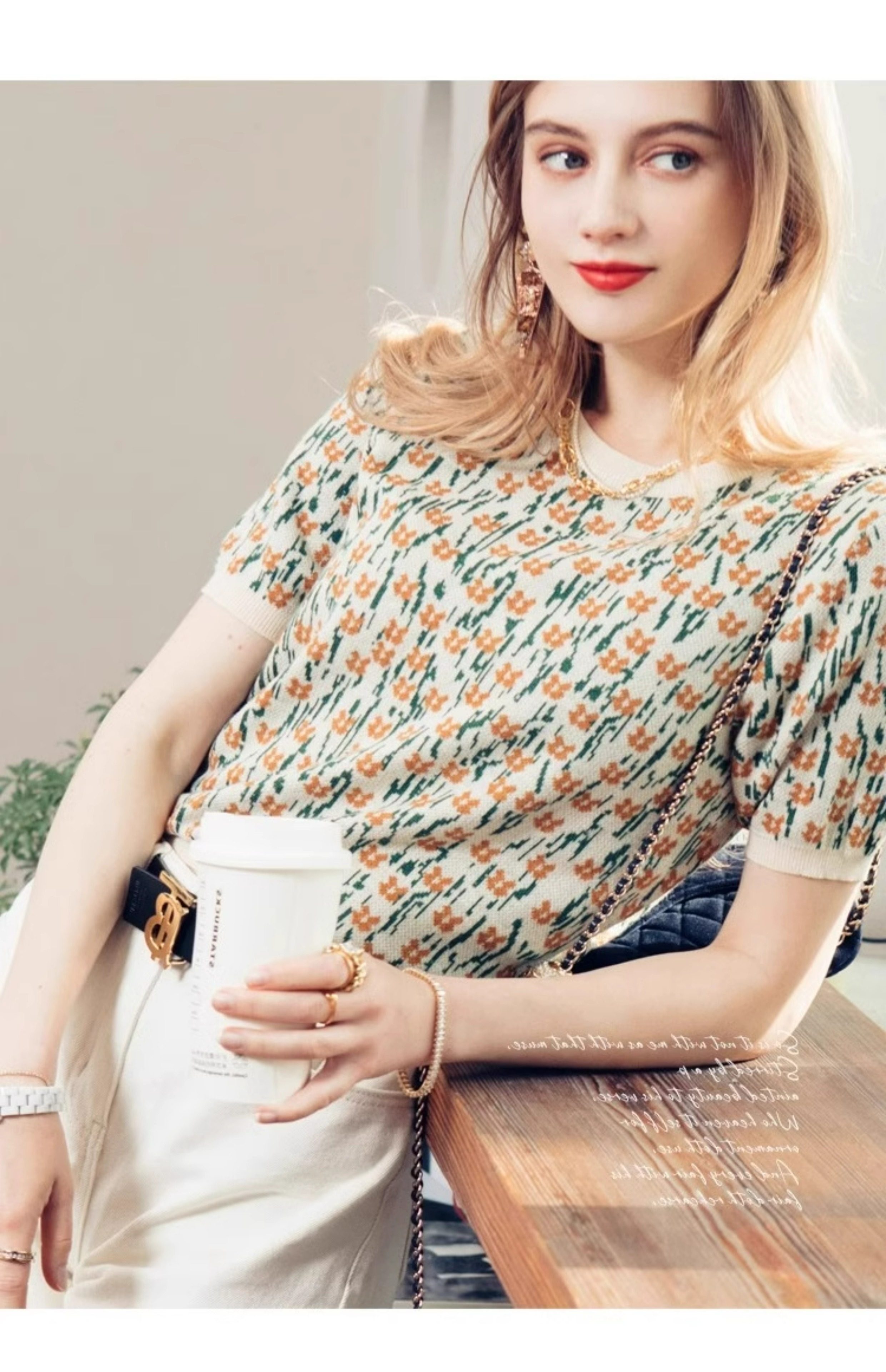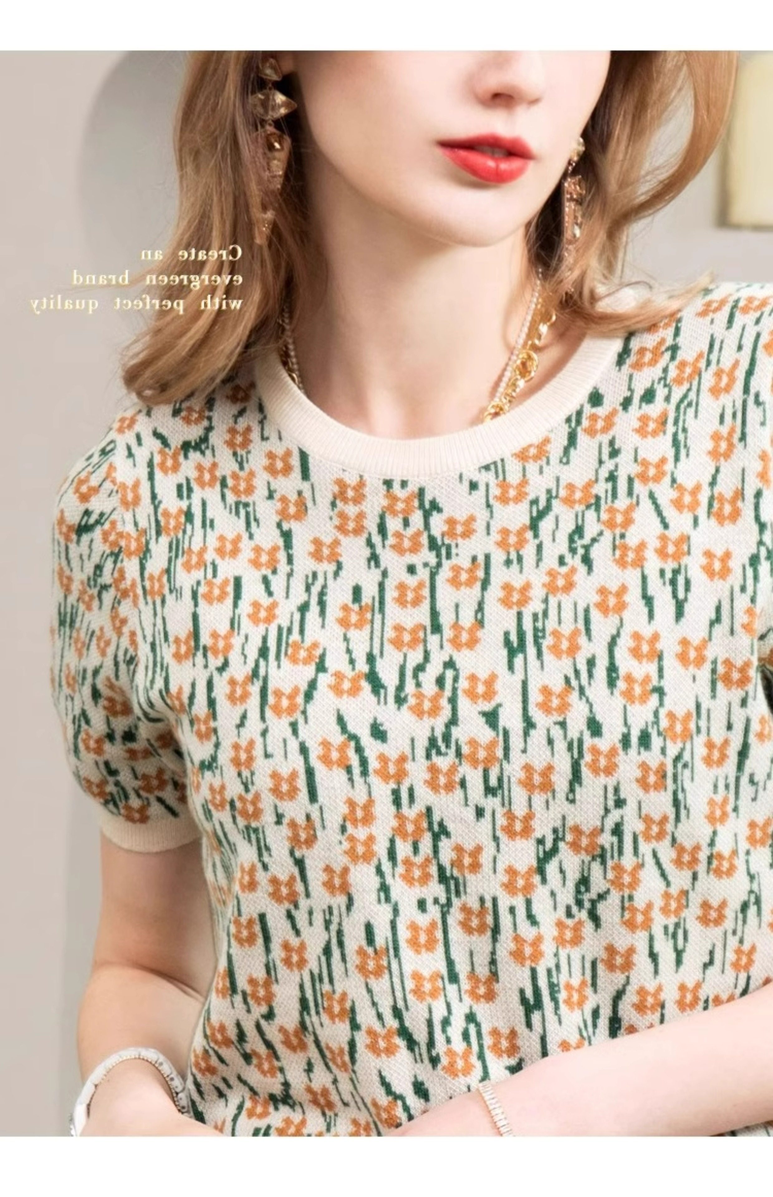 French-Style Unique and Chic Design Floral Short-Sleeved T-Shirt Summer Wear Loose, Comfortable and Breathable Round Neck Pullover Top for Women