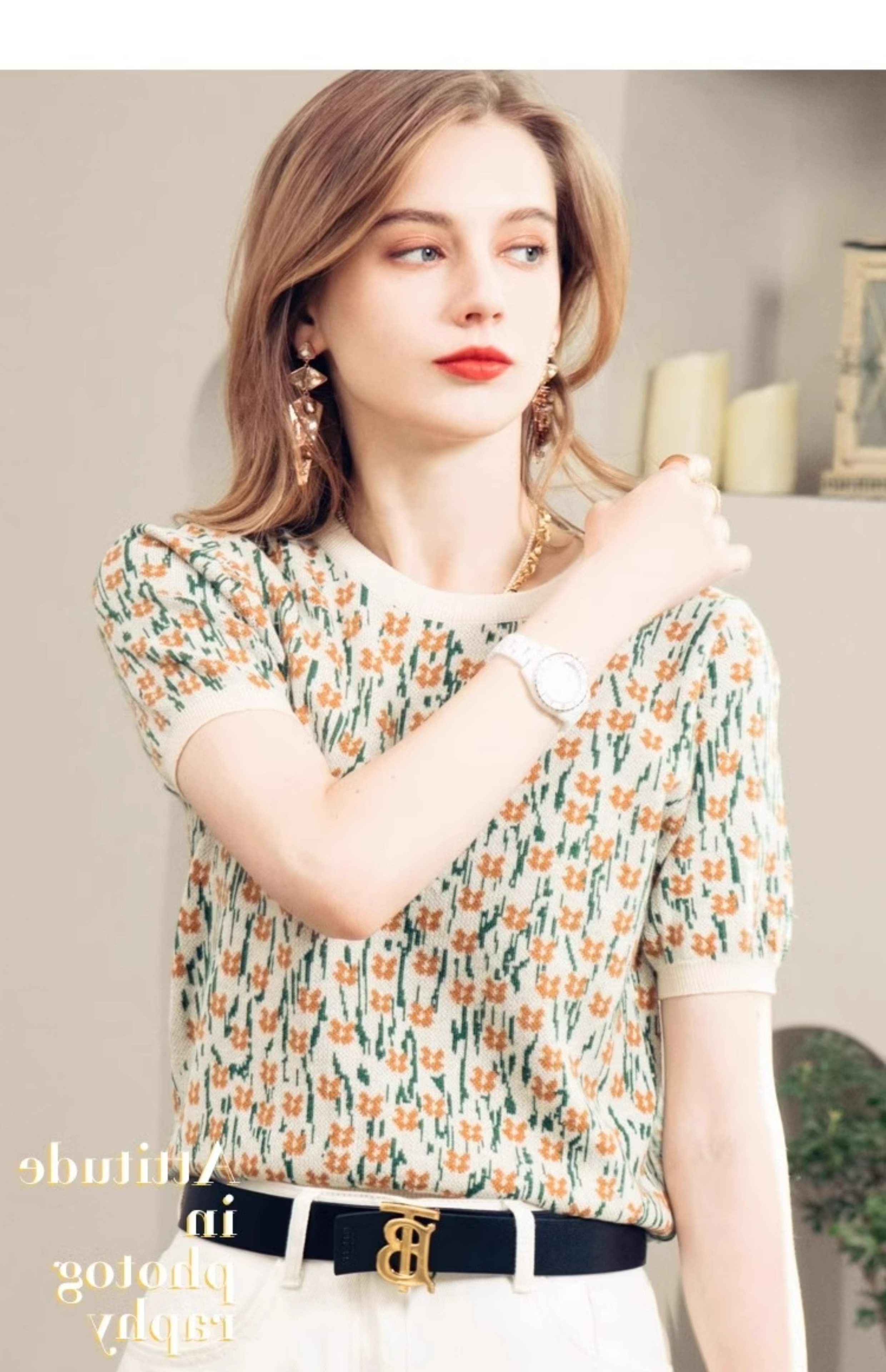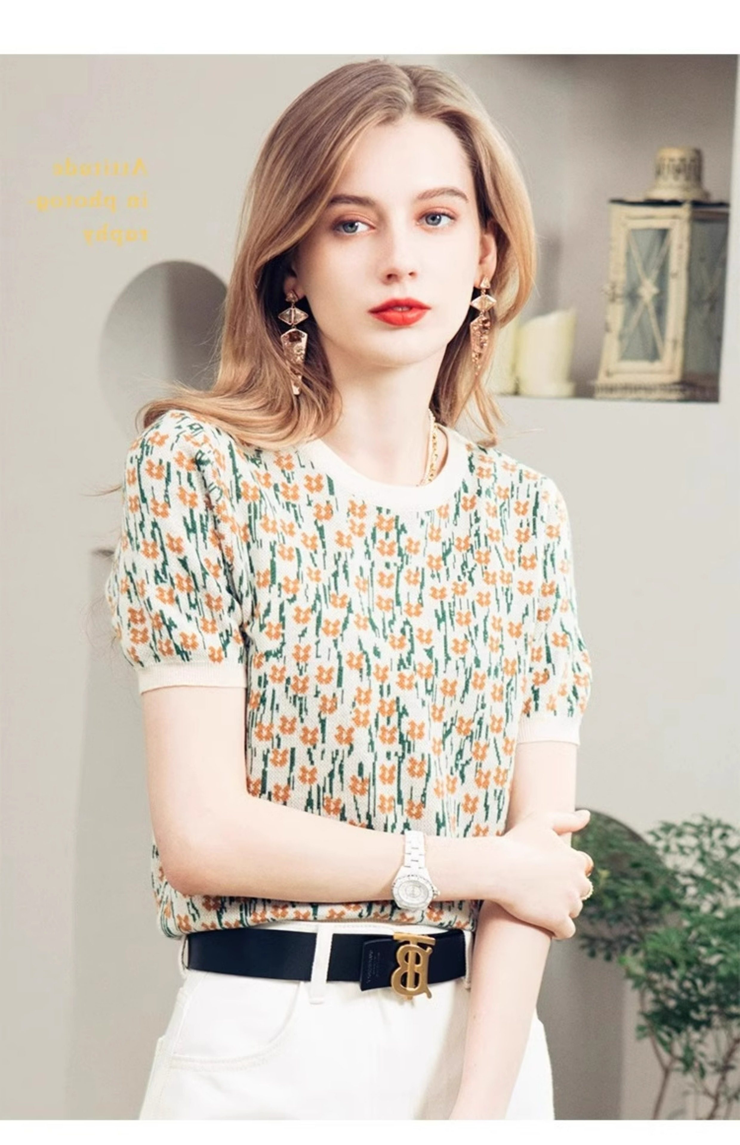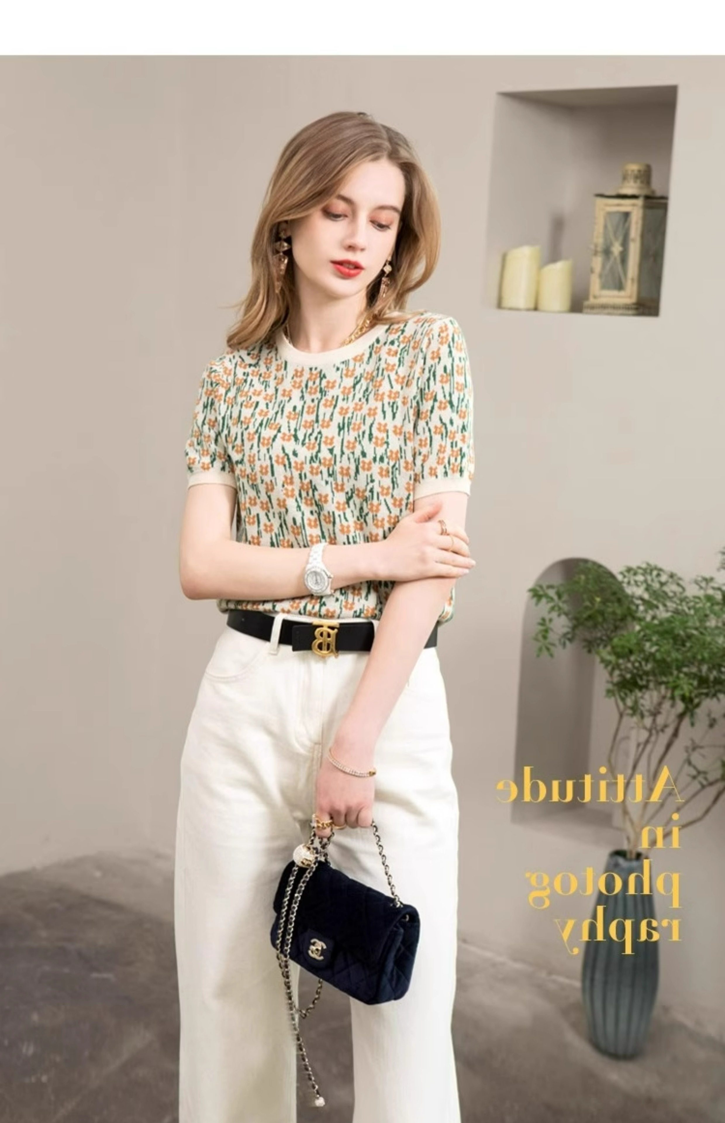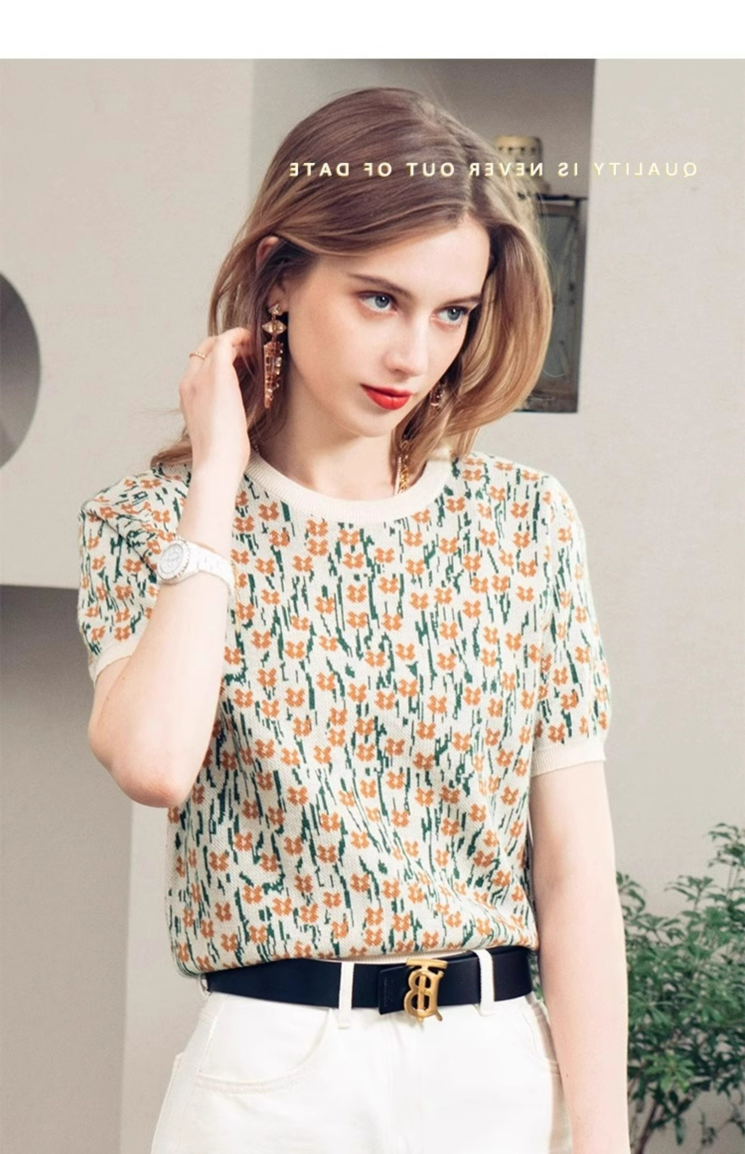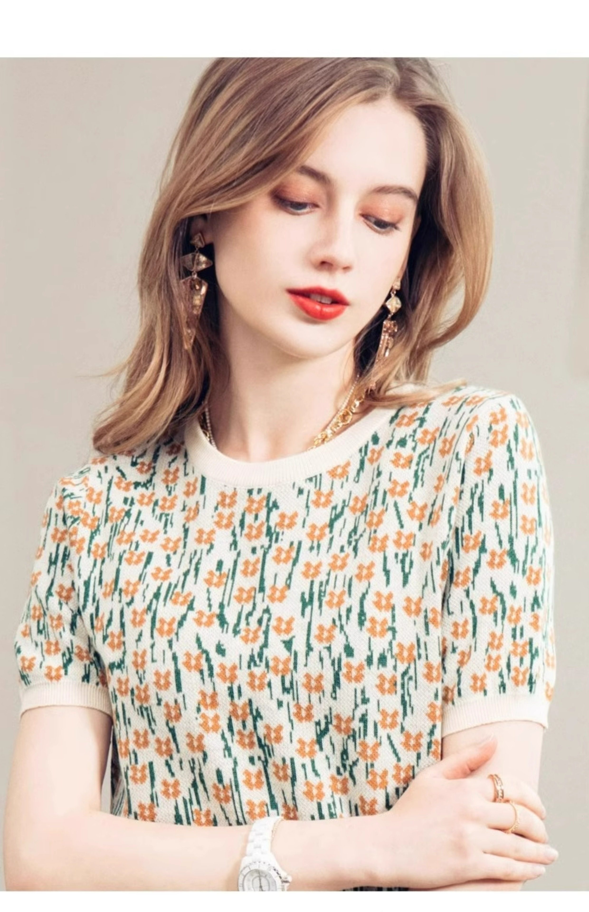 French-Style Unique and Chic Design Floral Short-Sleeved T-Shirt Summer Wear Loose, Comfortable and Breathable Round Neck Pullover Top for Women