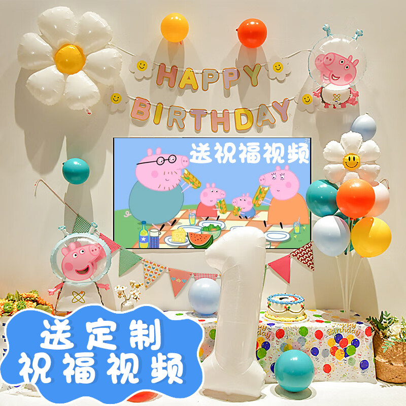Peppa Pig Birthday Scene Decoration Tv Projection Screen 3-Year-Old Boy Girl George Balloon Background Wall