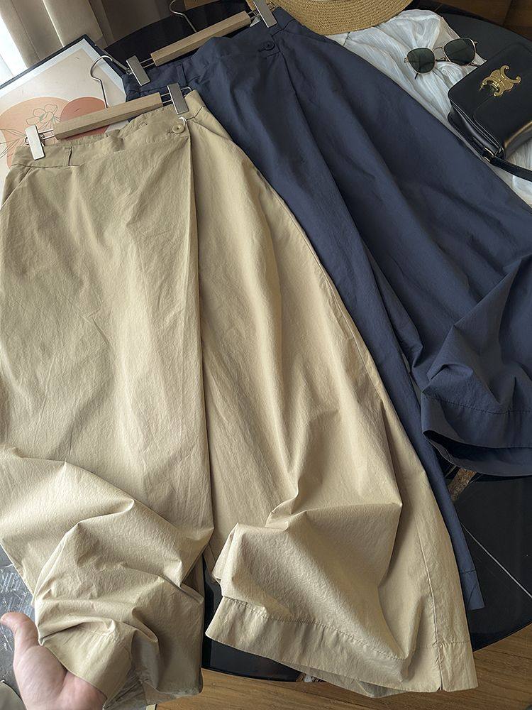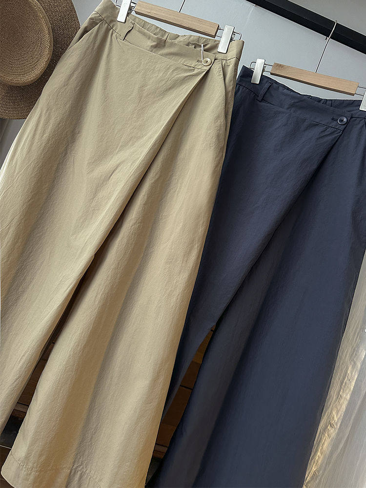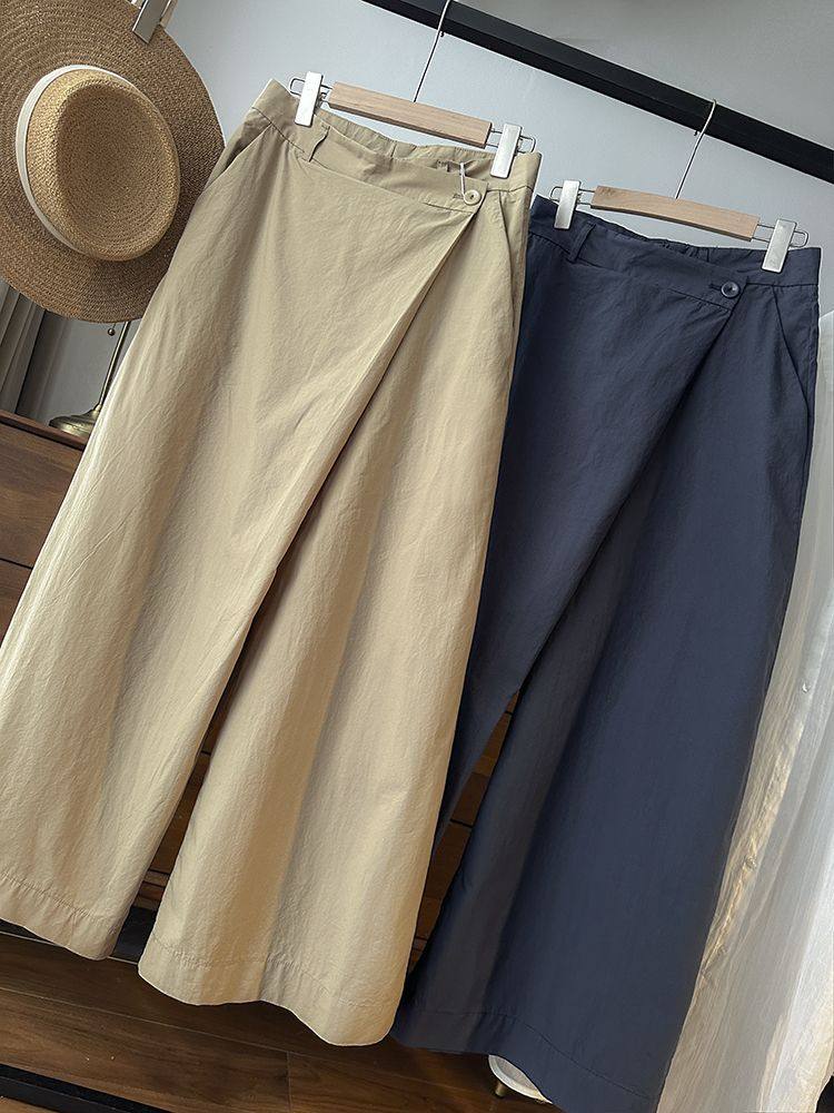 太爱了!设计感时尚百搭不对称斜边高腰显瘦阔腿裤休闲裤长裤女新