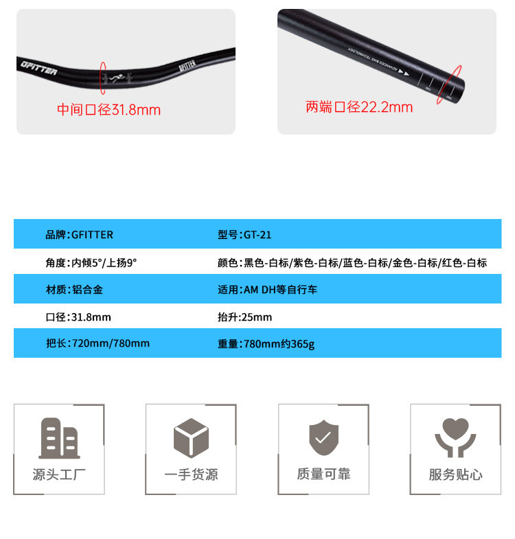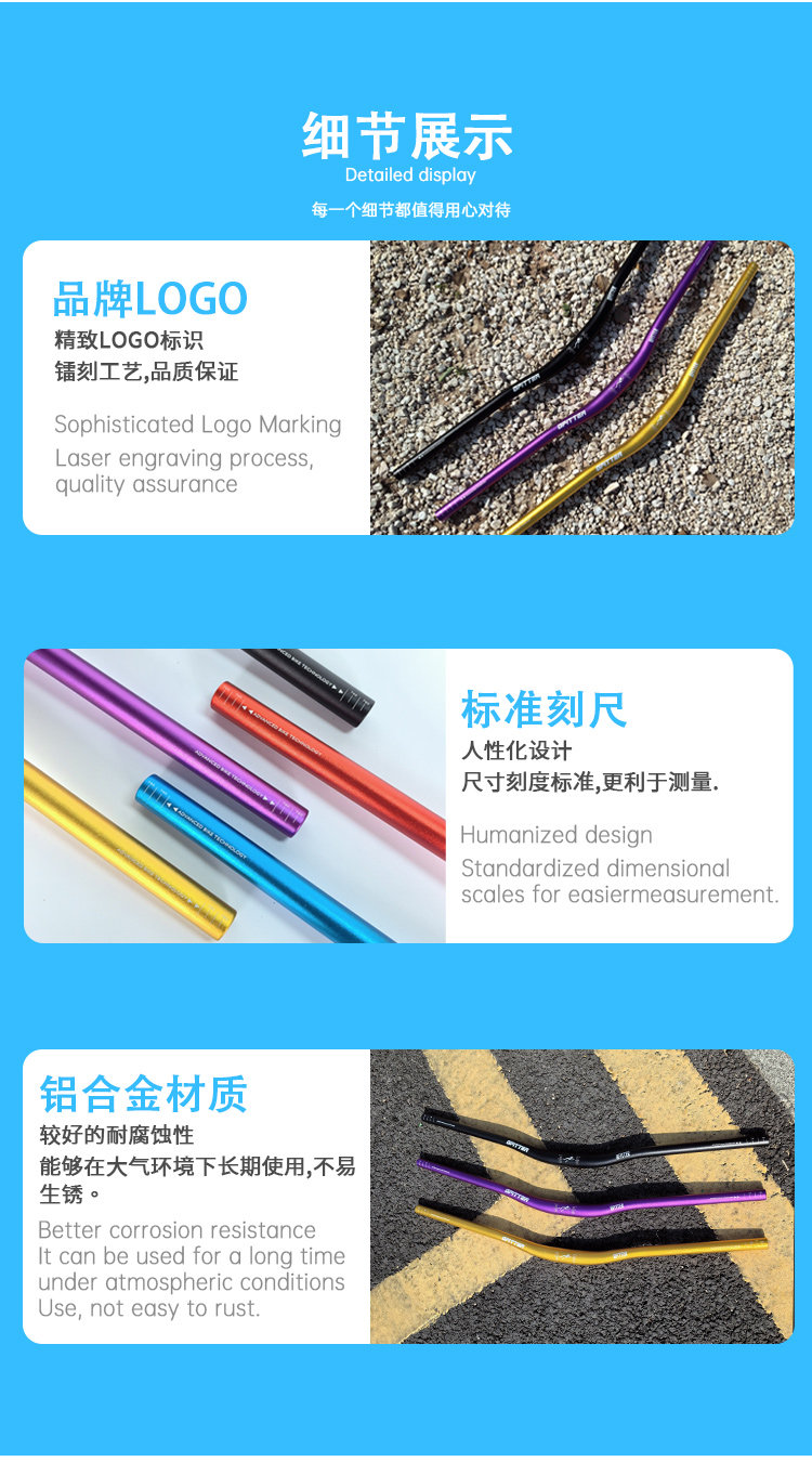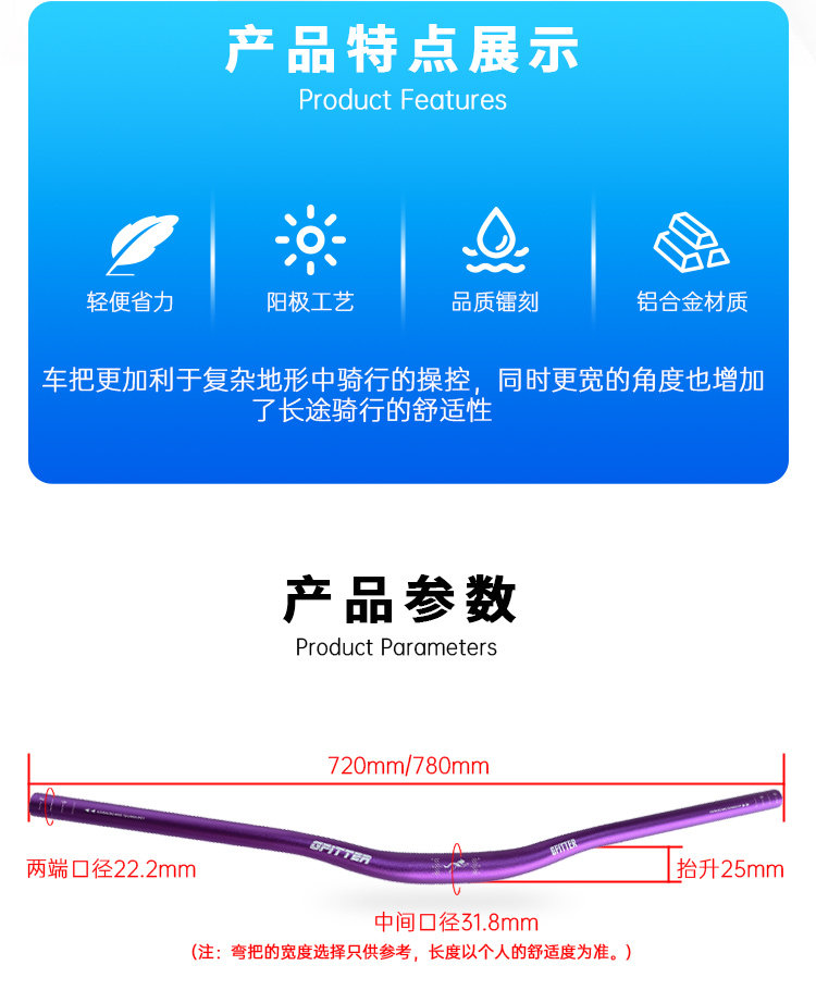 Suitable for Xidesheng Mountain Bike Handlebars, Aluminum Alloy Handlebars, Special Horizontal Handlebars with Raised Ends, 720/780mm Bicycle Large Handlebars