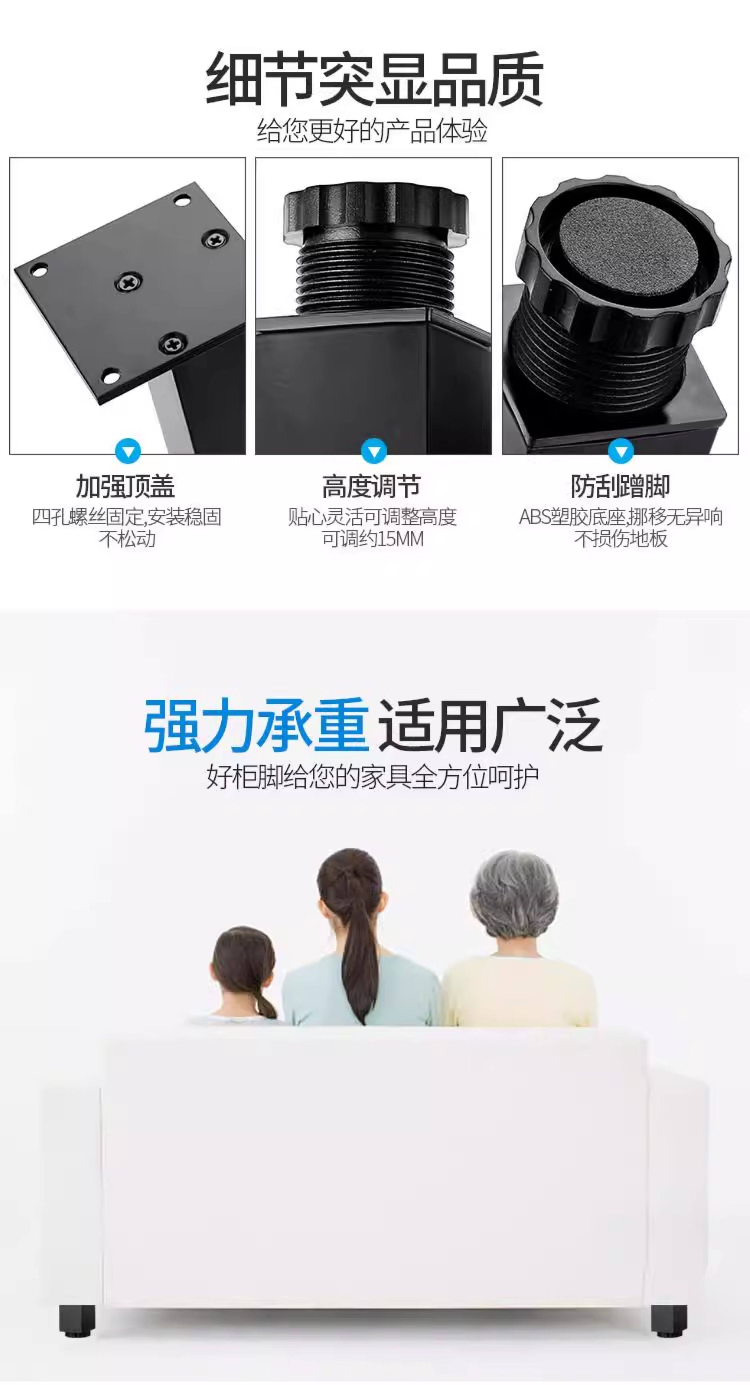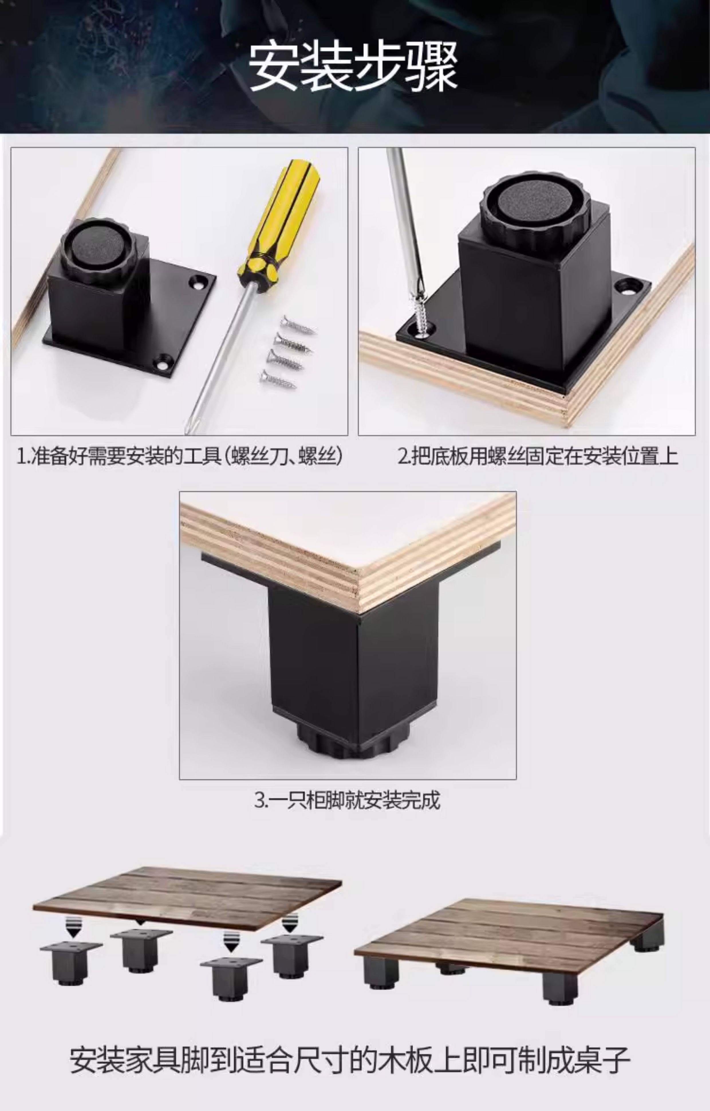 Pieds de meuble pieds d'armoire carrés réglables pieds d'armoire en alliage d'aluminium support de coussinets pieds d'armoire pieds réglables pieds d'armoire de salle de bain