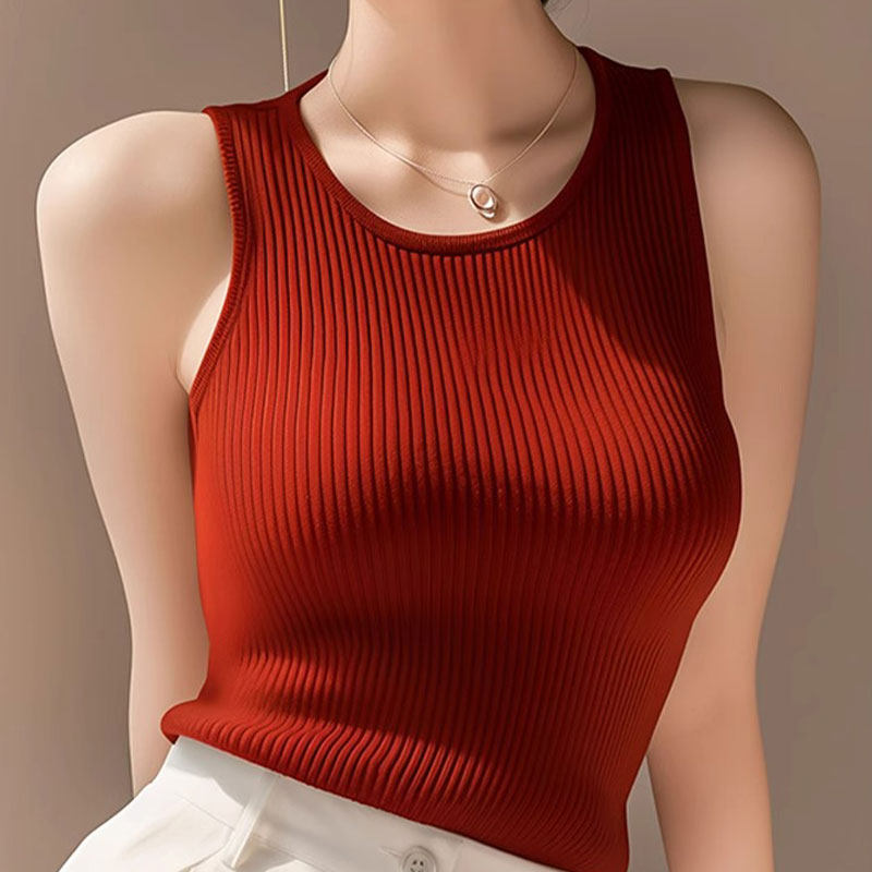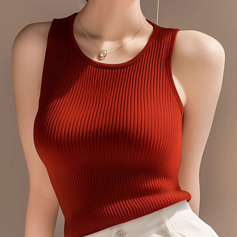 法式高端洋气修身显瘦背心吊带今年流行漂亮上衣夏季冰丝无袖坎肩