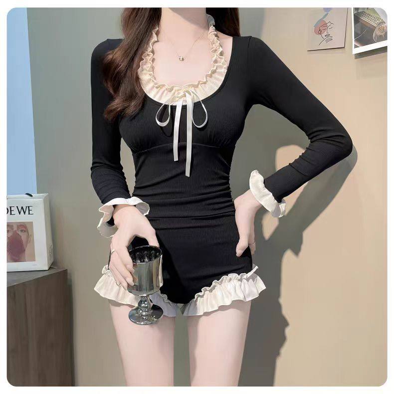 2025新款连体泳衣女士纯欲风高级感学生显瘦遮肚子肉保守黑色长袖