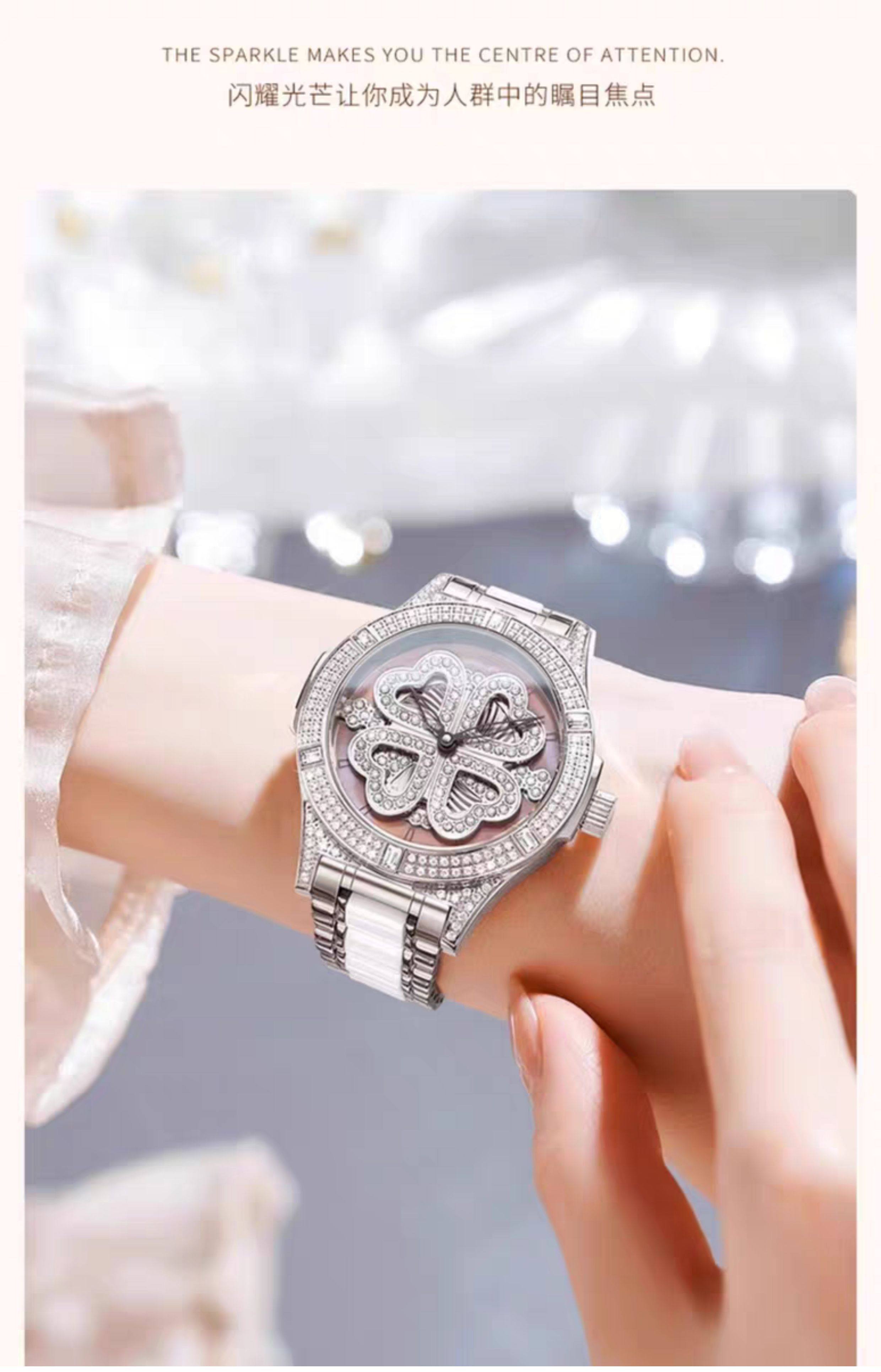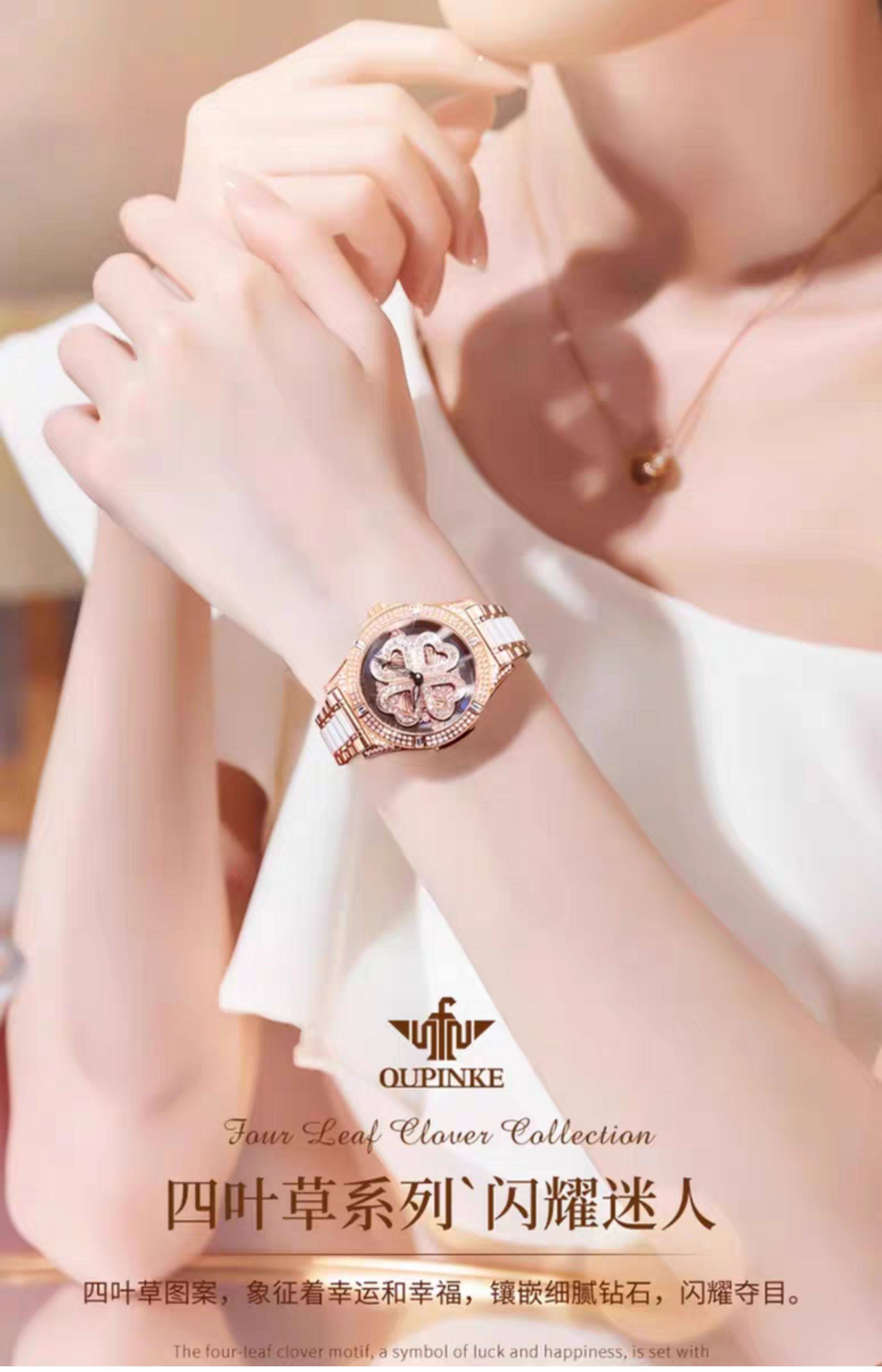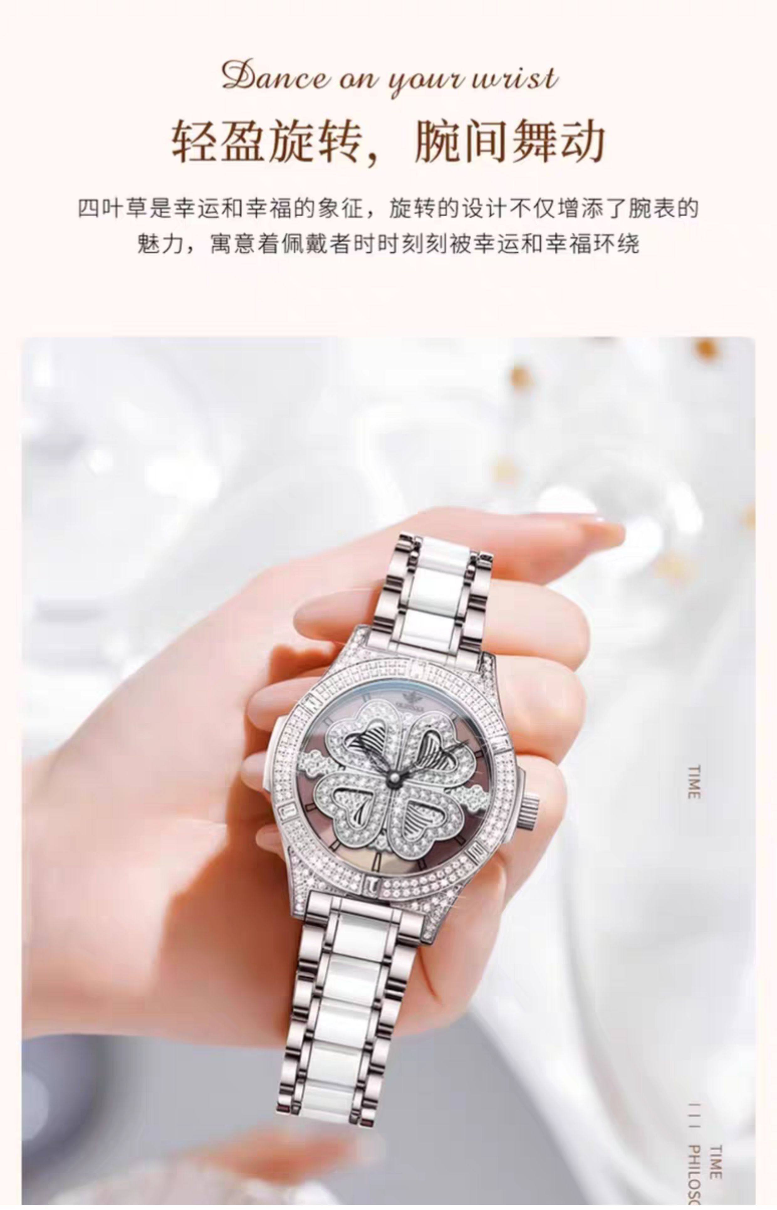 Швейцарские оригинальные женские часы с дизайном в виде четырехлистного клевера, модные и элитные, в стиле легкой роскоши, с керамическим ремешком, идеально подходят для подарка.