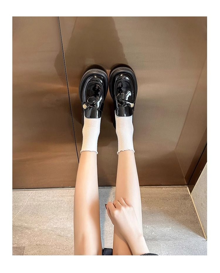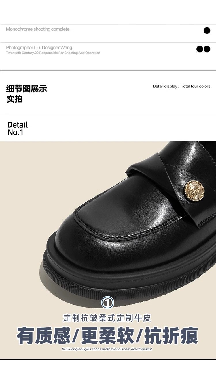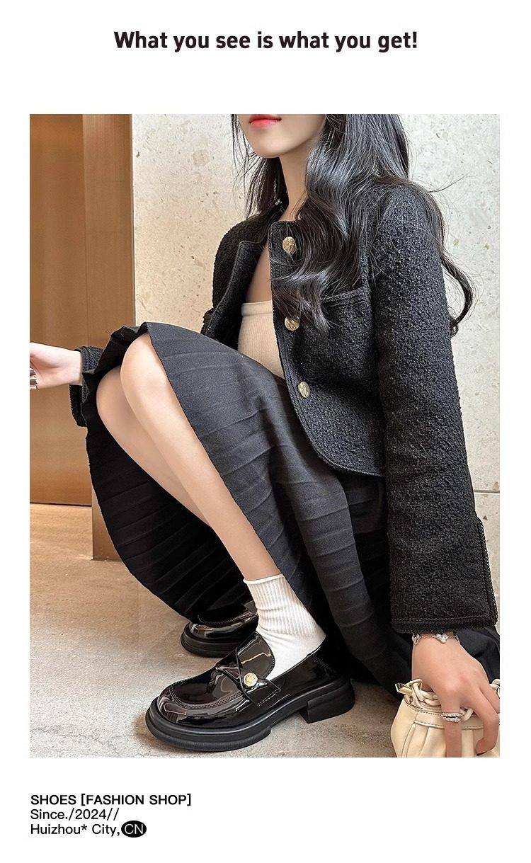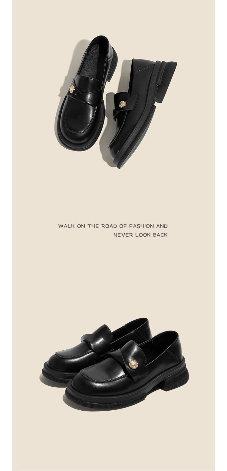 Zeigt kleine Füße ~ Echtleder kleine Goldmünze Loafer mit dicken Sohlen für Frauen 2024 Herbst neue JK-Einzelschuhe faule kleine Lederschuhe mit dickem Absatz