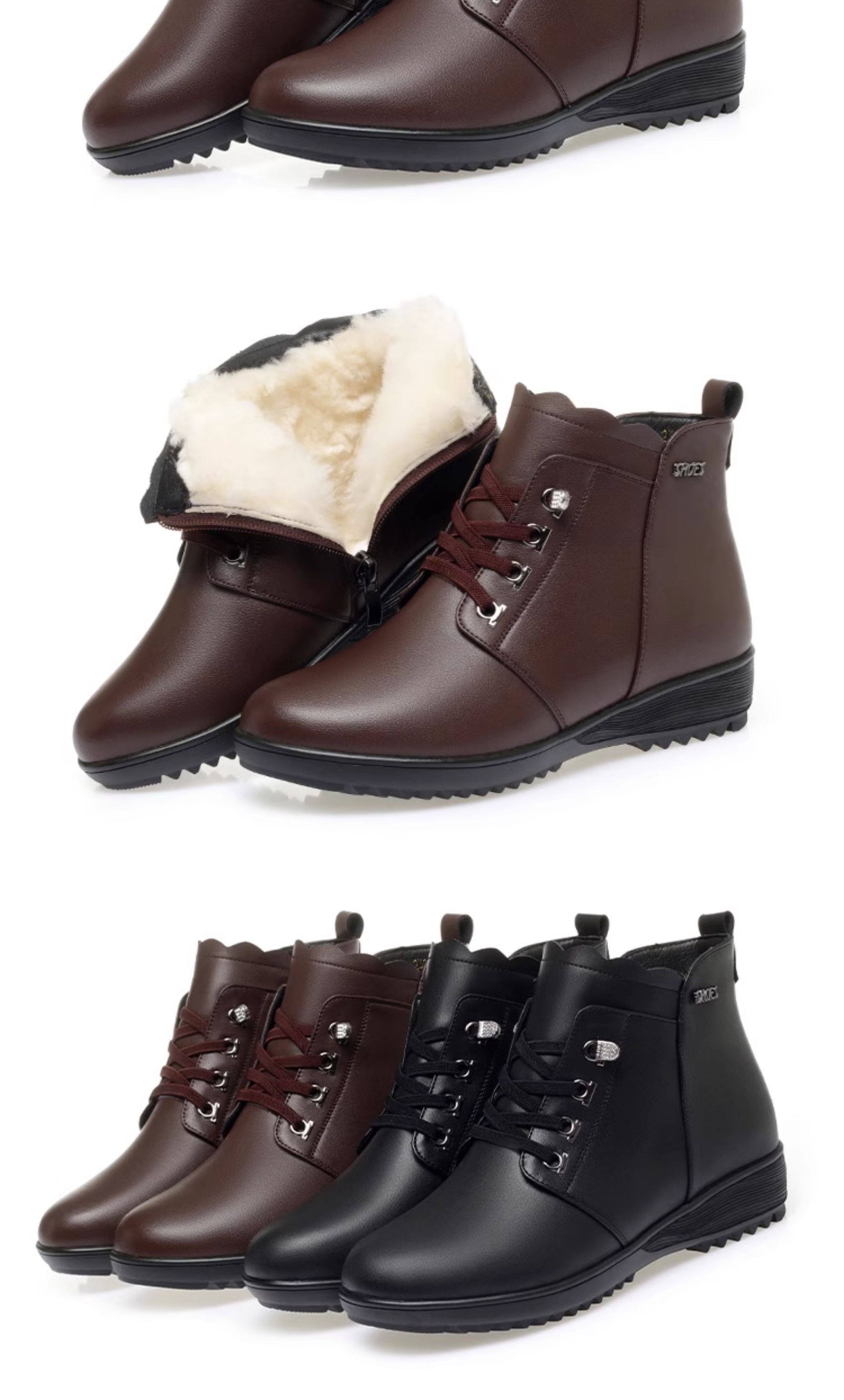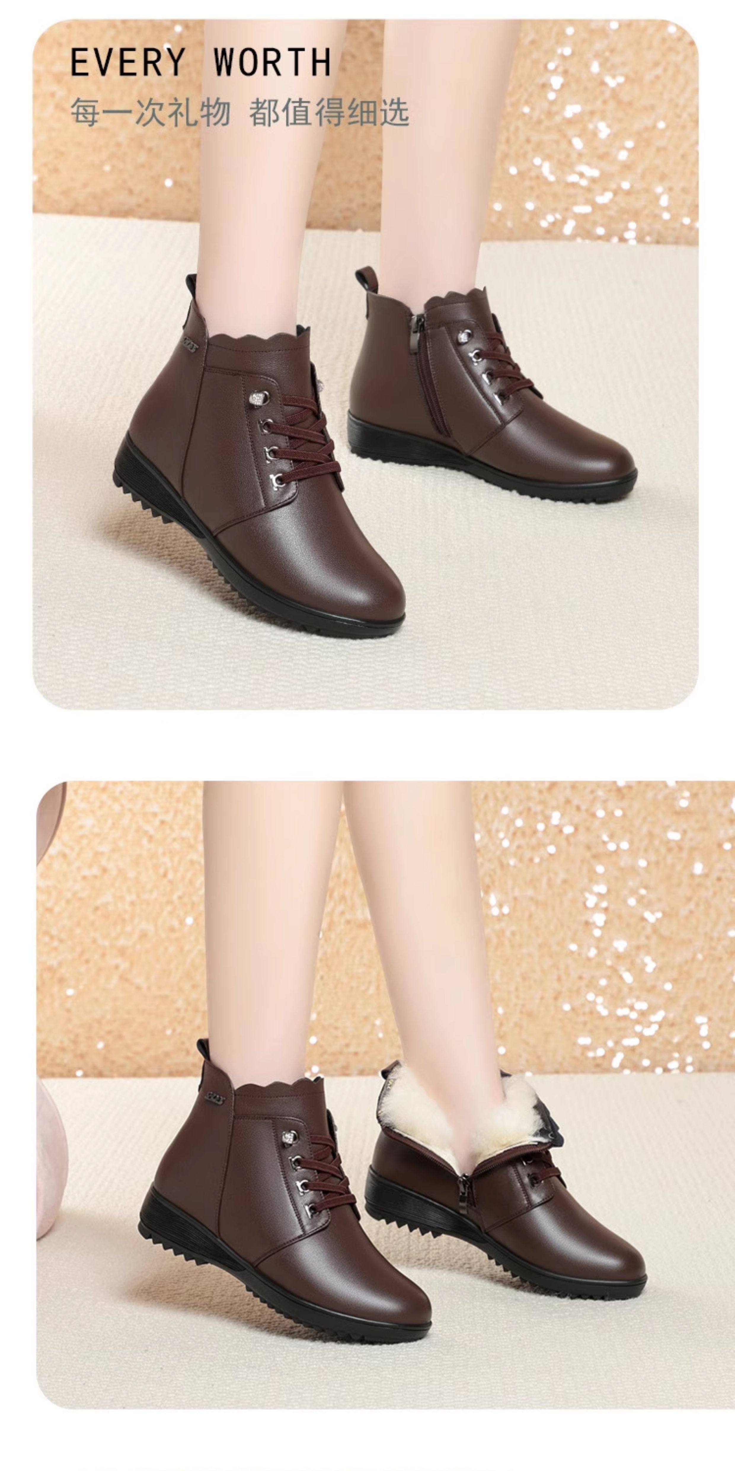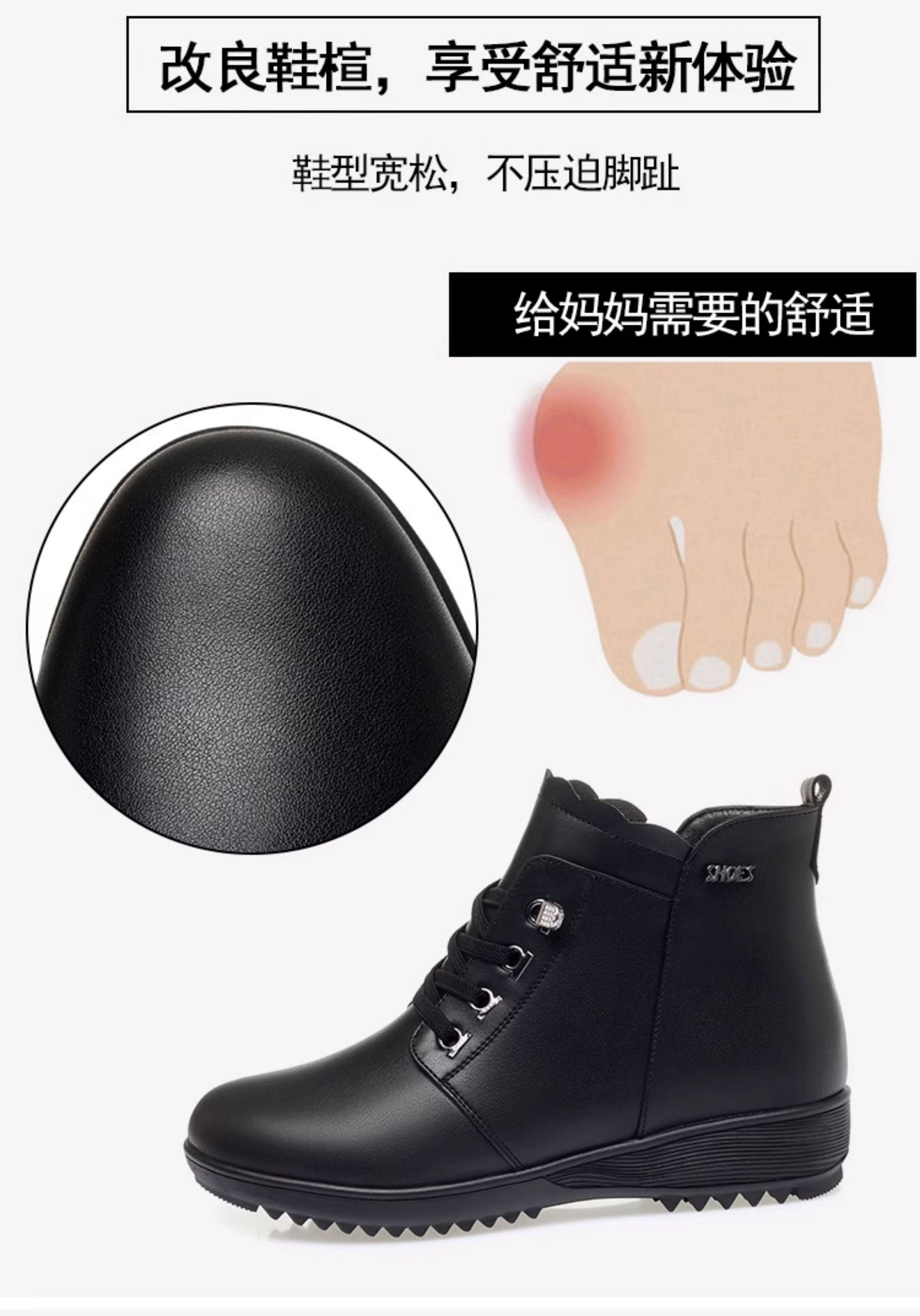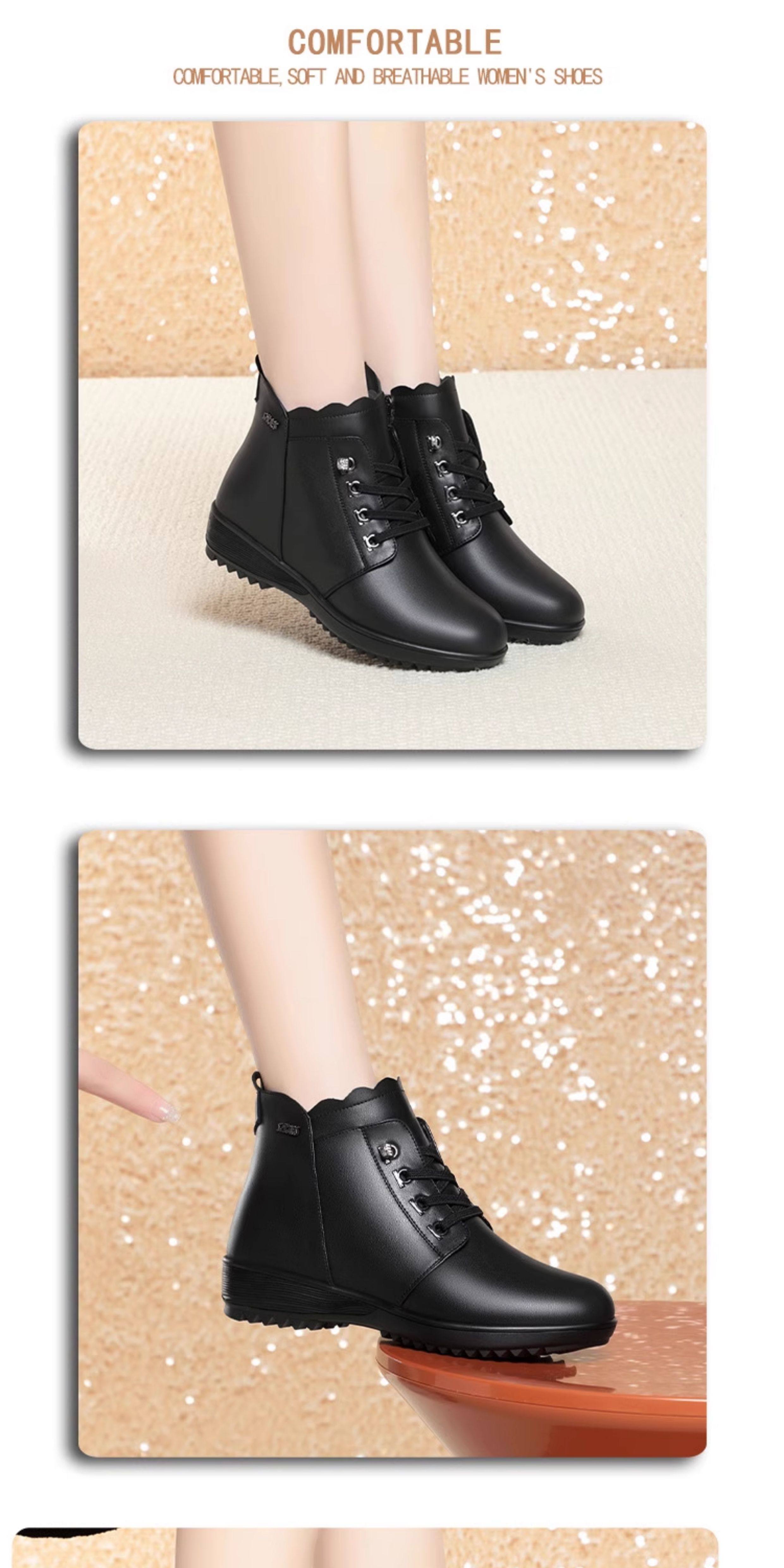 Soft Leather Women's Short Boots for Autumn and Winter, Fleece-Lined and Thickened with Wool, Comfortable Cotton Shoes for Middle-Aged and Elderly, Flat Soft-Soled Single Shoes, Mom Shoes
