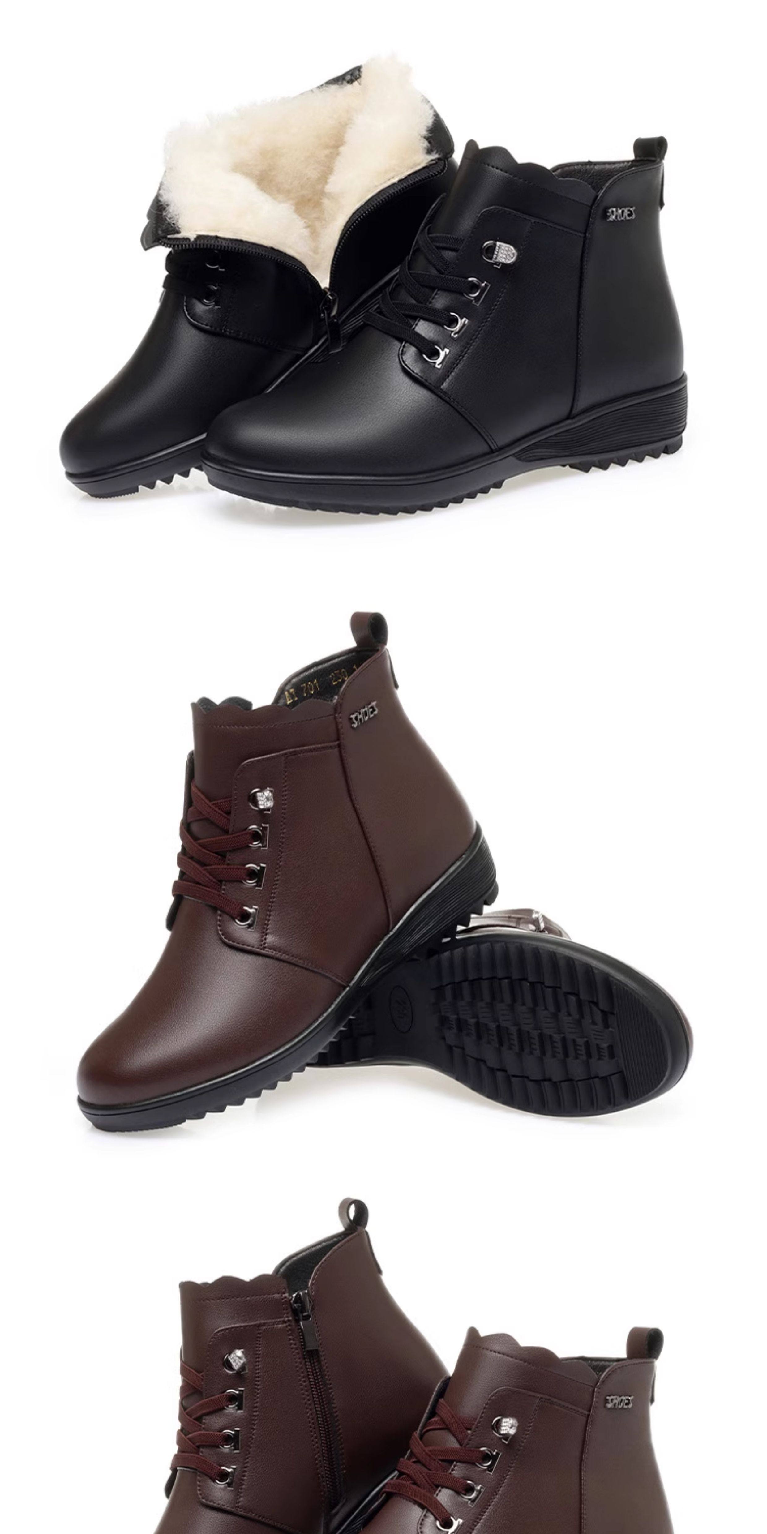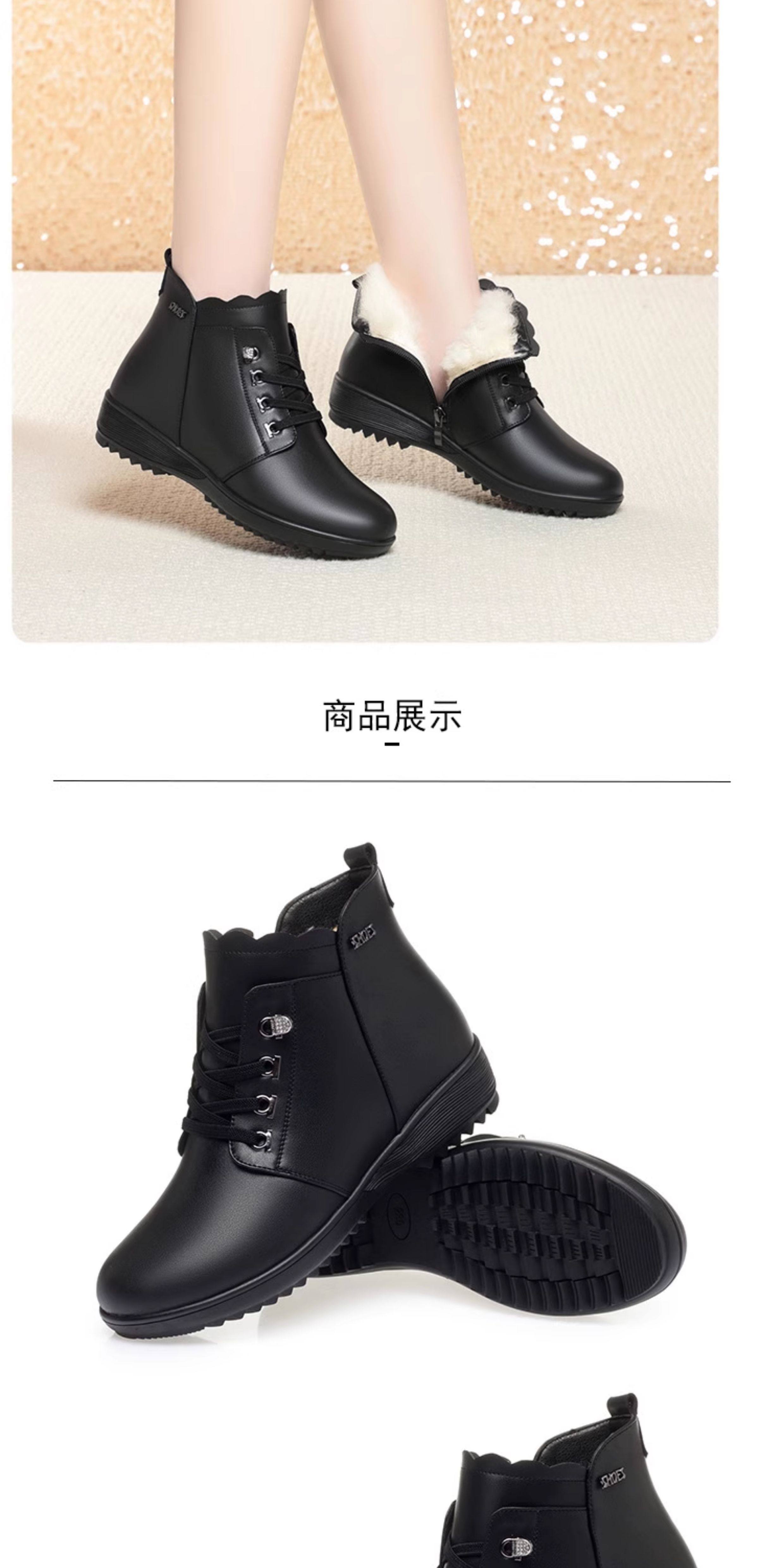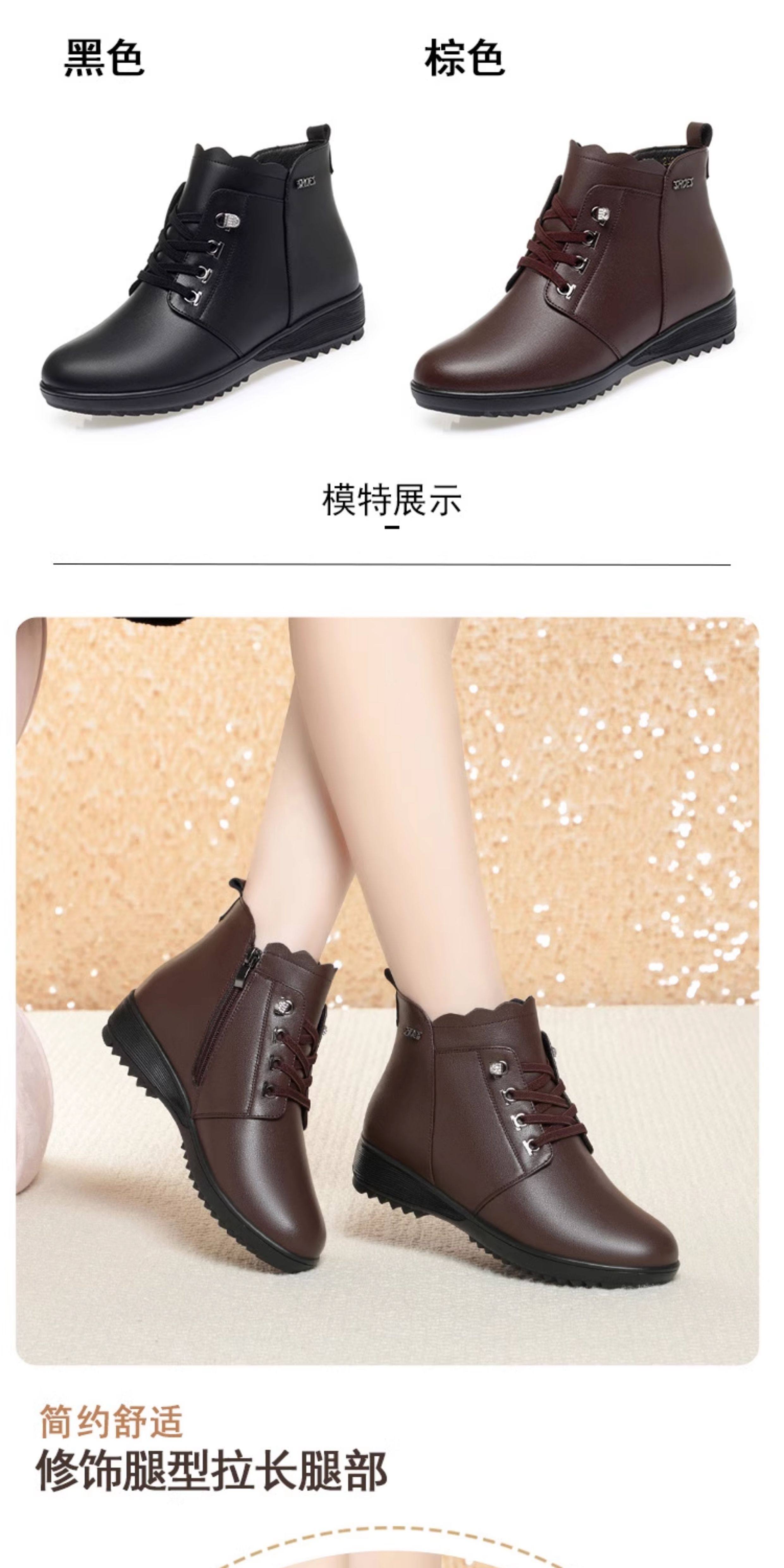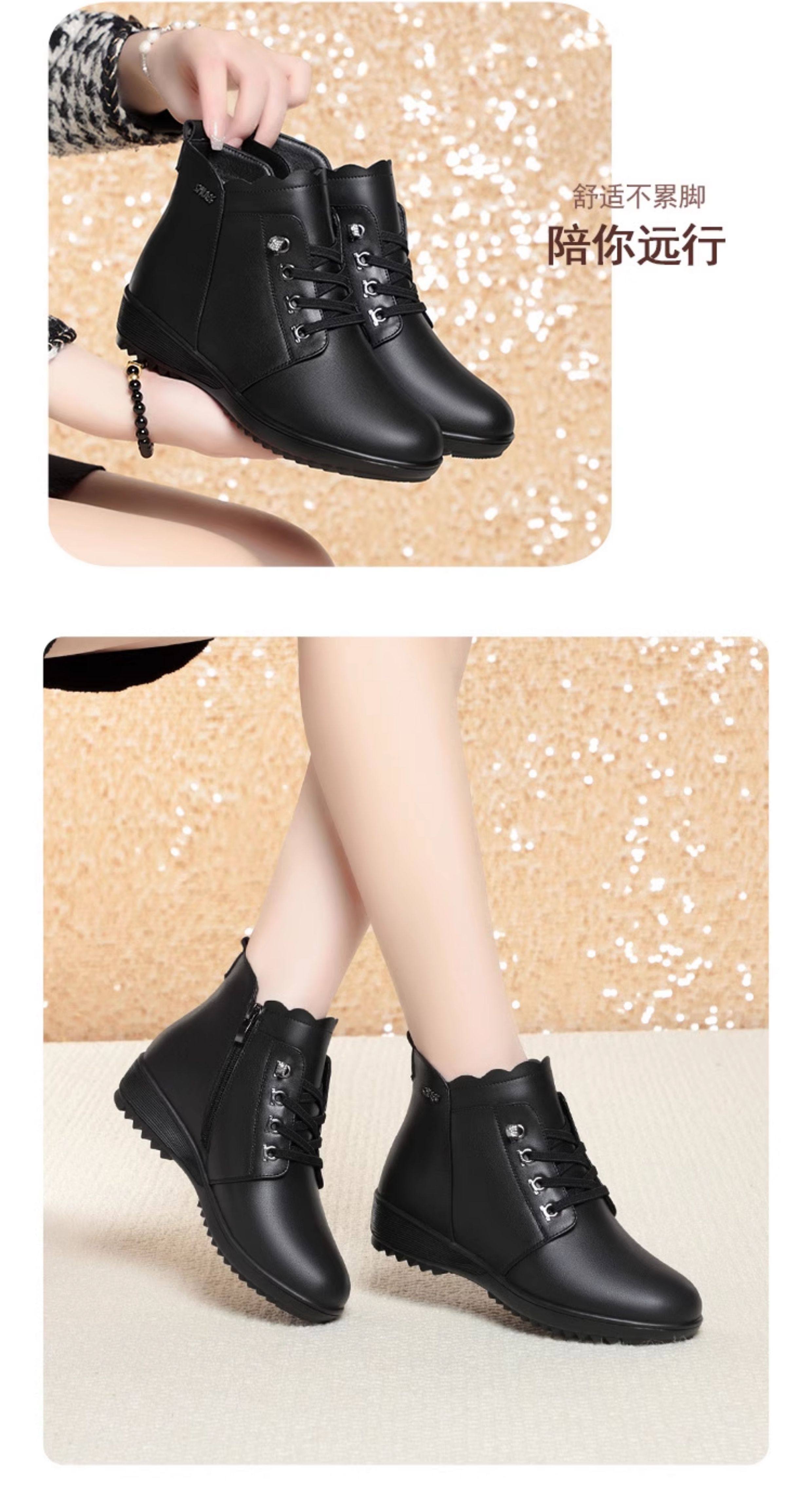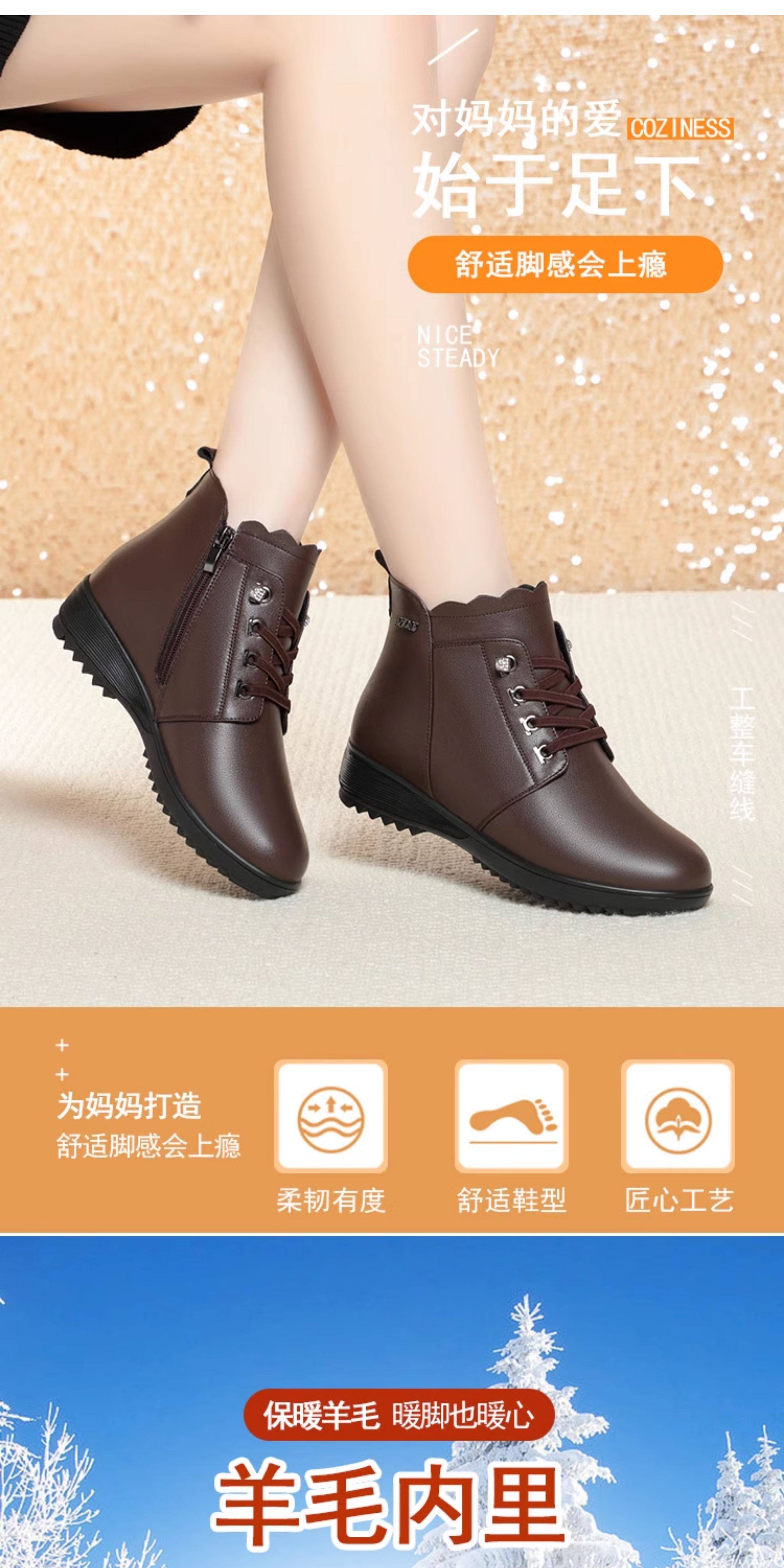 Soft Leather Women's Short Boots for Autumn and Winter, Fleece-Lined and Thickened with Wool, Comfortable Cotton Shoes for Middle-Aged and Elderly, Flat Soft-Soled Single Shoes, Mom Shoes