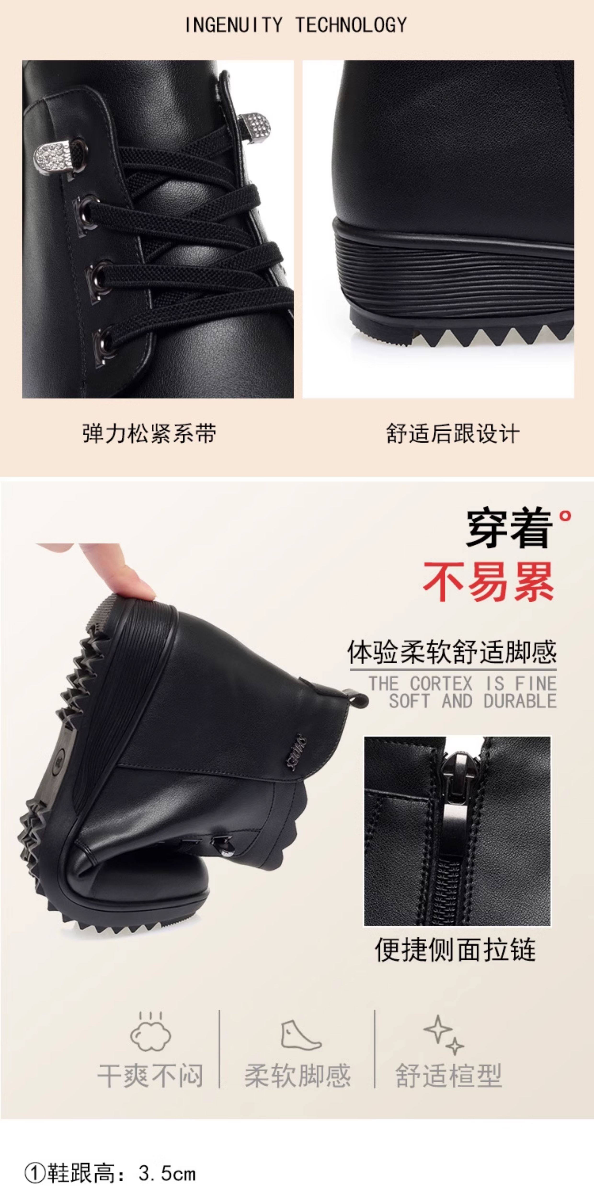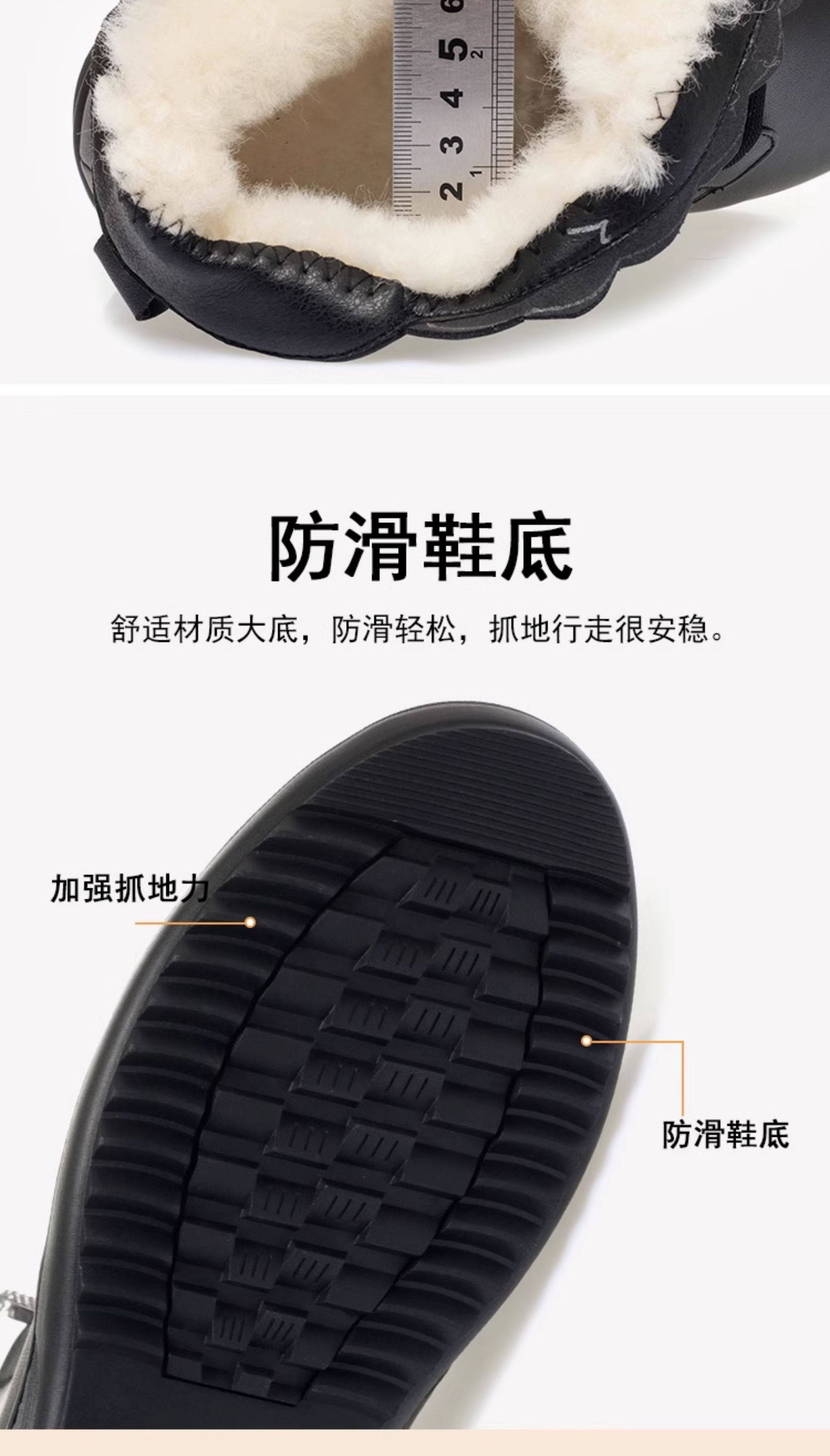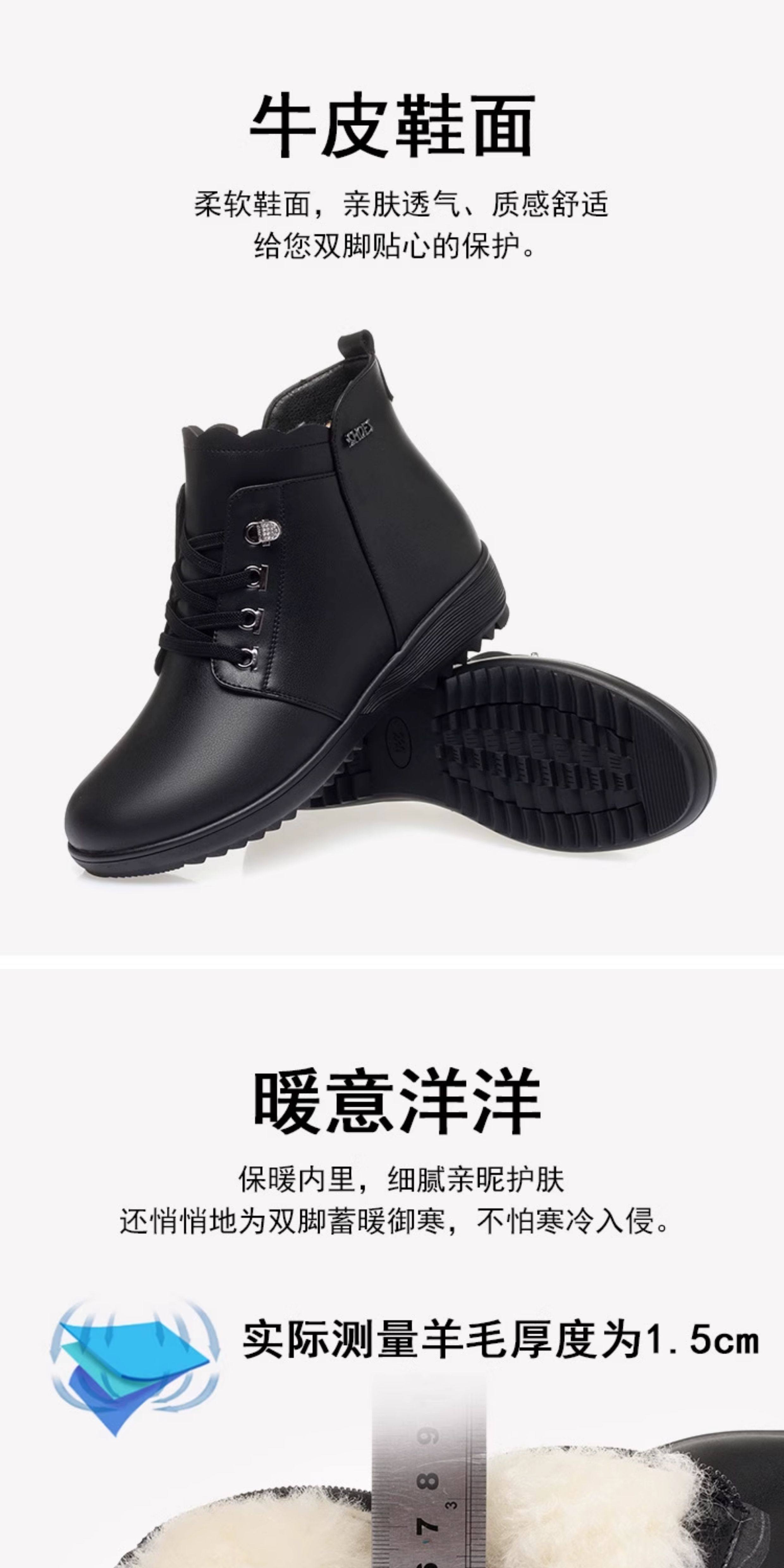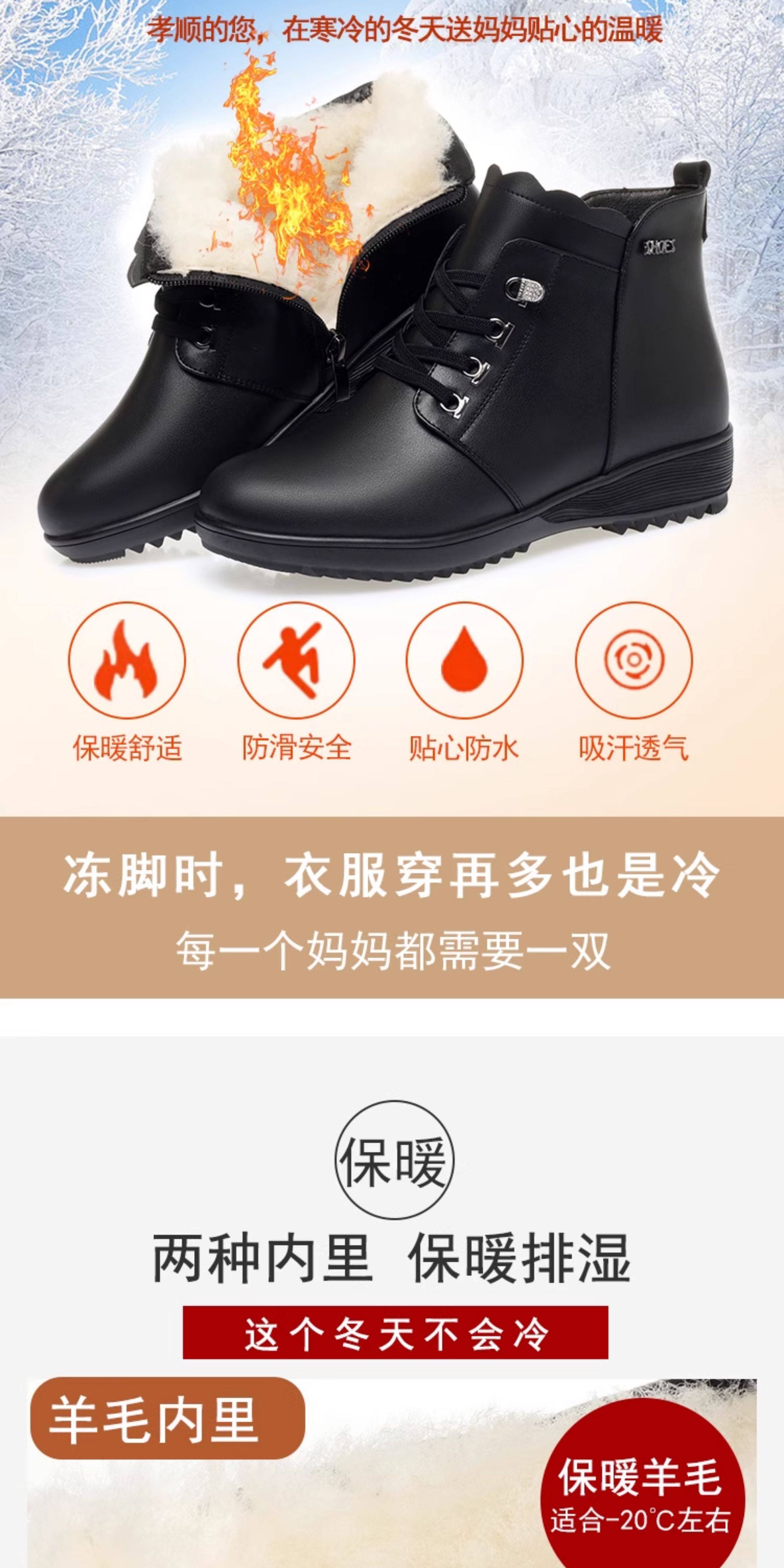 Soft Leather Women's Short Boots for Autumn and Winter, Fleece-Lined and Thickened with Wool, Comfortable Cotton Shoes for Middle-Aged and Elderly, Flat Soft-Soled Single Shoes, Mom Shoes