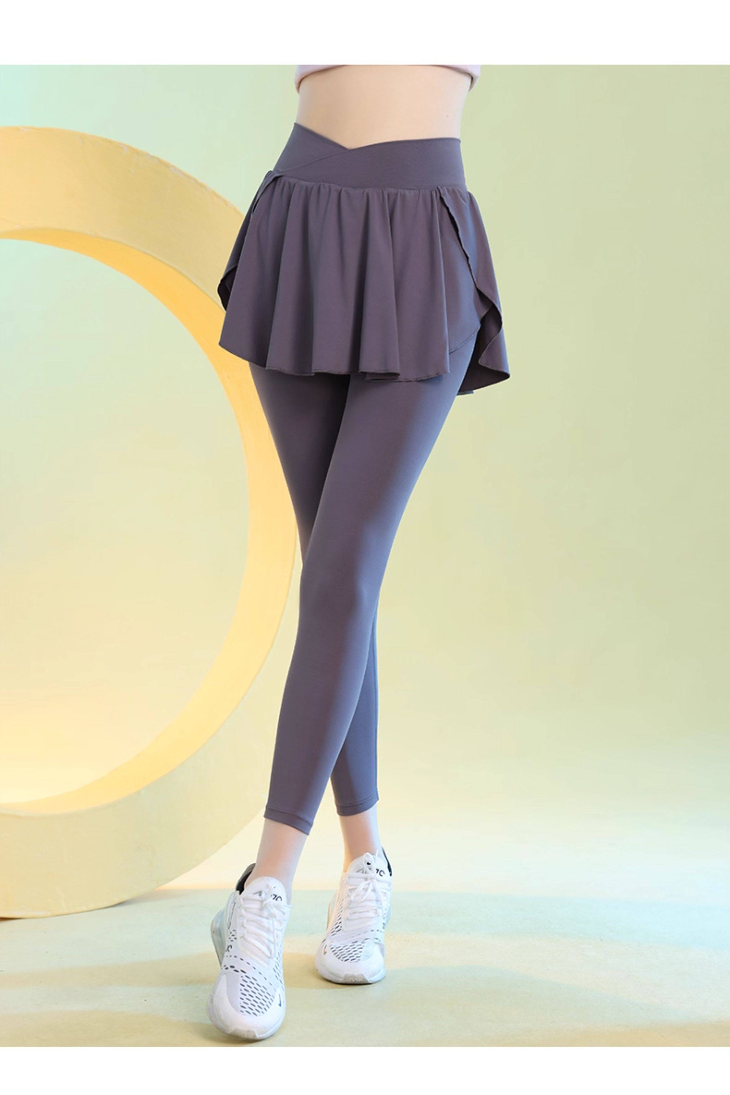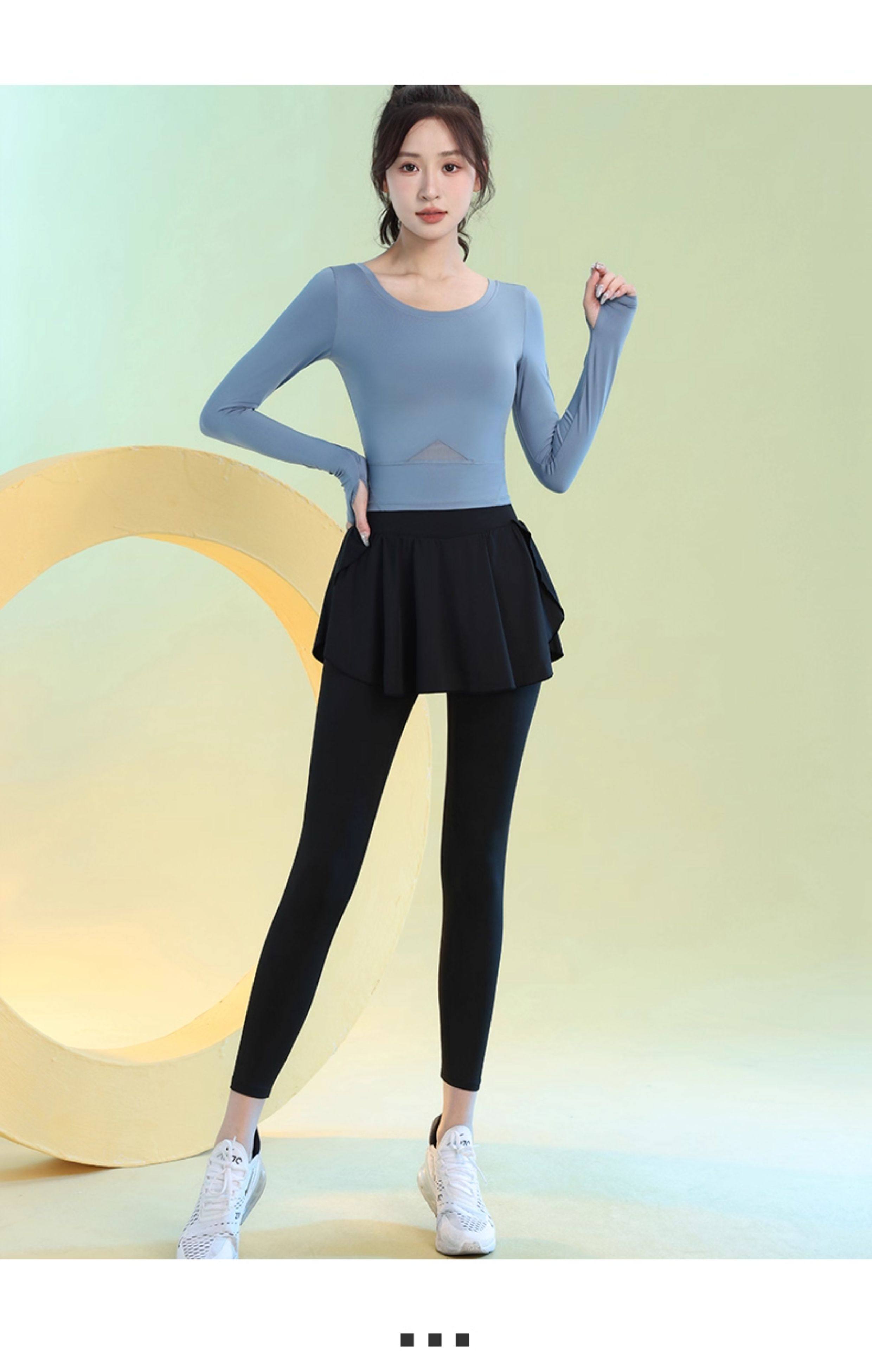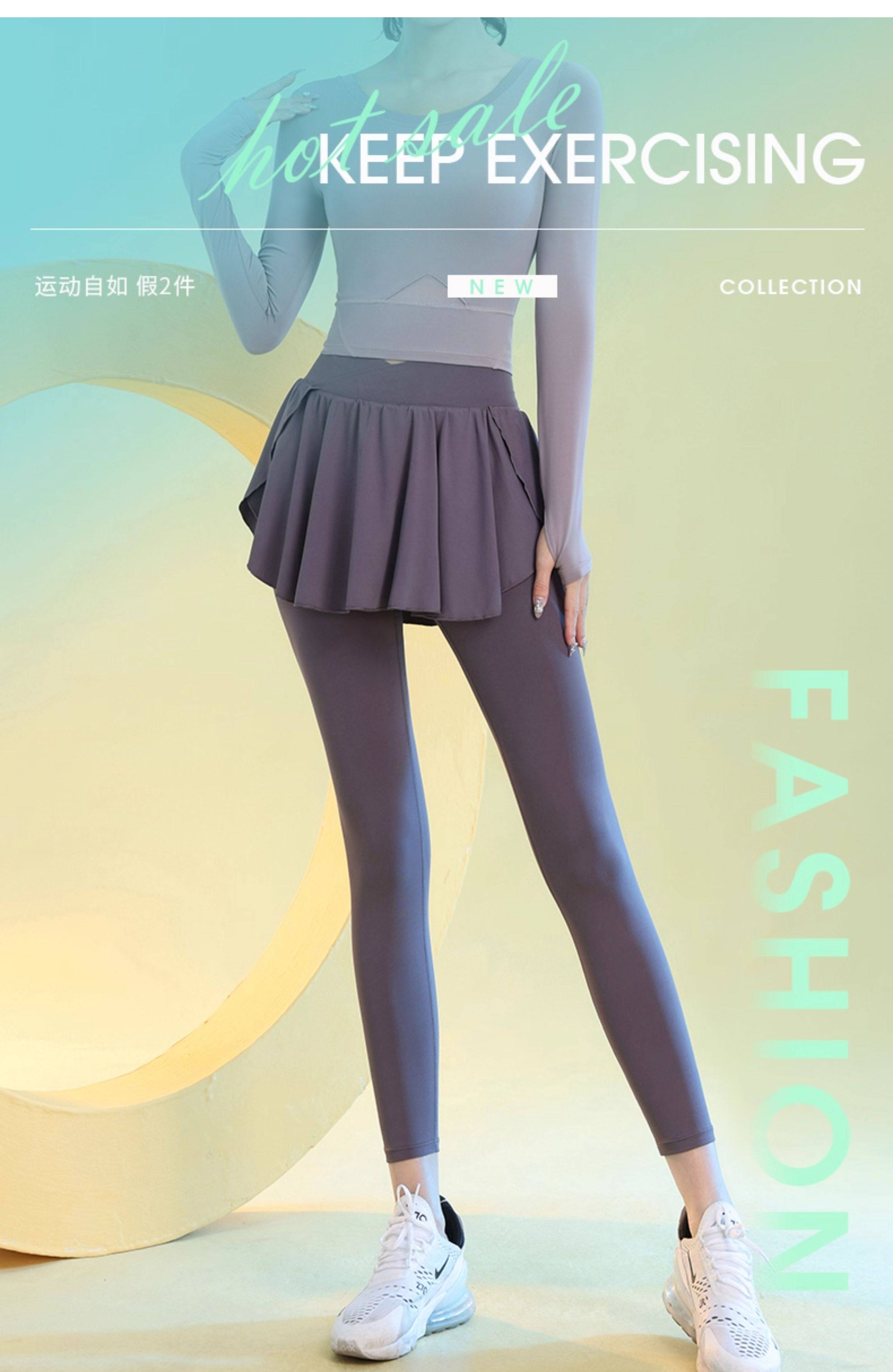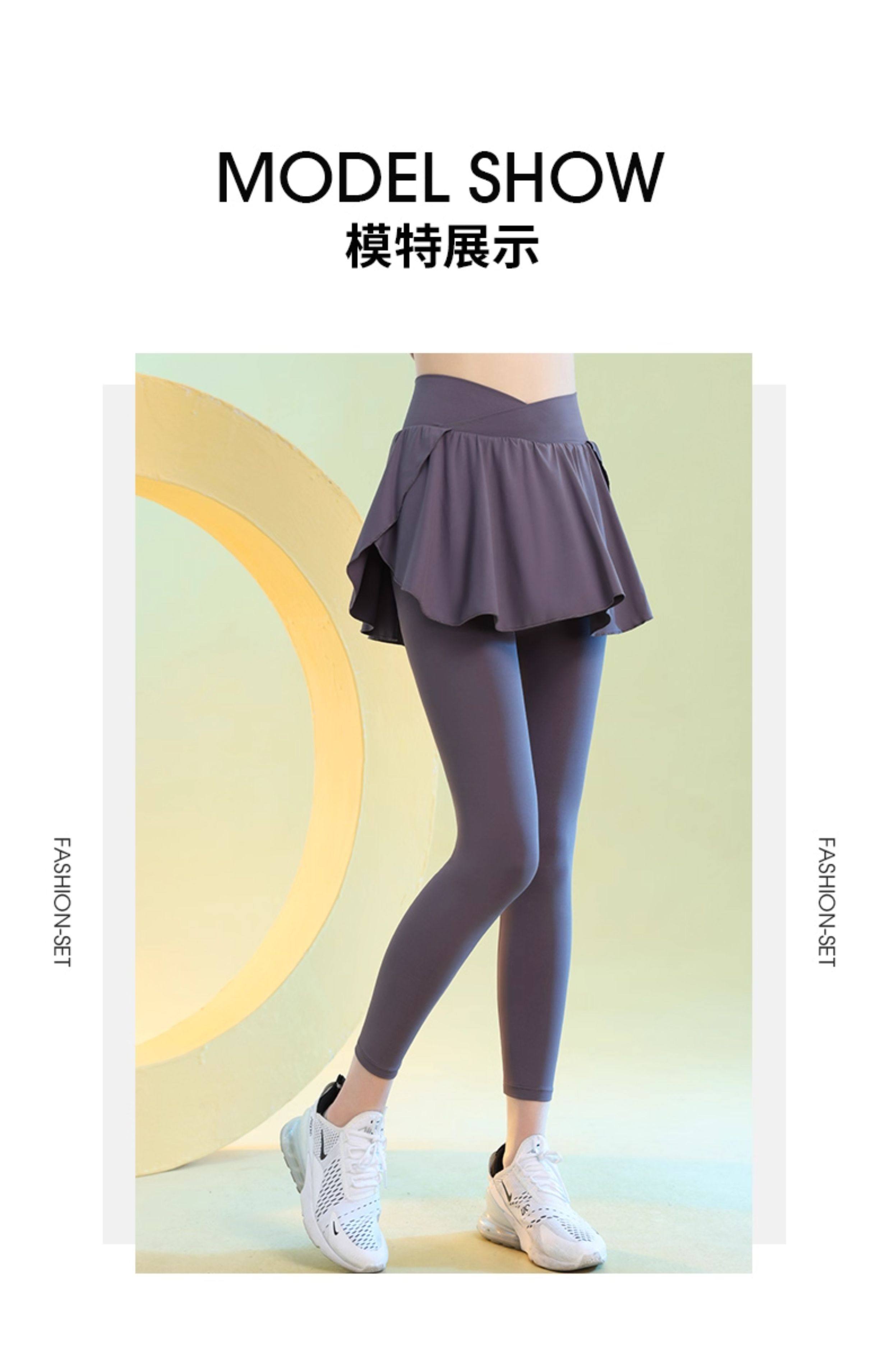 高腰假两件瑜伽裤女秋季新款专业运动紧身裤网红训练速干健身裙裤