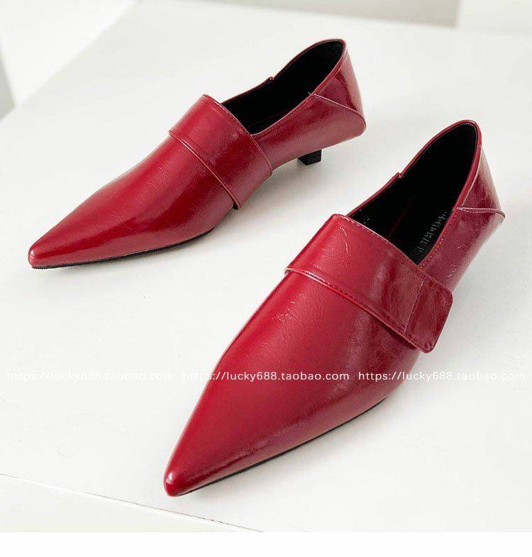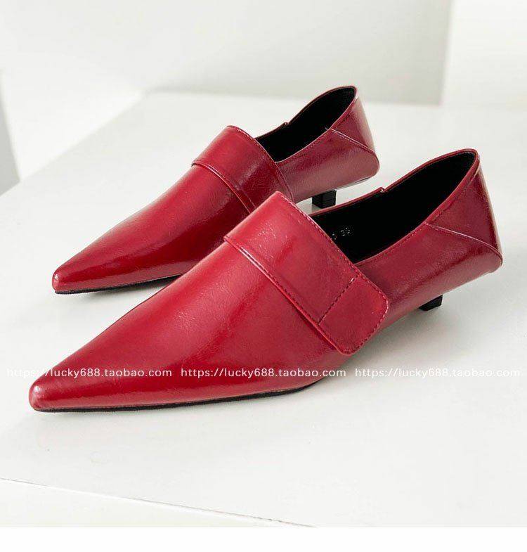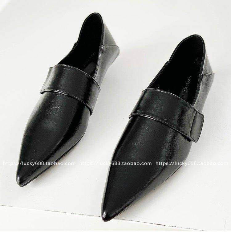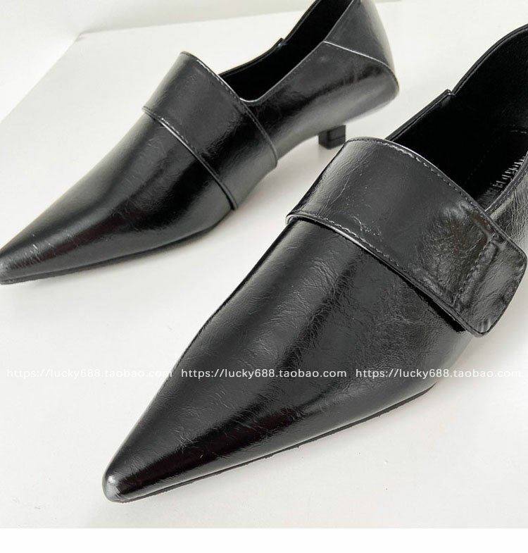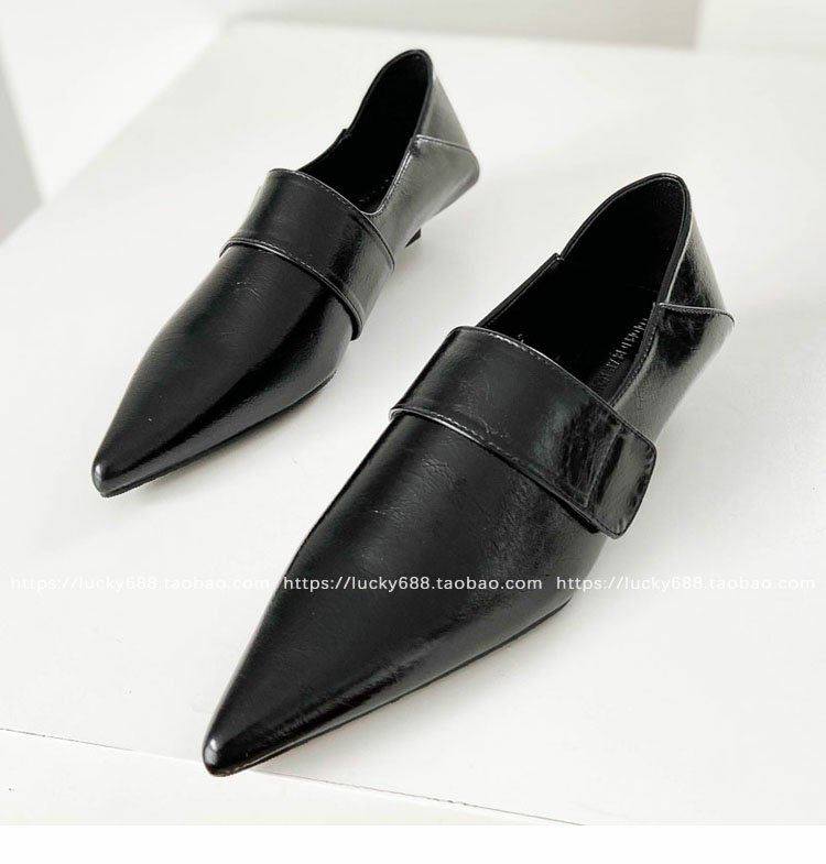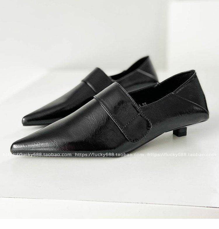 Trendy Brand 2025 Spring and Autumn New Women's Black Low-Cut Low-Heeled Stiletto Soft Leather Pointed Toe Slip-On Korean Style Granny Shoes