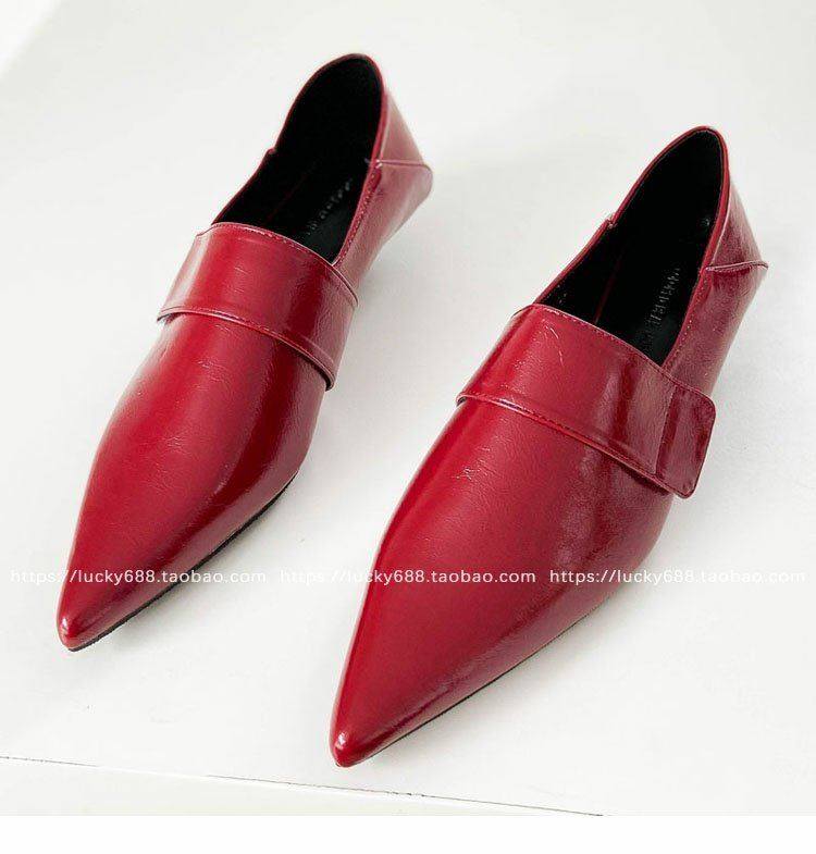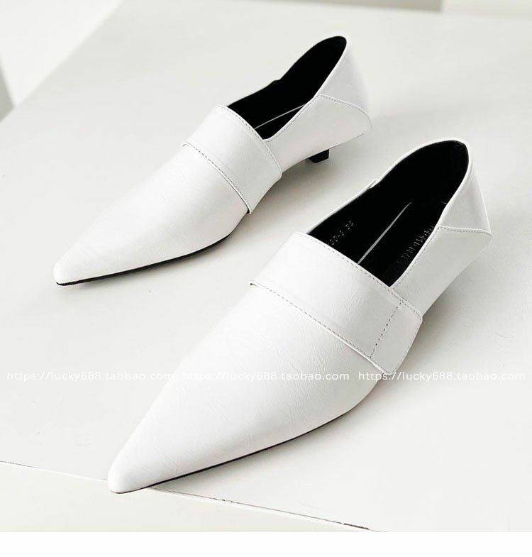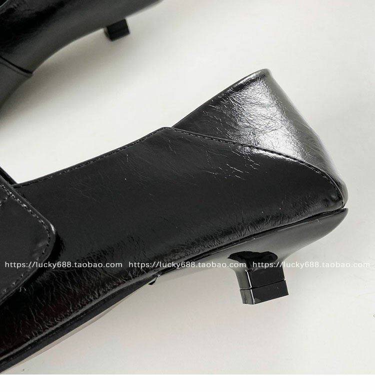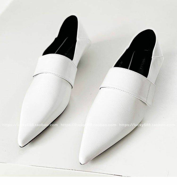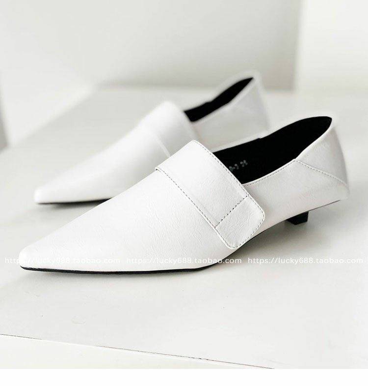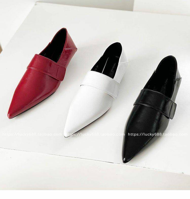 Trendy Brand 2025 Spring and Autumn New Women's Black Low-Cut Low-Heeled Stiletto Soft Leather Pointed Toe Slip-On Korean Style Granny Shoes