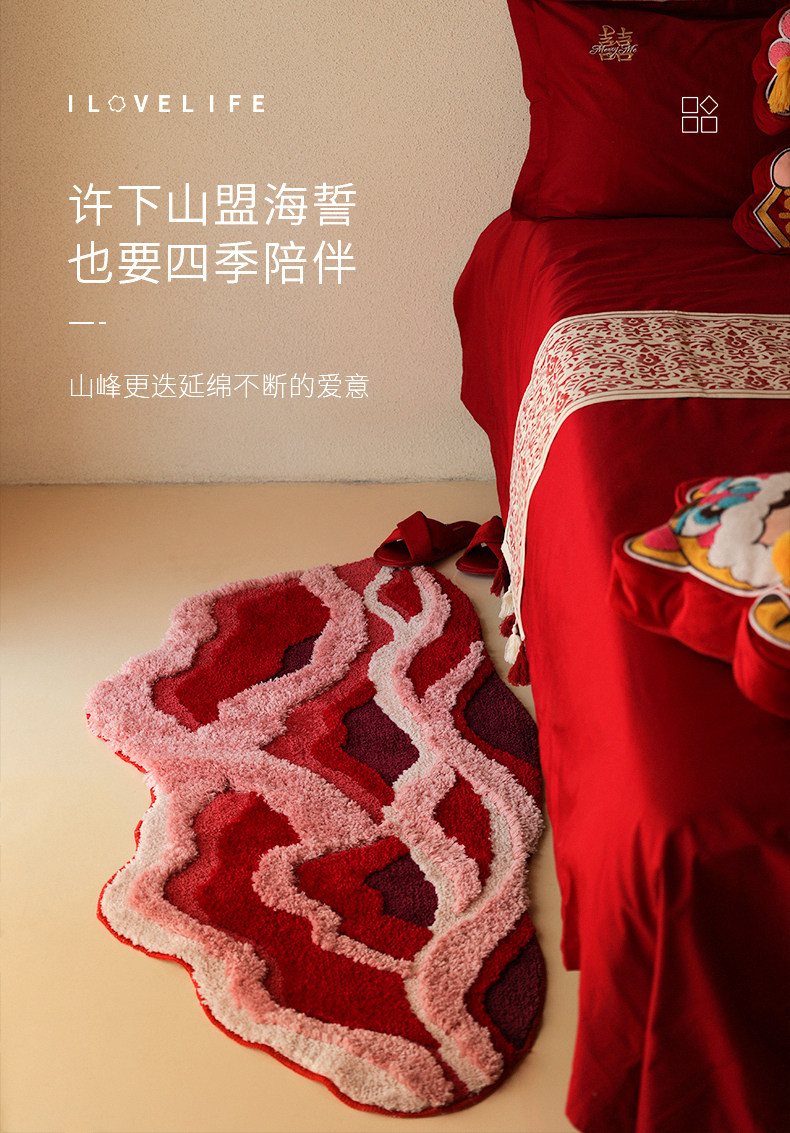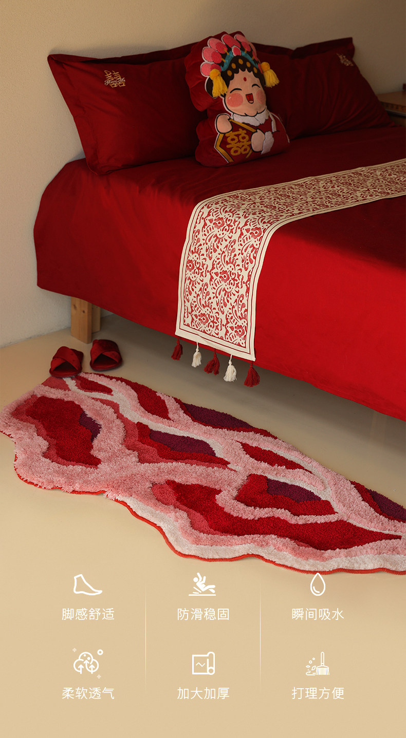 New Year Wedding Floor Mat Bedroom Bedside Bed End Festive Red Carpet Wedding Celebration New House Wedding Room Decoration Spring Festival Decoration
