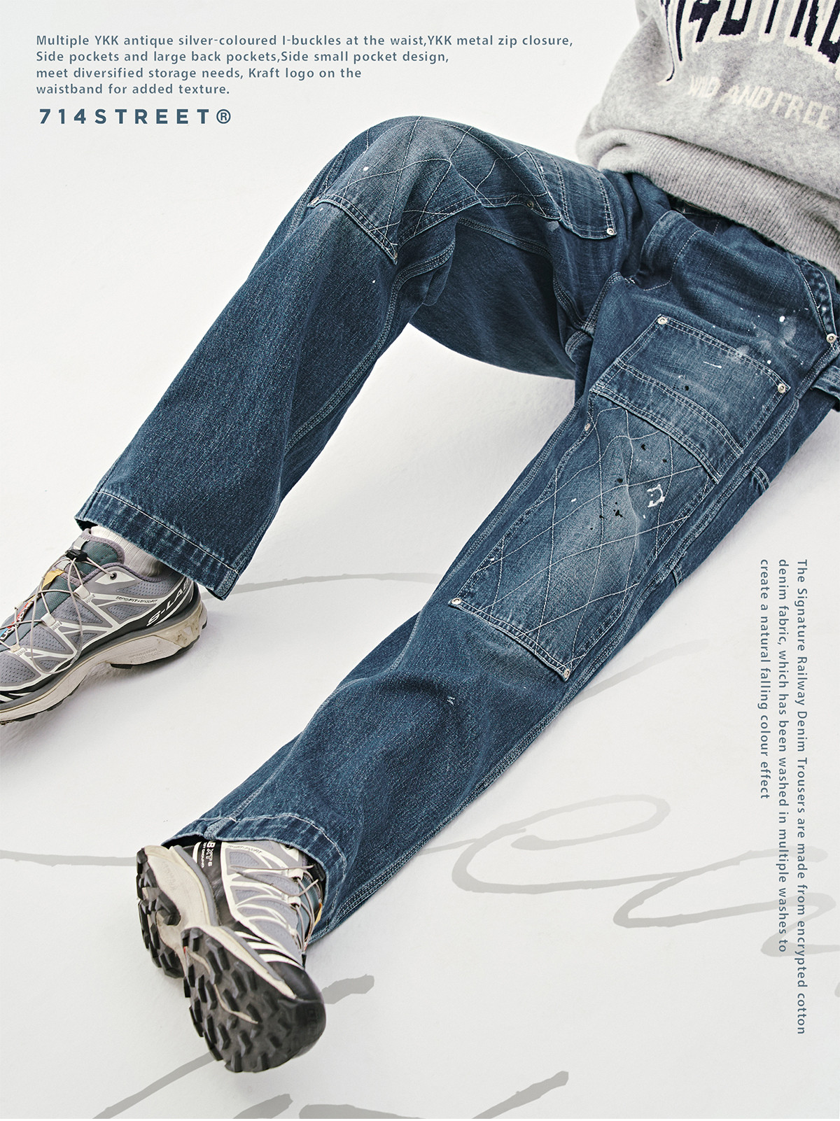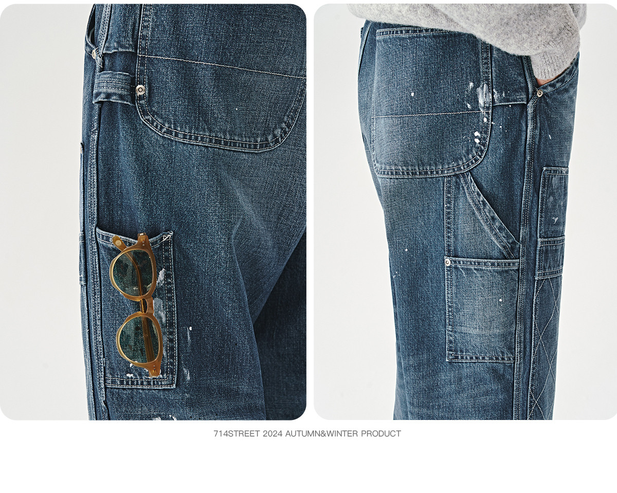 714 уличные флагманские американские ретро потертые джинсы для мужчин 24 осенние новые свободные повседневные брюки