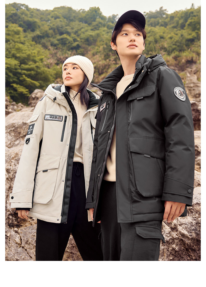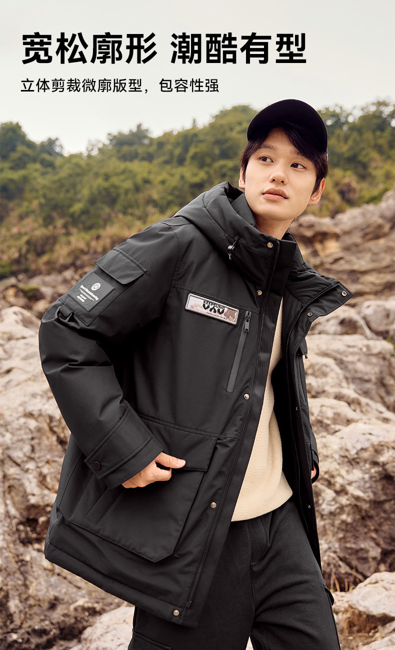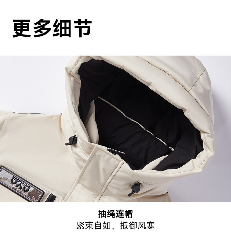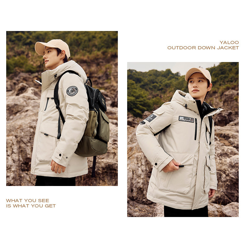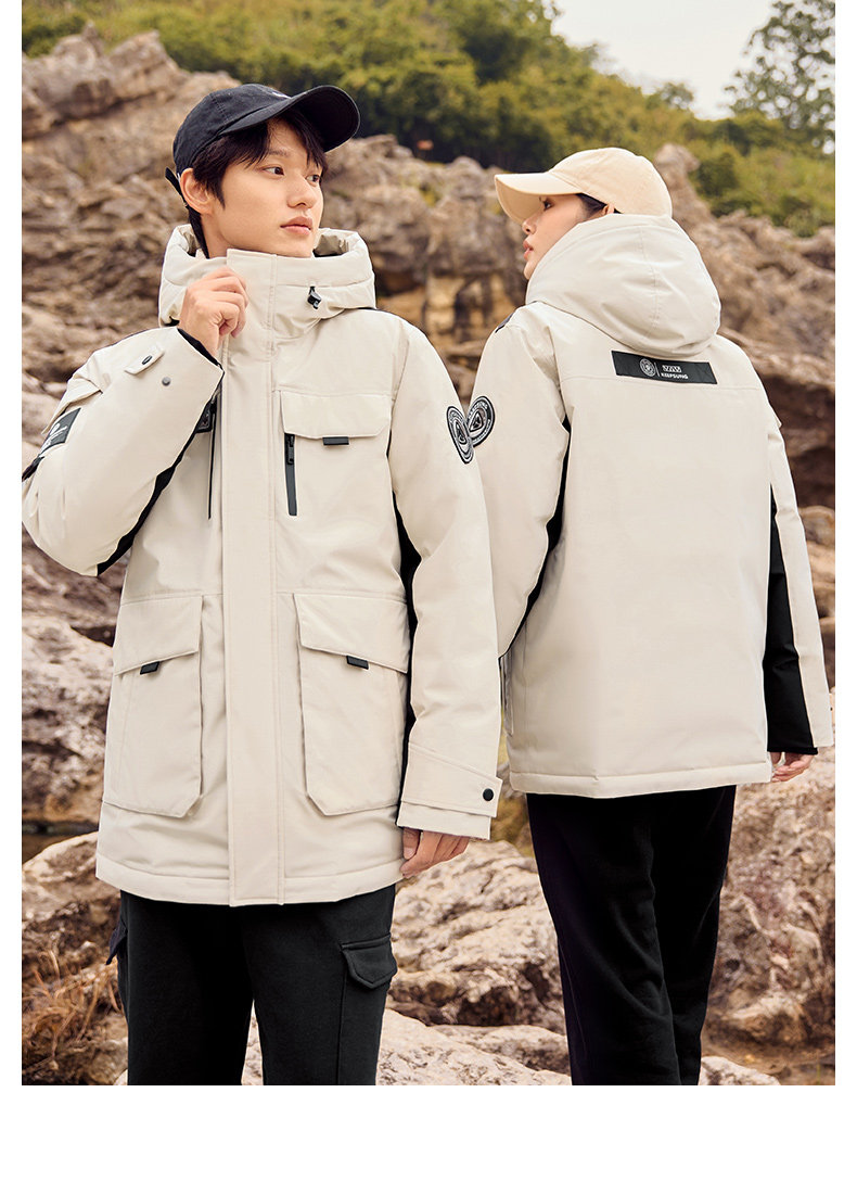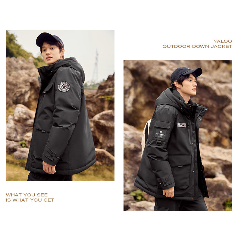 雅鹿情侣工装羽绒服加厚2025年冬季新款户外防风连帽外套保暖男装