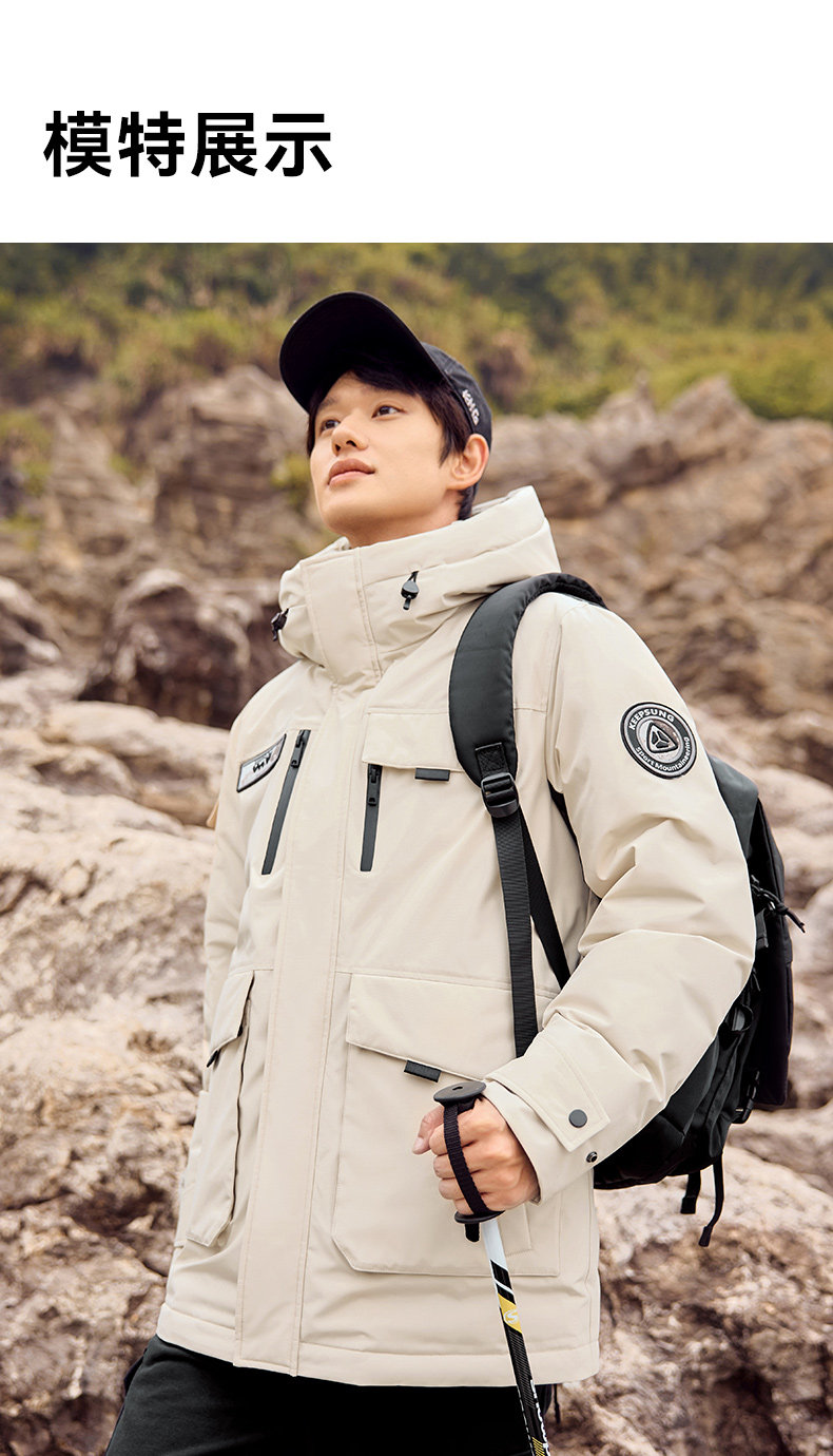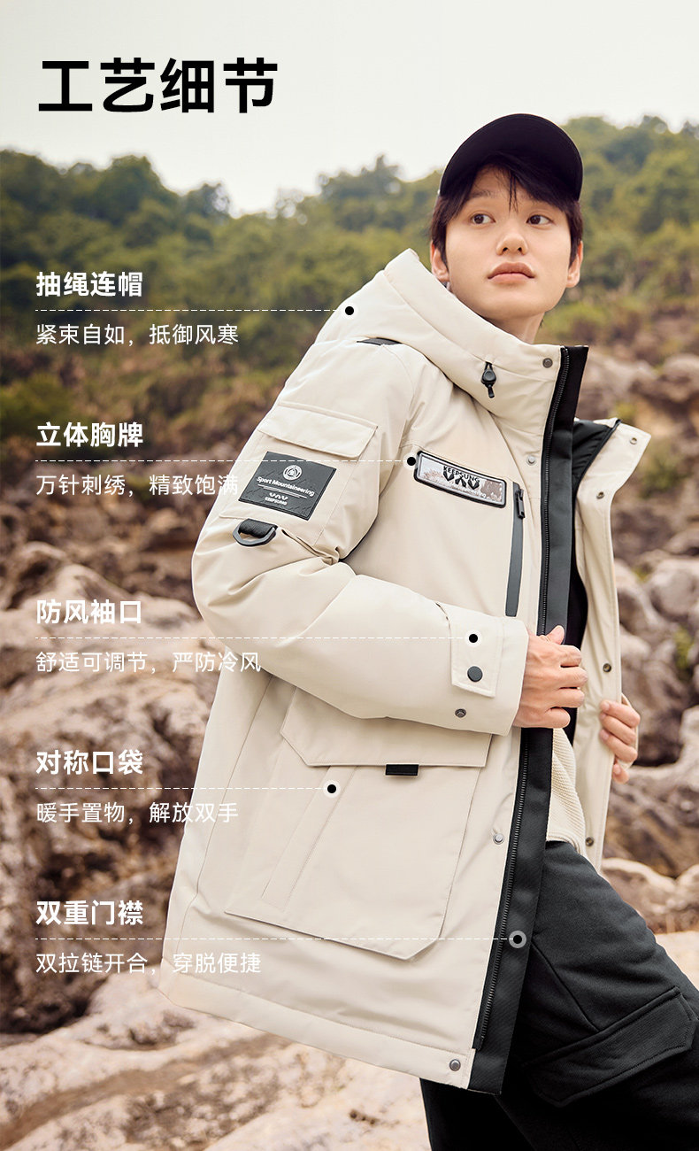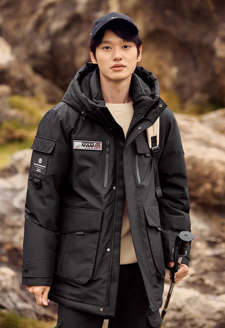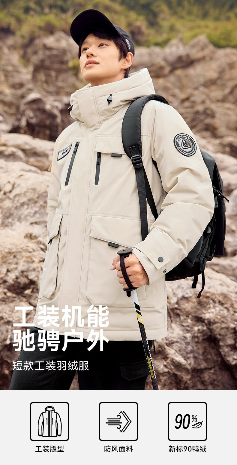 雅鹿情侣工装羽绒服加厚2025年冬季新款户外防风连帽外套保暖男装