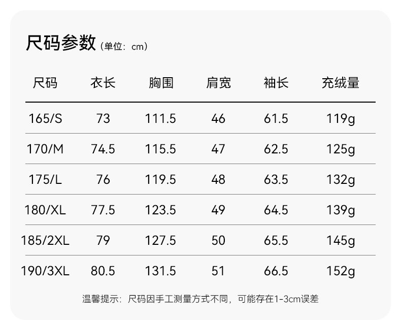 充绒量 119-152g