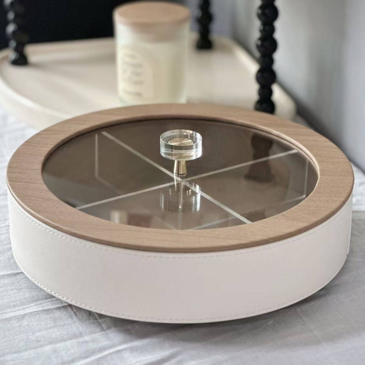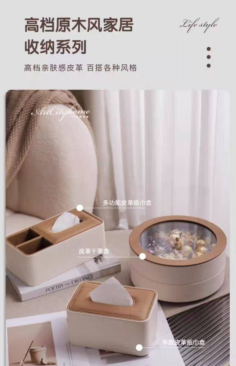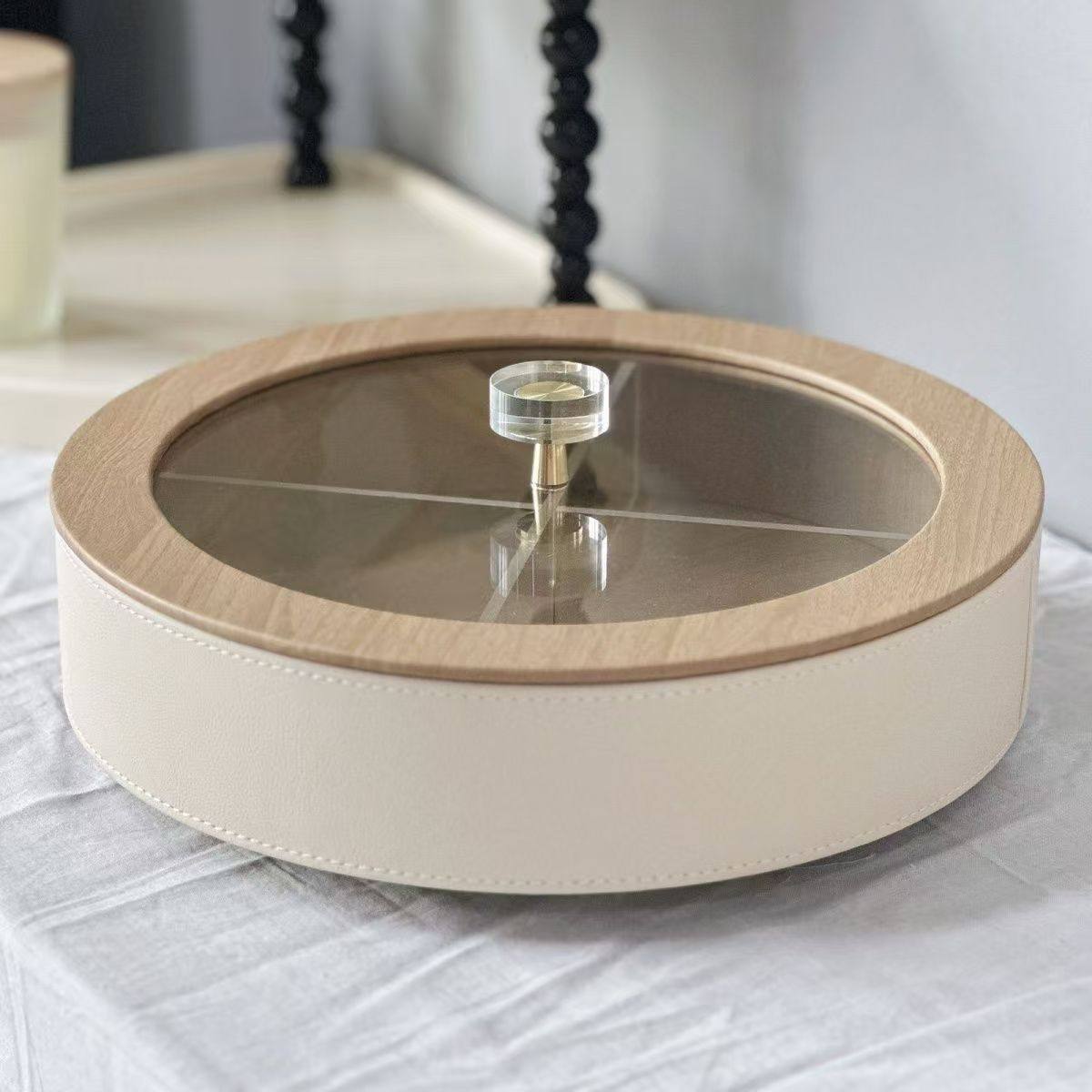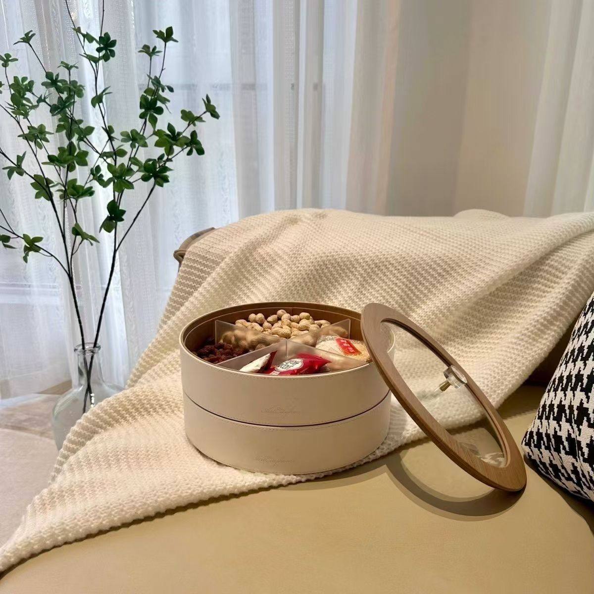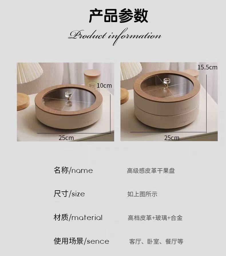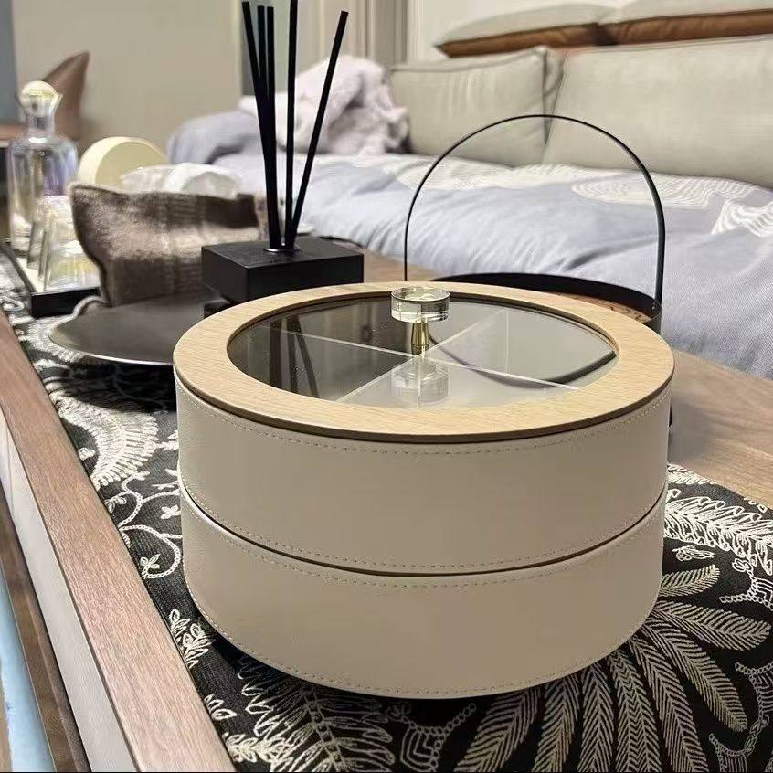High-End Fruit Plate, Light Luxury Style, Living Room Coffee Table, High-Grade Leather Nut, Candy, Snack Storage Box, Household Dried Fruit Gift Box