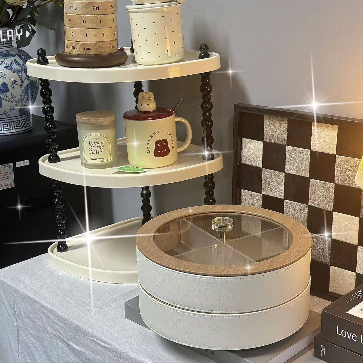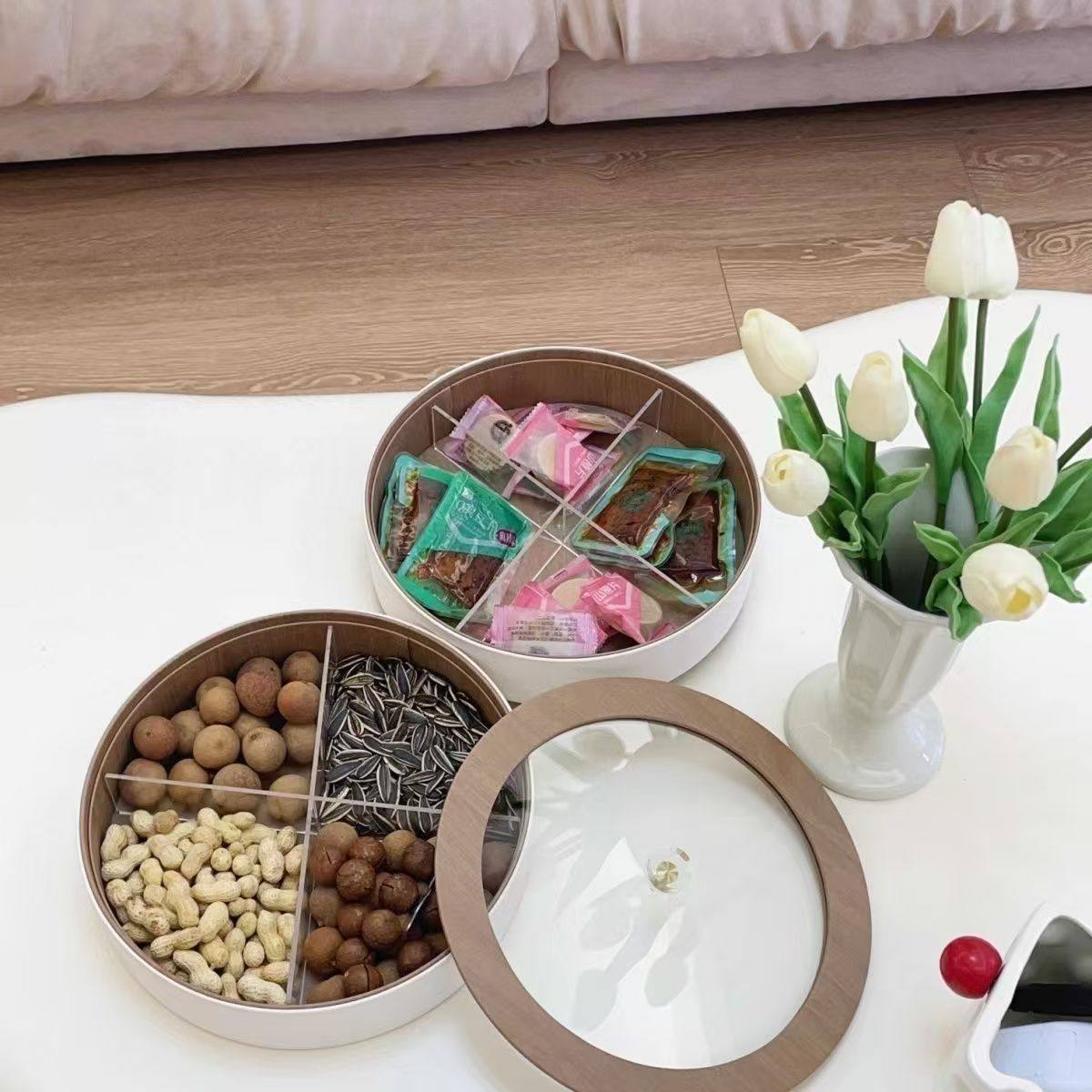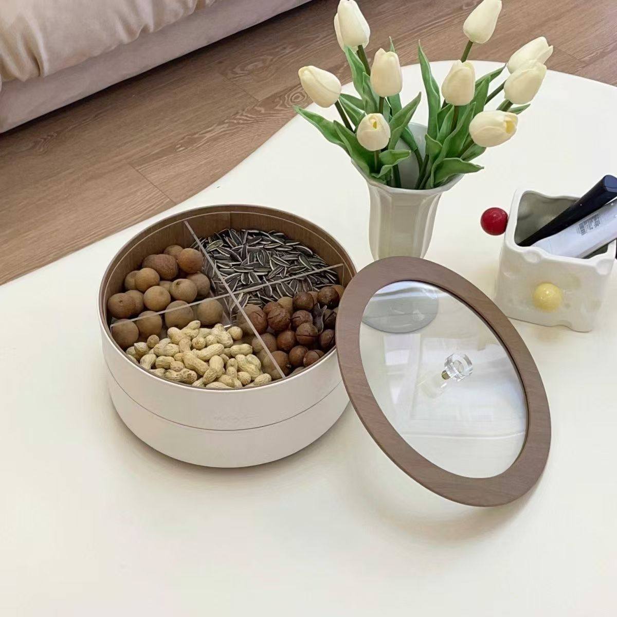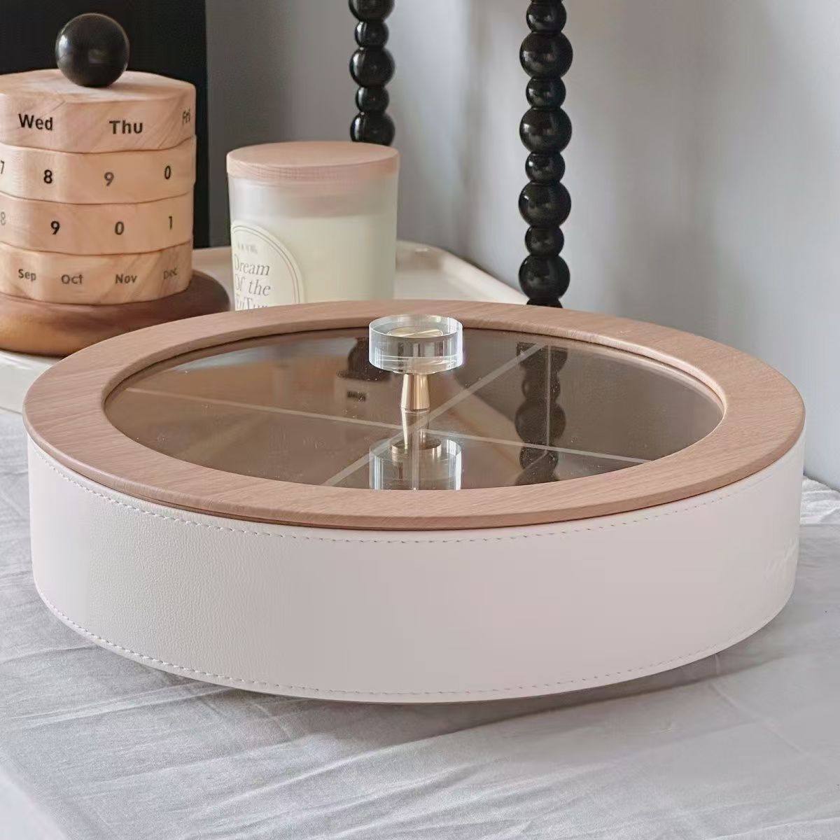 High-End Fruit Plate, Light Luxury Style, Living Room Coffee Table, High-Grade Leather Nut, Candy, Snack Storage Box, Household Dried Fruit Gift Box