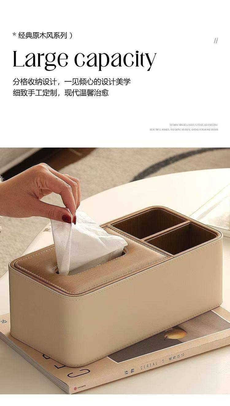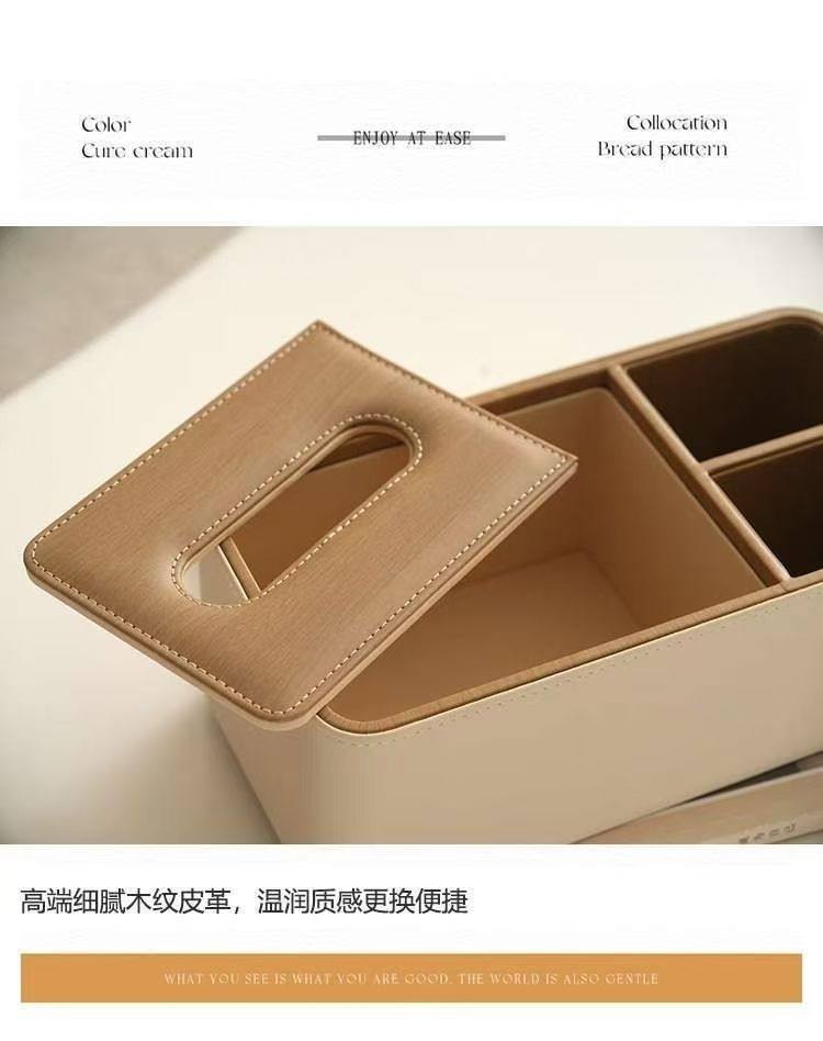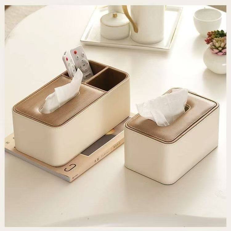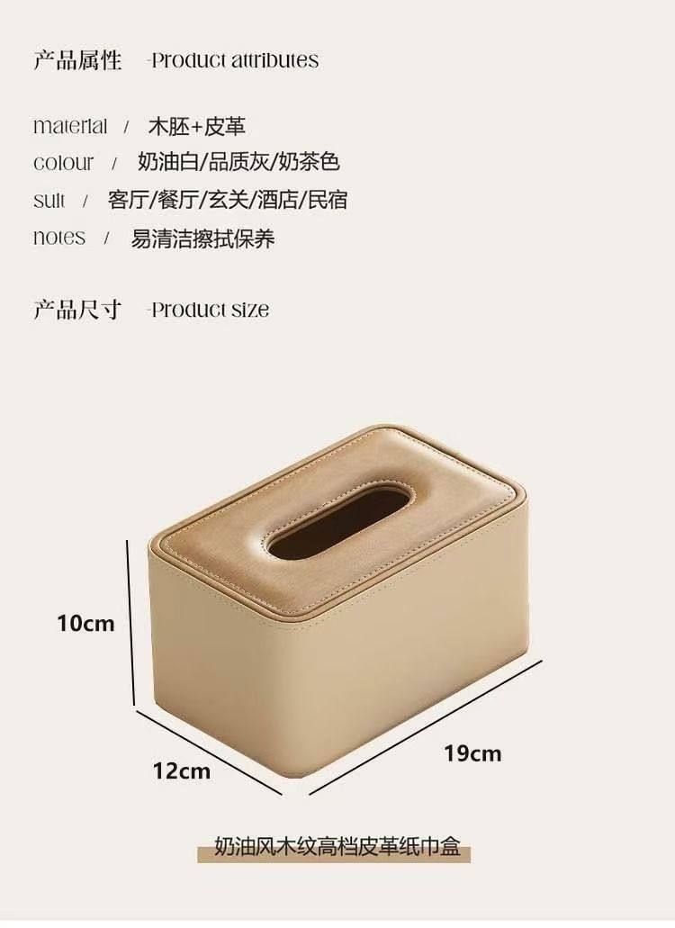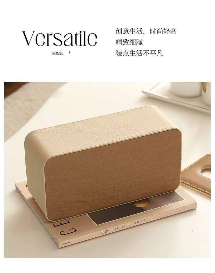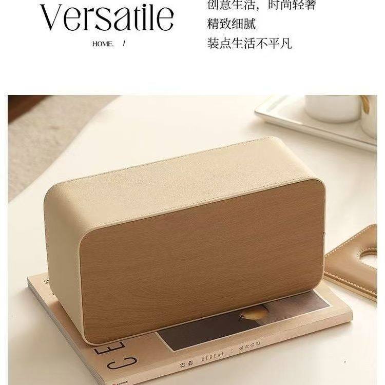 Caja de pañuelos color crema para sala de estar y dormitorio, grano de madera ligero de lujo, caja de almacenamiento simple de alta gama, caja de papel de cuero nórdico