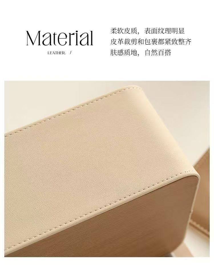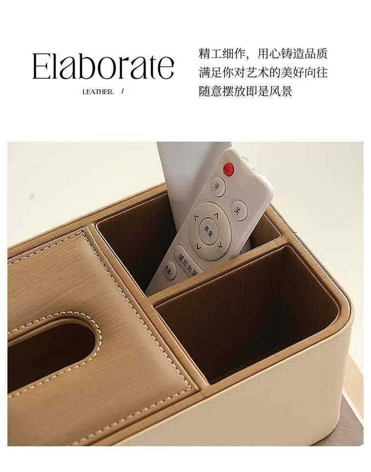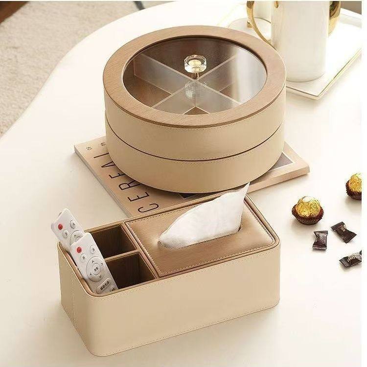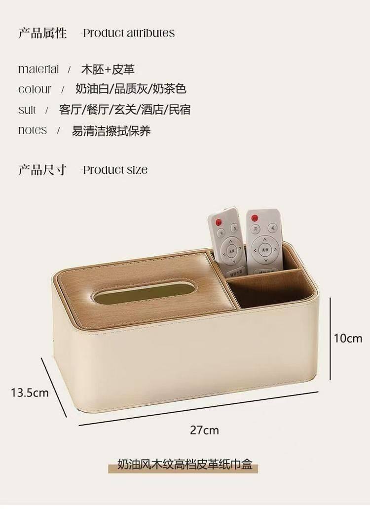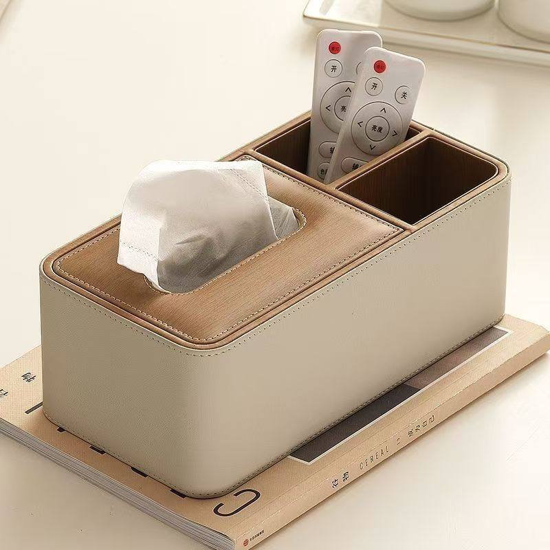Caja de pañuelos color crema para sala de estar y dormitorio, grano de madera ligero de lujo, caja de almacenamiento simple de alta gama, caja de papel de cuero nórdico
