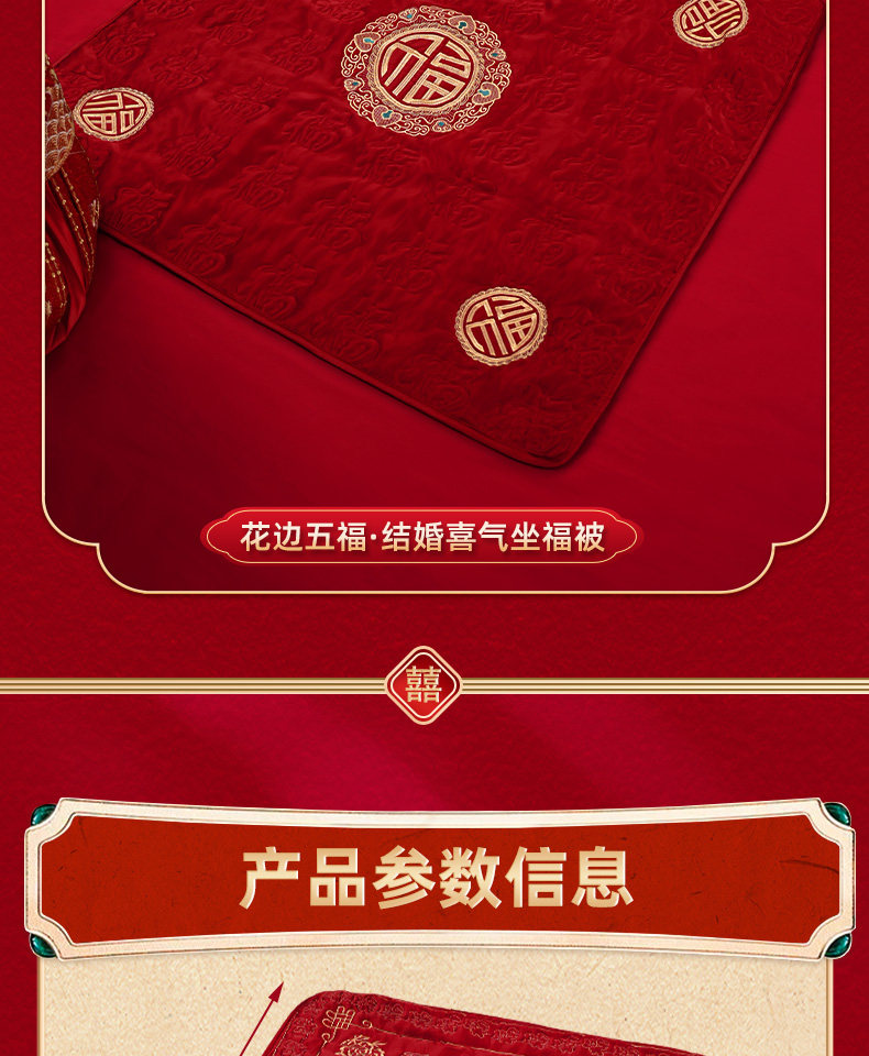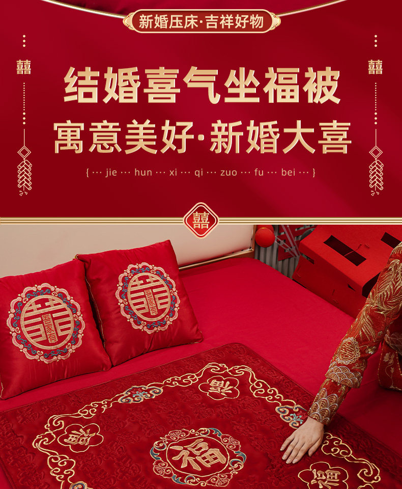 Color Classification 囍 give birth to a son early, get married happily and sit on the quilt,Wishing You Happiness and Good Fortune in Your Marriage, and May Your Wedding Be Filled with Joy and Blessings,Happy Wedding·Happy Wedding Sitting Quilt,Bai Fu Style - Auspicious Wedding Celebration Quilt,Blessings Abound in the Door·Happy Wedding and Blessings,Five Blessings Come to Your Door·Happy Wedding and Blessings,Blessing: Have a Son Early and Have a Happy Wedding,My Family Is Blessed. Happy Wedding and Happy Wedding,Full of Blessings: Wedding Celebration Comforter,Cloud Hook Group Blessing·Wedding Festive Sitting Blessing Quilt,Ruyi Tuanfu·Wedding Festive Sitting Blessing Quilt,Blooming Prosperity: Wedding Celebration Auspicious Quilt,Forever United: Wedding Celebration Comforter