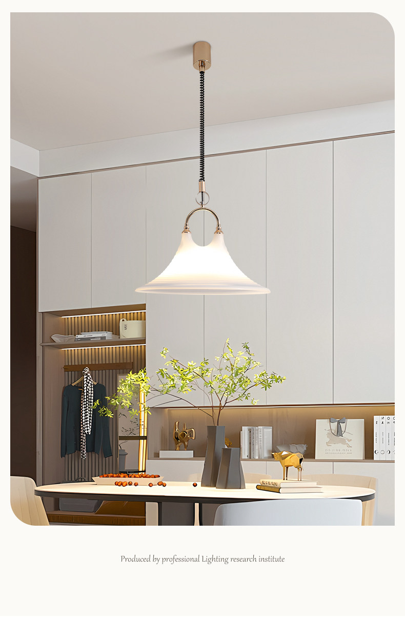 Обеденный стол из кремового оргстекла в стиле космической эры и регулируемый подвесной светильник для столовой от Gui Gen Lighting