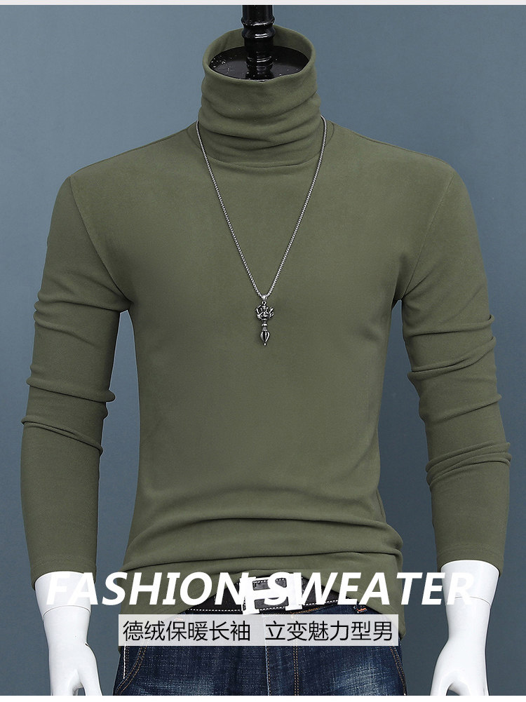 Deutscher Samt-Rollkragenpullover für Herren, doppelseitiger Samt, schmale Passform, verdicktes, warmes Langarm-T-Shirt, einfarbiges Innenoberteil für Jugendliche