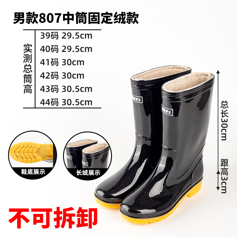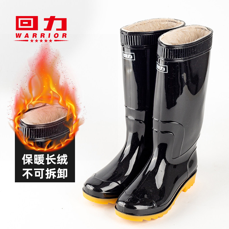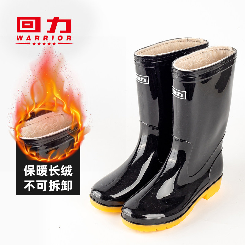 回力不可拆长绒男士雨鞋中筒加绒保暖防滑水鞋冬户外防水牛筋雨靴
