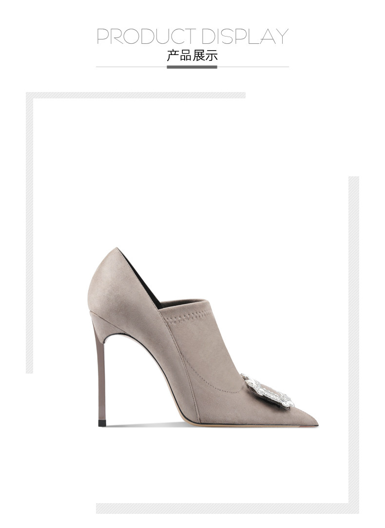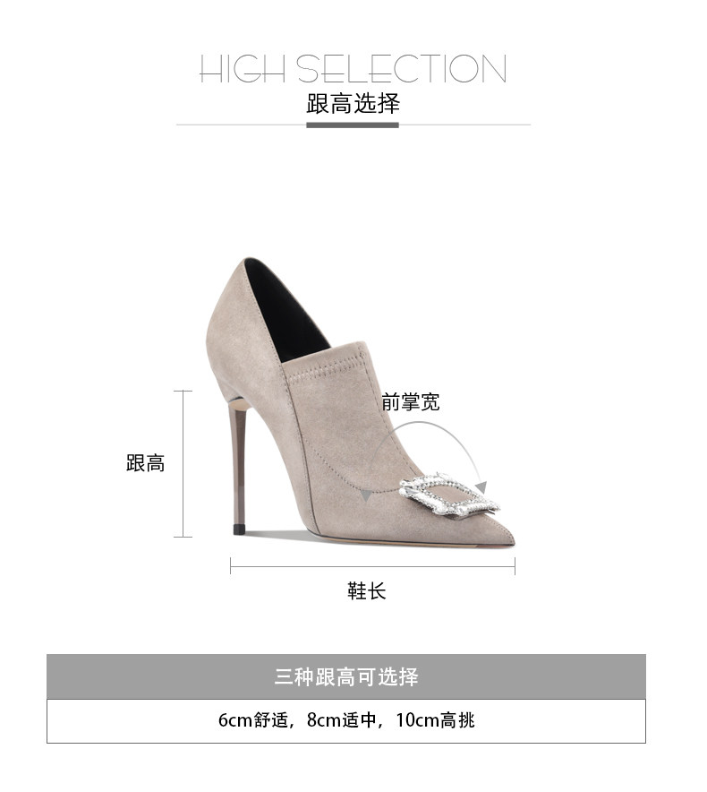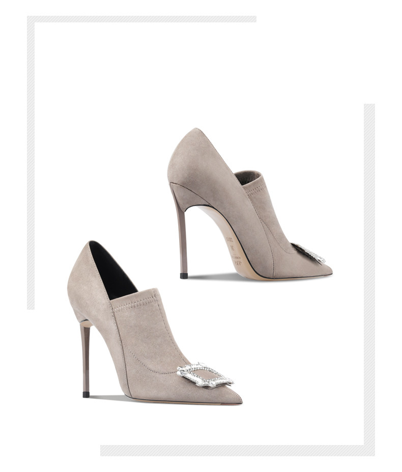 Quadratische Schnalle, spitzer Zehenbereich, hoher Absatz, kurze Stiefel für Damen, 2025 neue vielseitige Strass-Wildleder-Stiletto-Modestiefel, Stiefeletten mit Schnalle