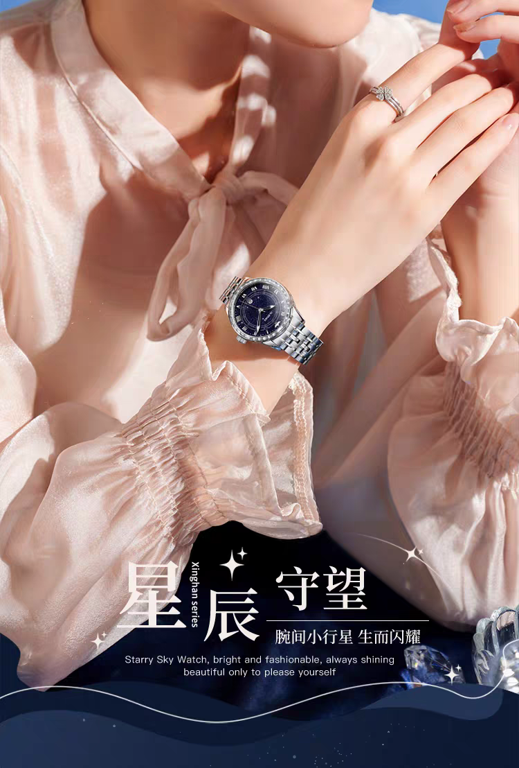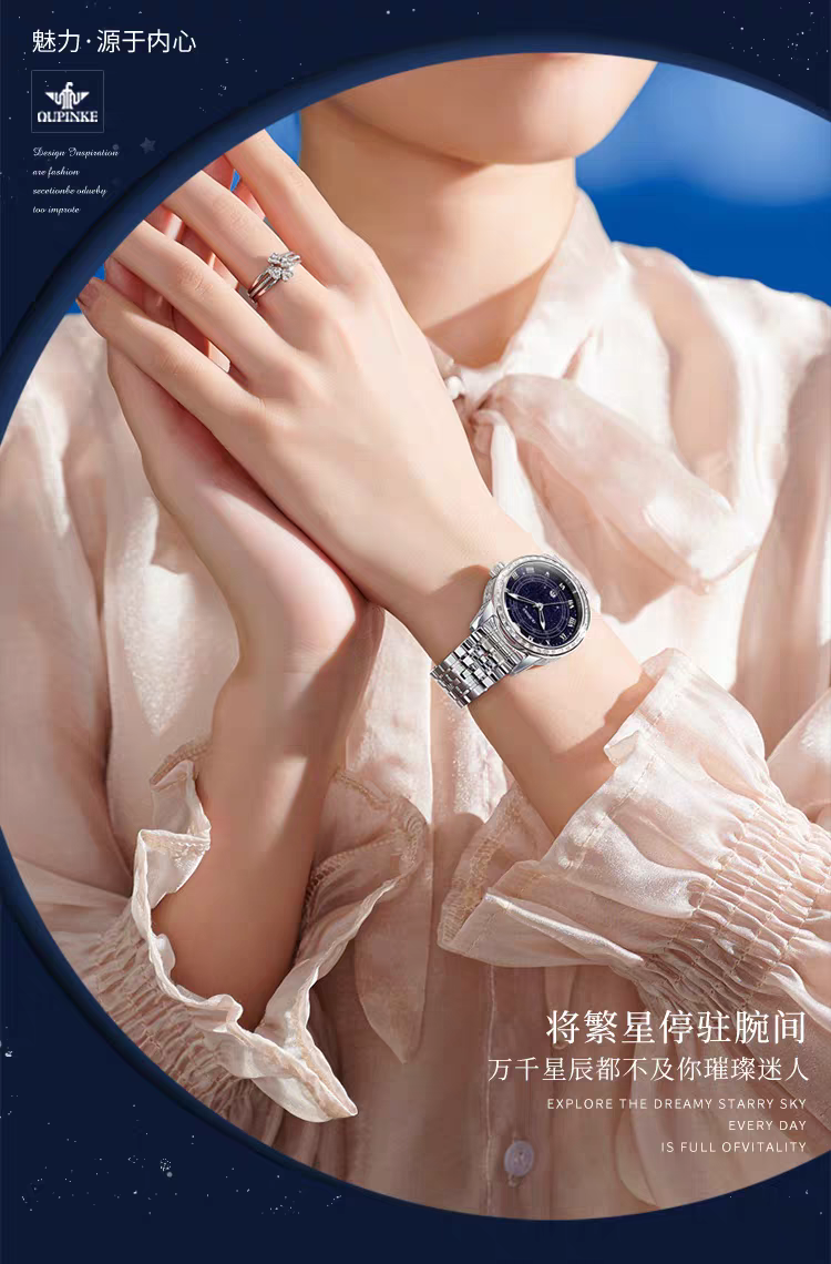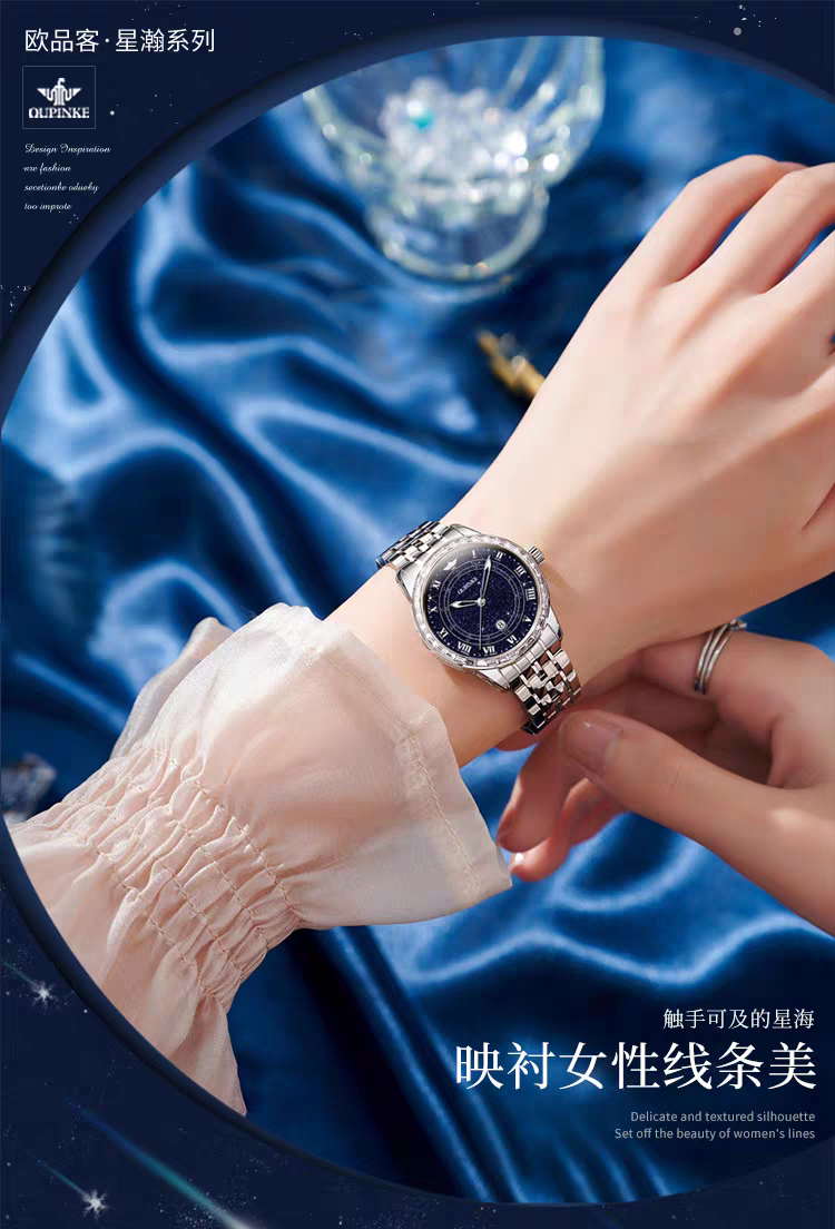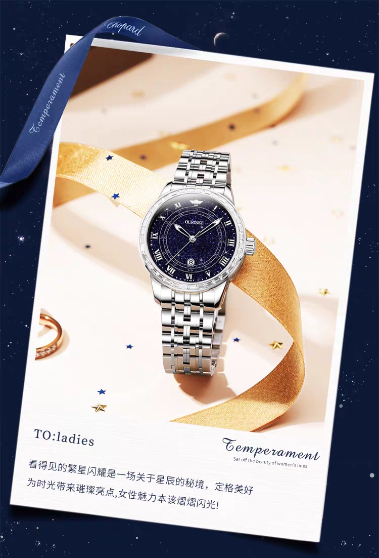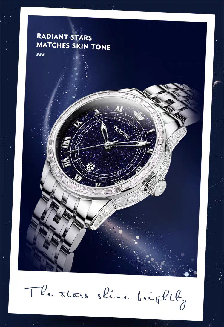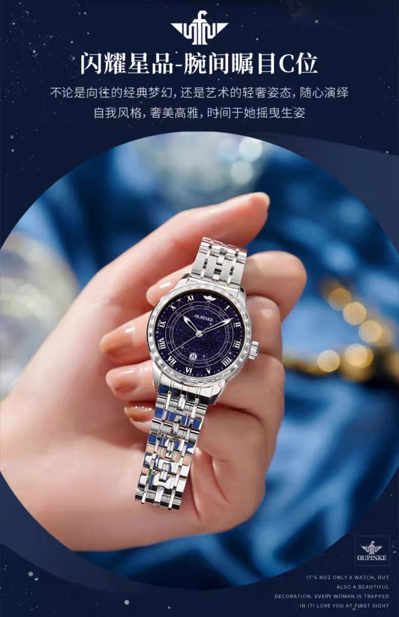 Nuevo reloj suizo genuino para mujer, cielo estrellado con diamantes, temperamento simple, reloj mecánico completamente automático, regalo luminoso para regalo