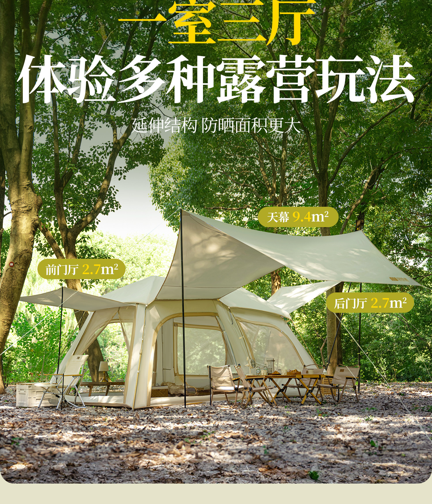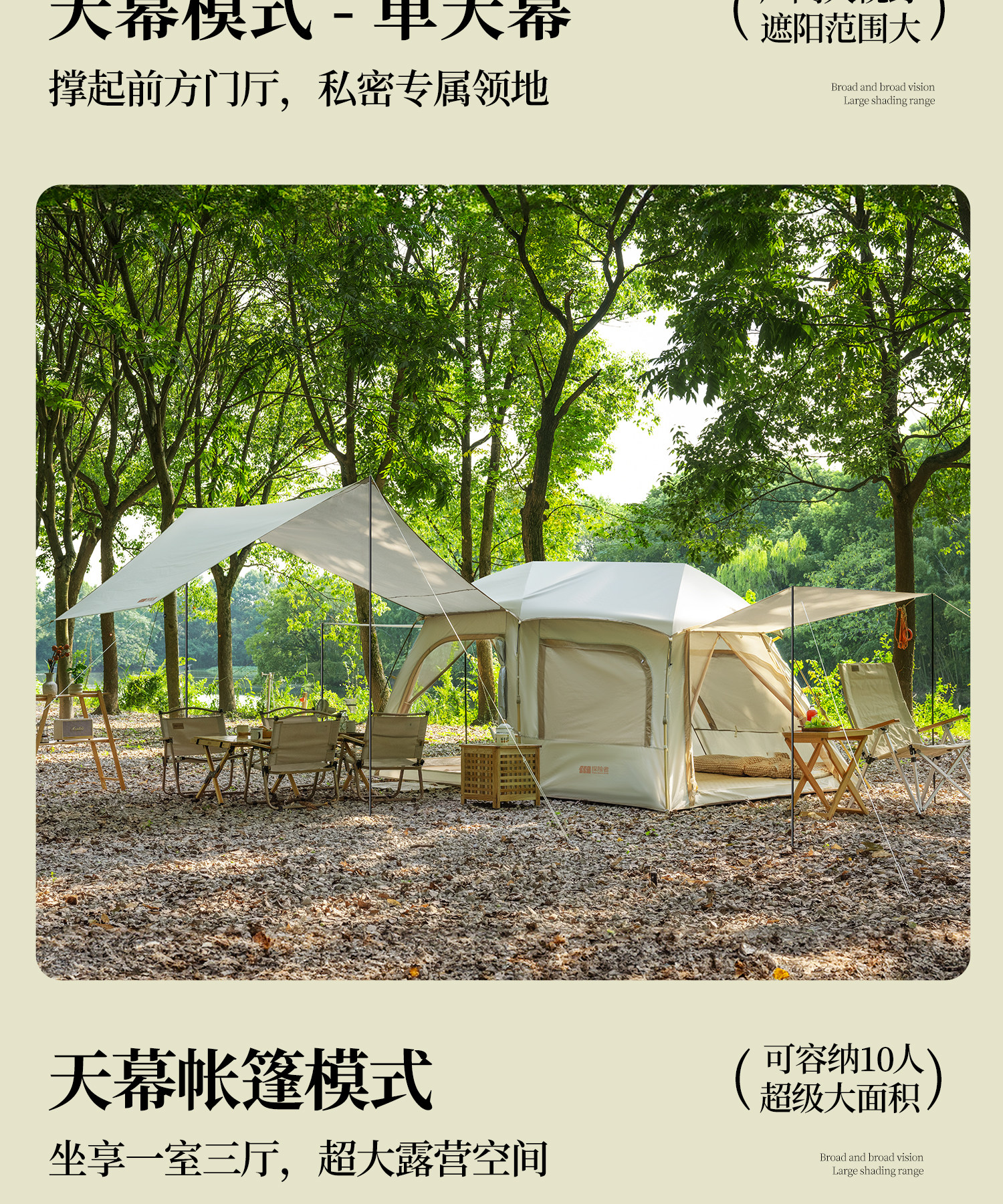 Палатка Explorer Qingshu 8.0 для кемпинга на открытом воздухе, всепогодная, с двумя спальнями и одной гостиной, полный комплект снаряжения для кемпинга, навес