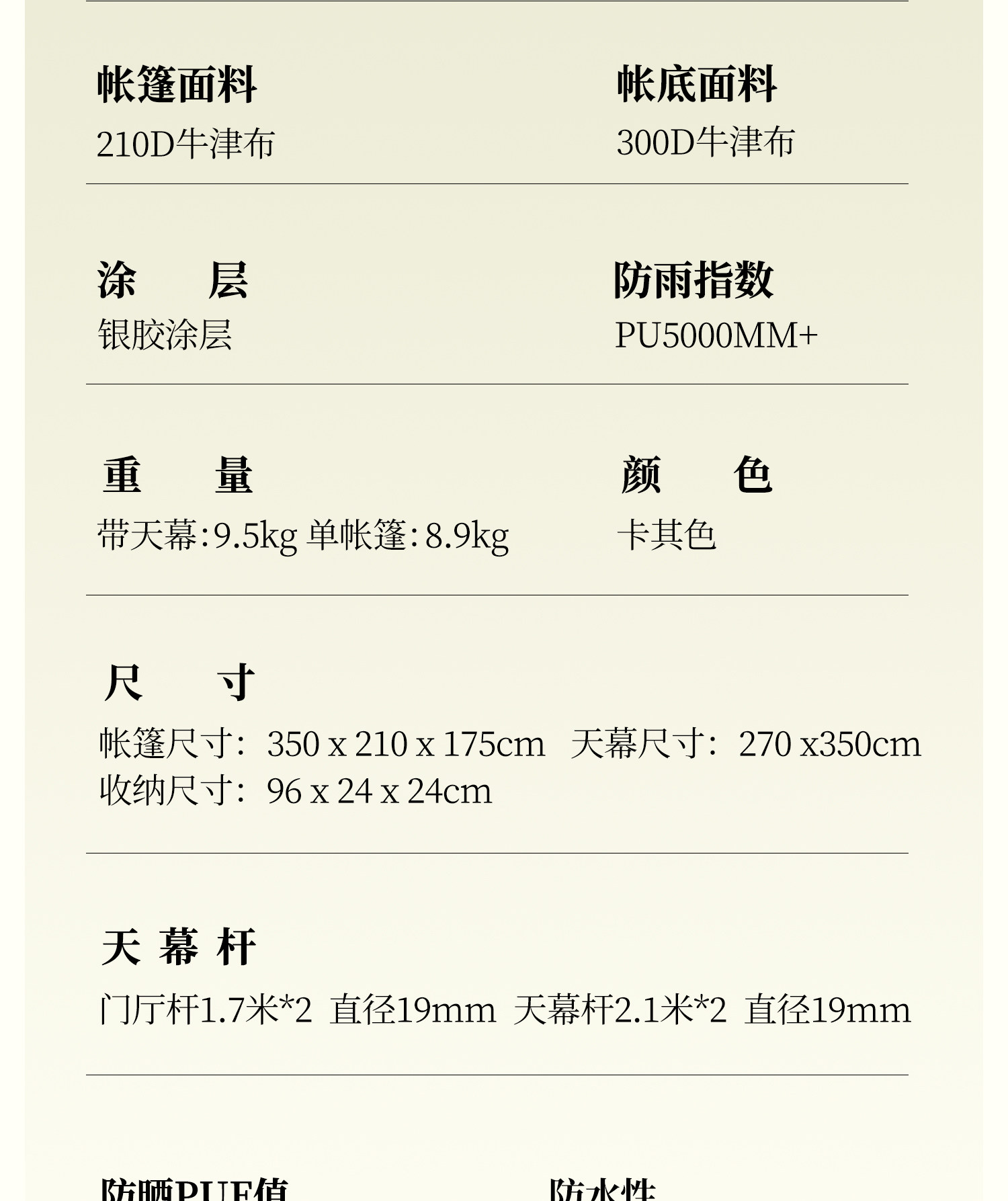 Водонепроницаемый индекс внешней палатки 2000 мм (включительно) – 3000 мм (включительно)