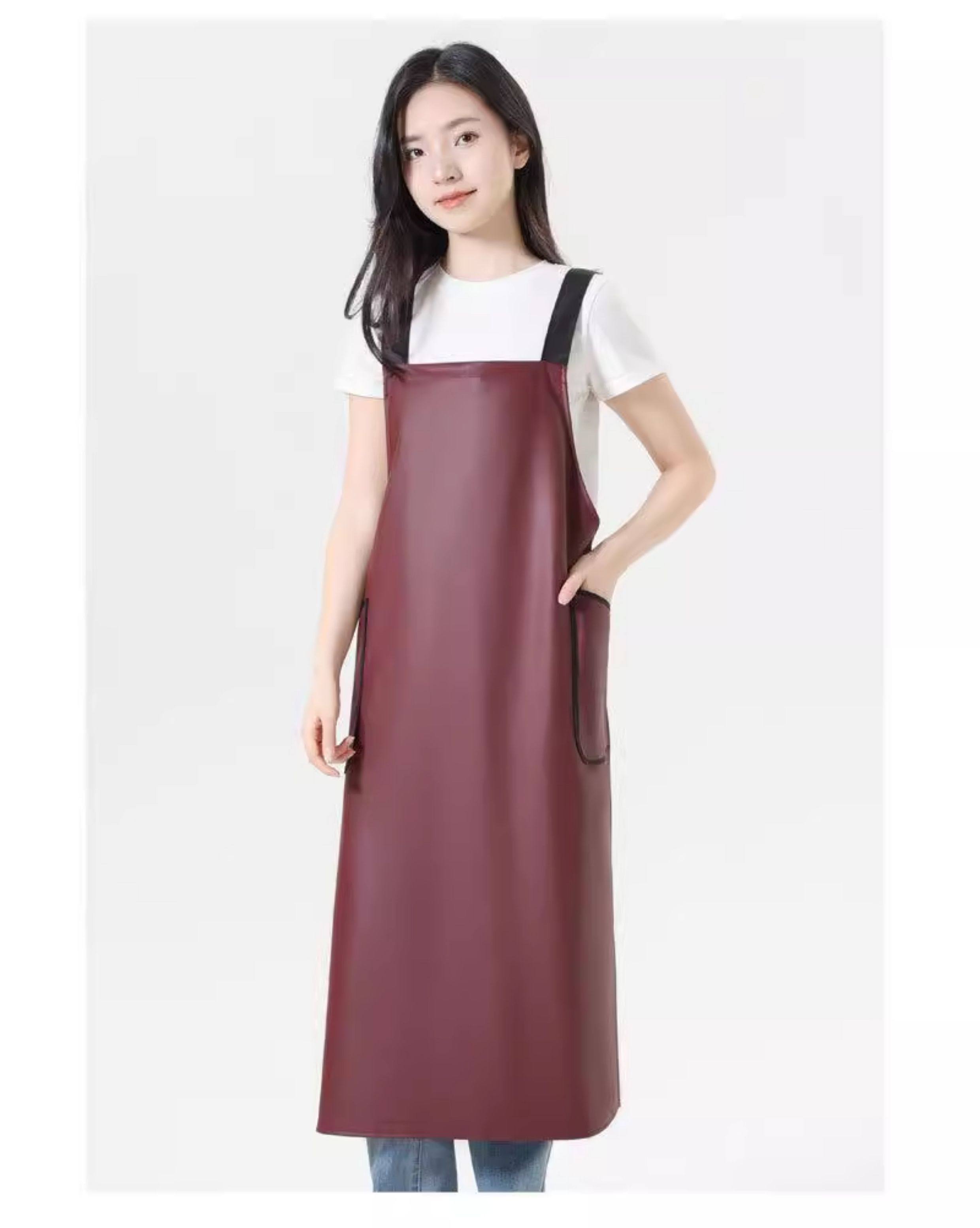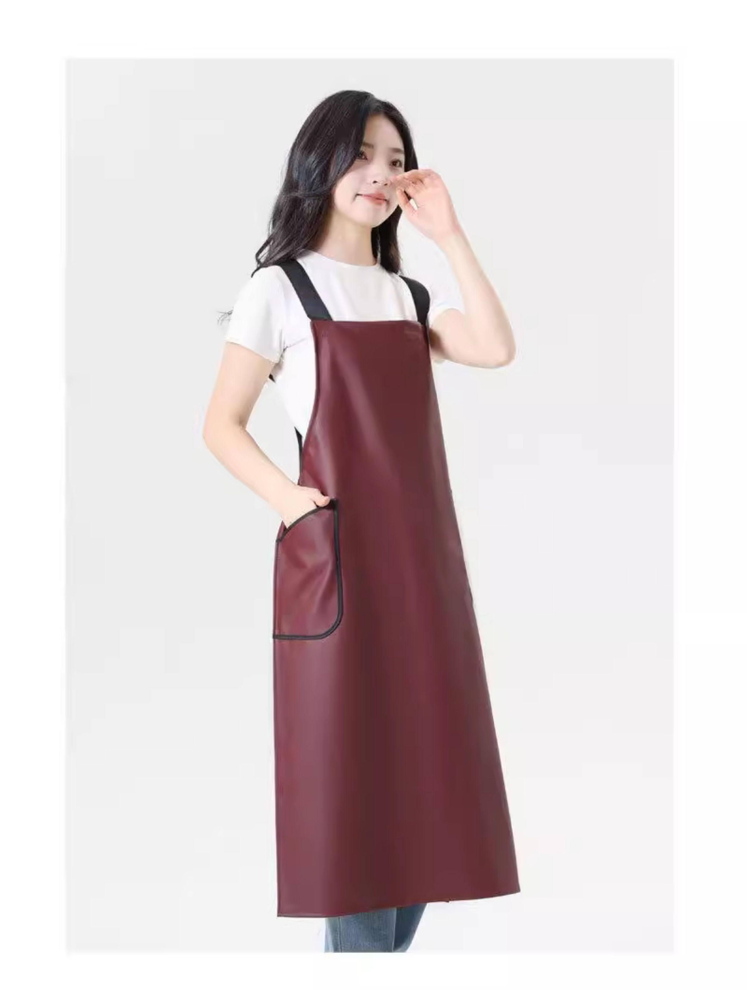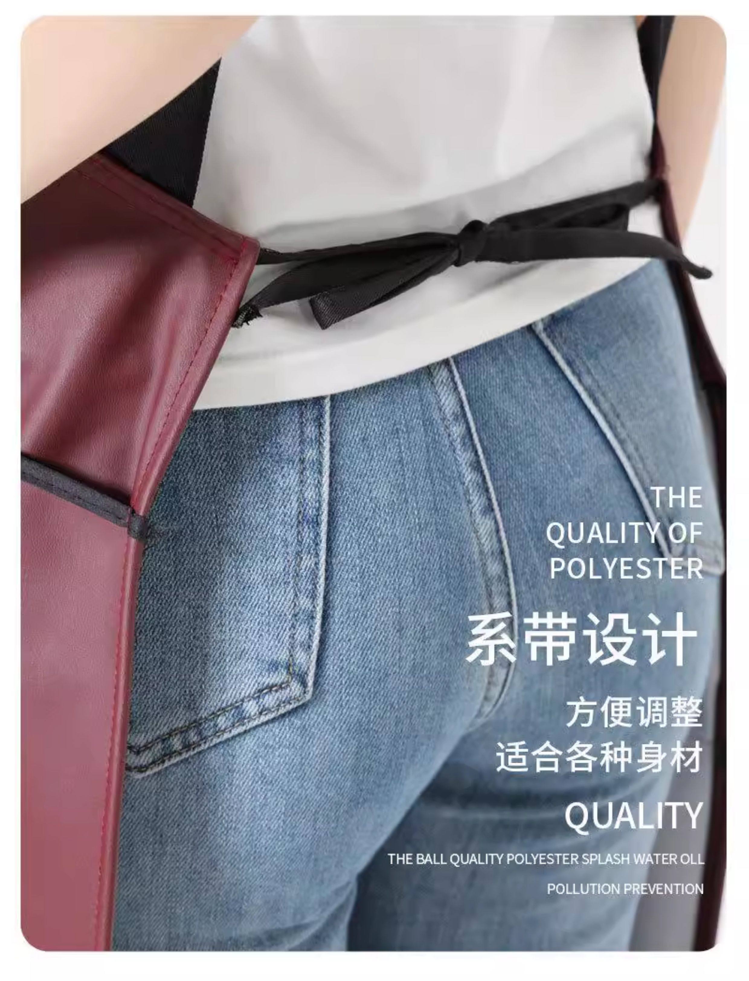 Kantinenspezifische wasserdichte Schürze, verlängerte PU-Schürze, ölbeständiges, weiches Leder, modische, waschfreie Schürze für die Arbeit, zu Hause und in der Küche