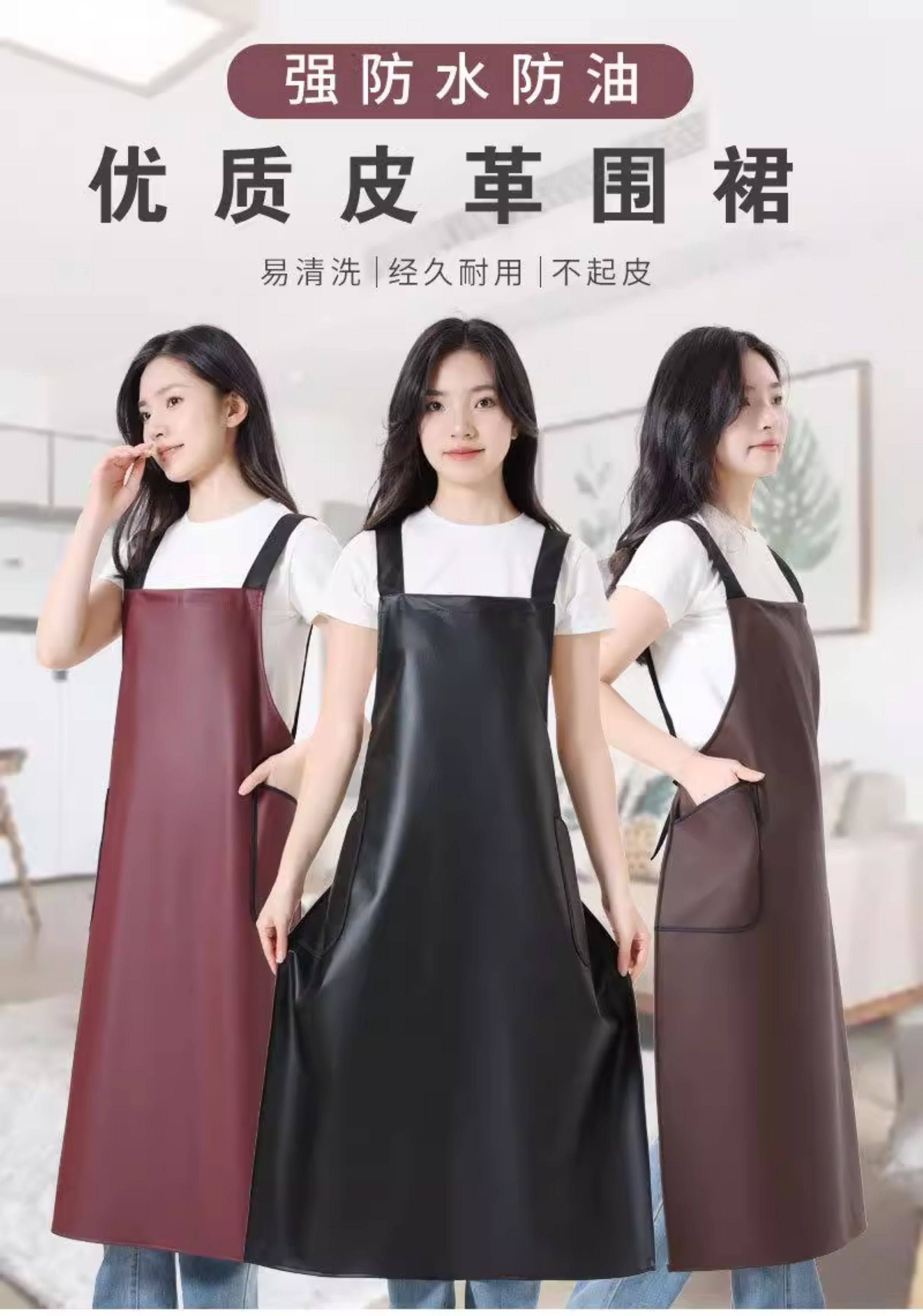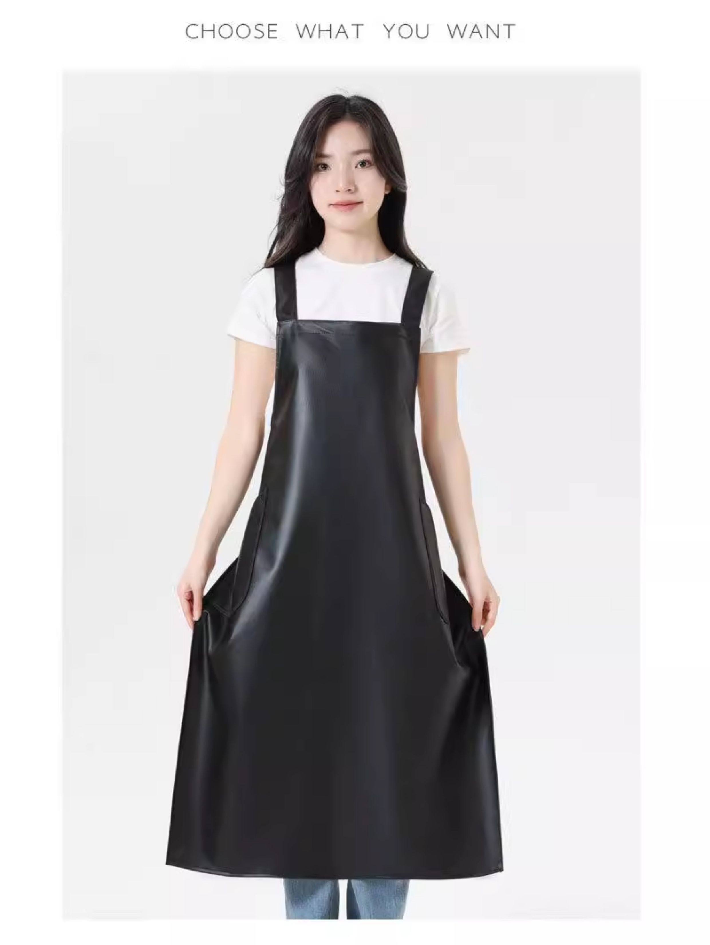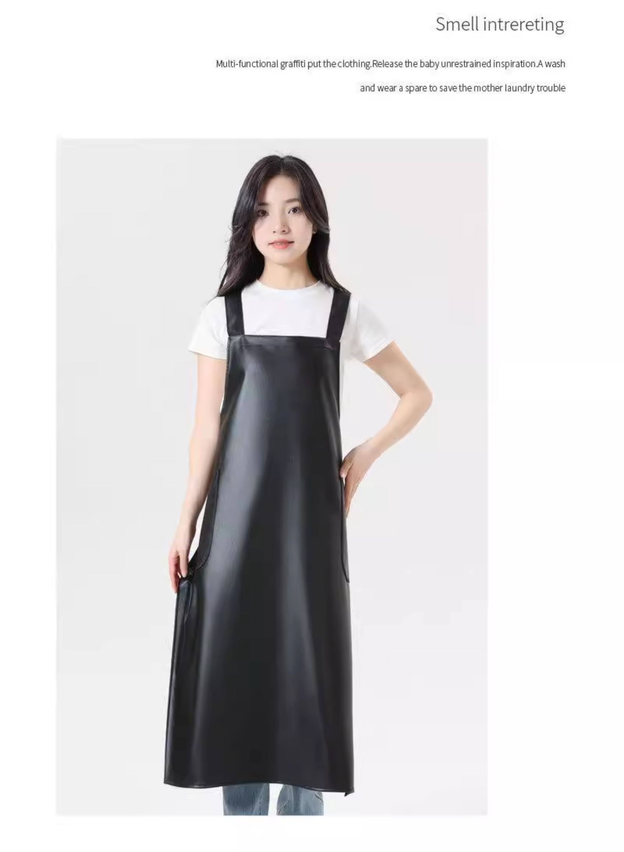 Kantinenspezifische wasserdichte Schürze, verlängerte PU-Schürze, ölbeständiges, weiches Leder, modische, waschfreie Schürze für die Arbeit, zu Hause und in der Küche