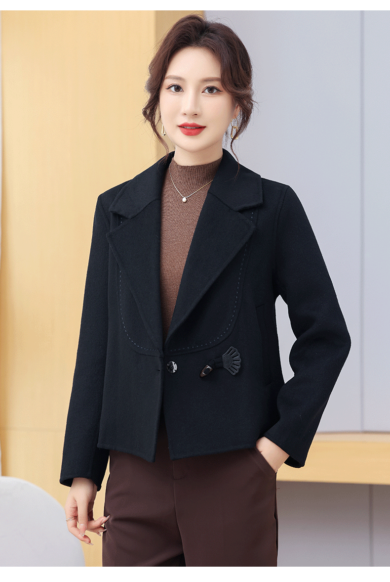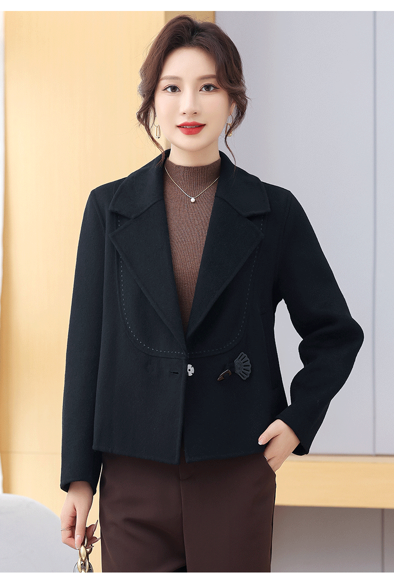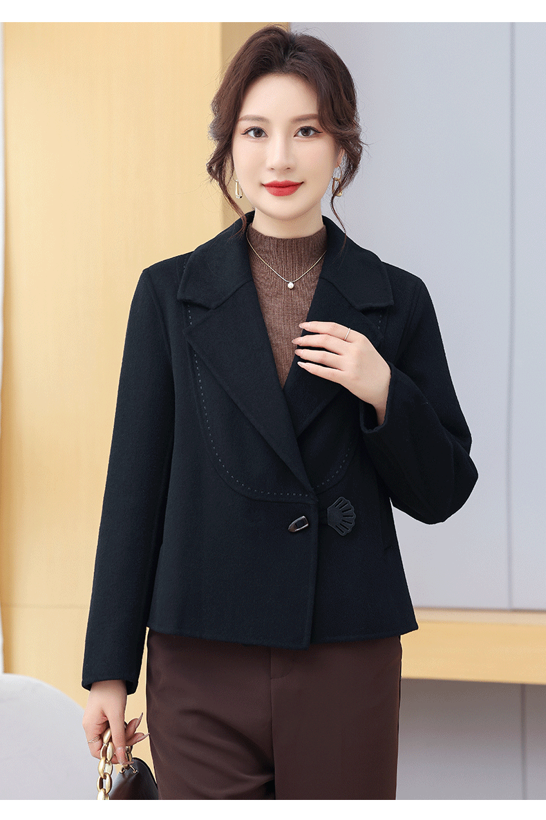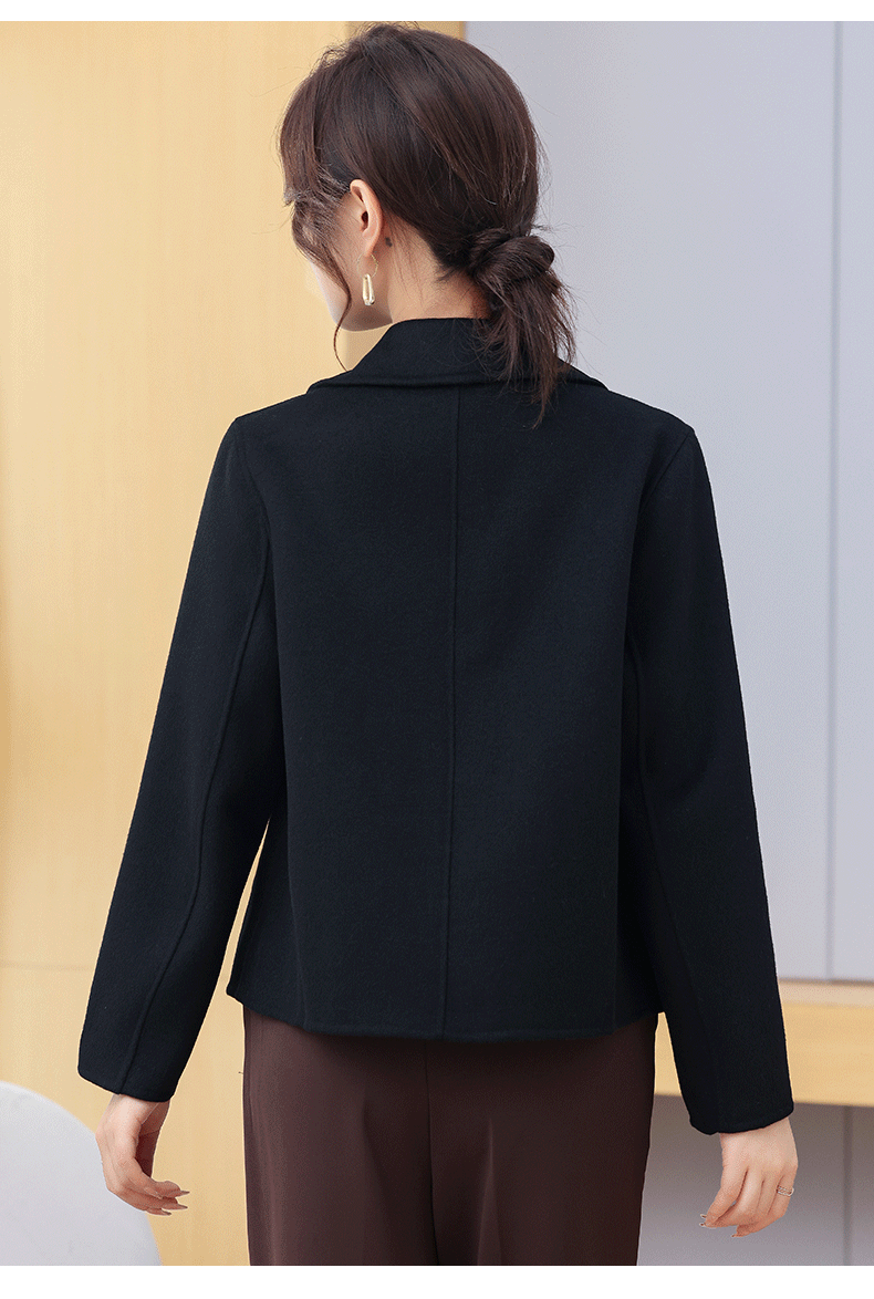 Manteau en cachemire double face pour petites personnes, style court, haut et mince, élégant, anti-âge, hauts d'automne et d'hiver, manteau en laine pour femme