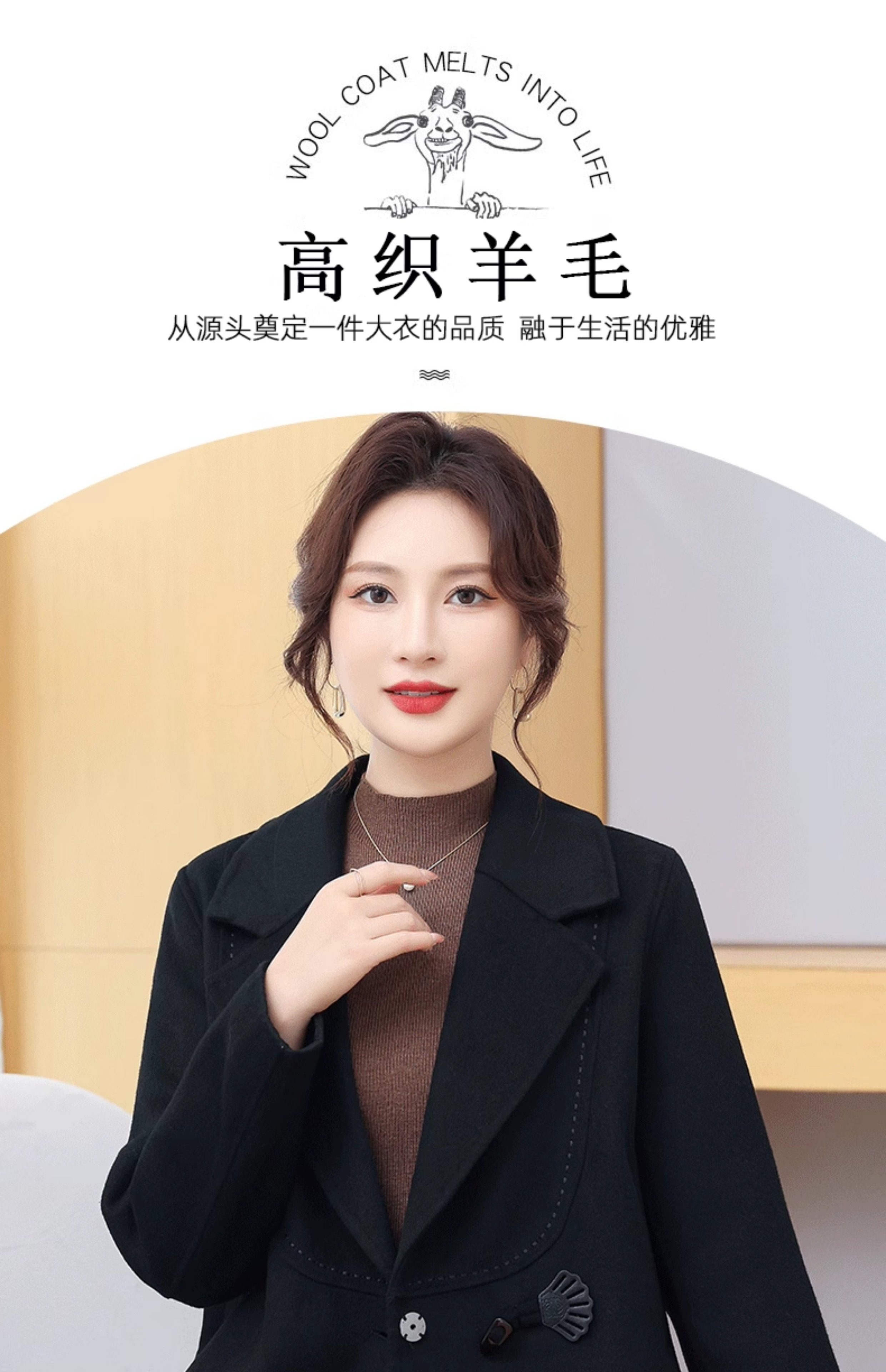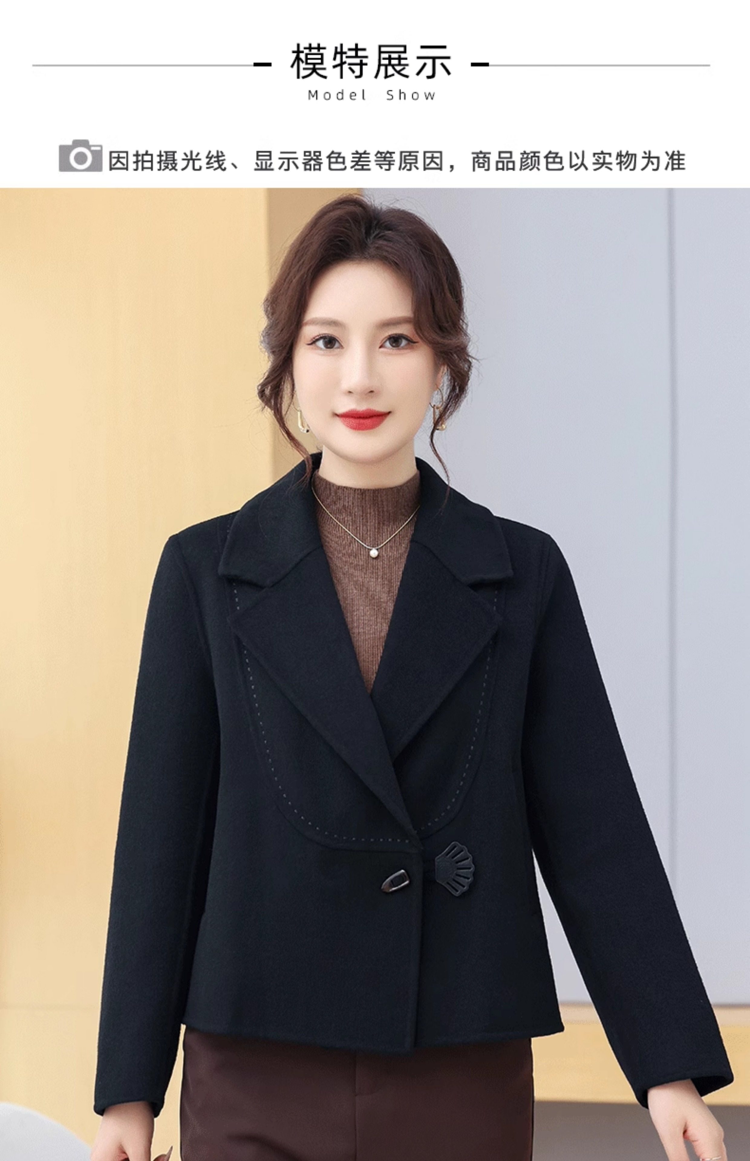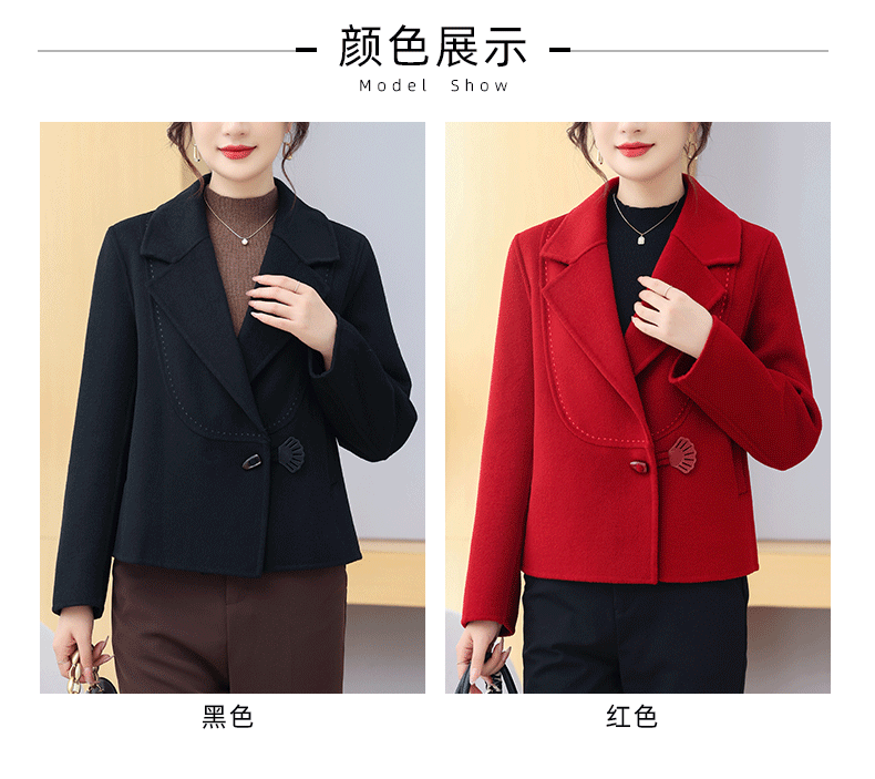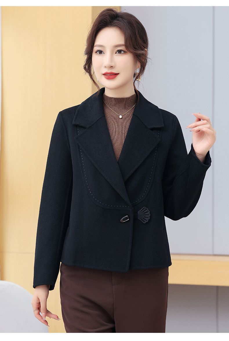 Manteau en cachemire double face pour petites personnes, style court, haut et mince, élégant, anti-âge, hauts d'automne et d'hiver, manteau en laine pour femme