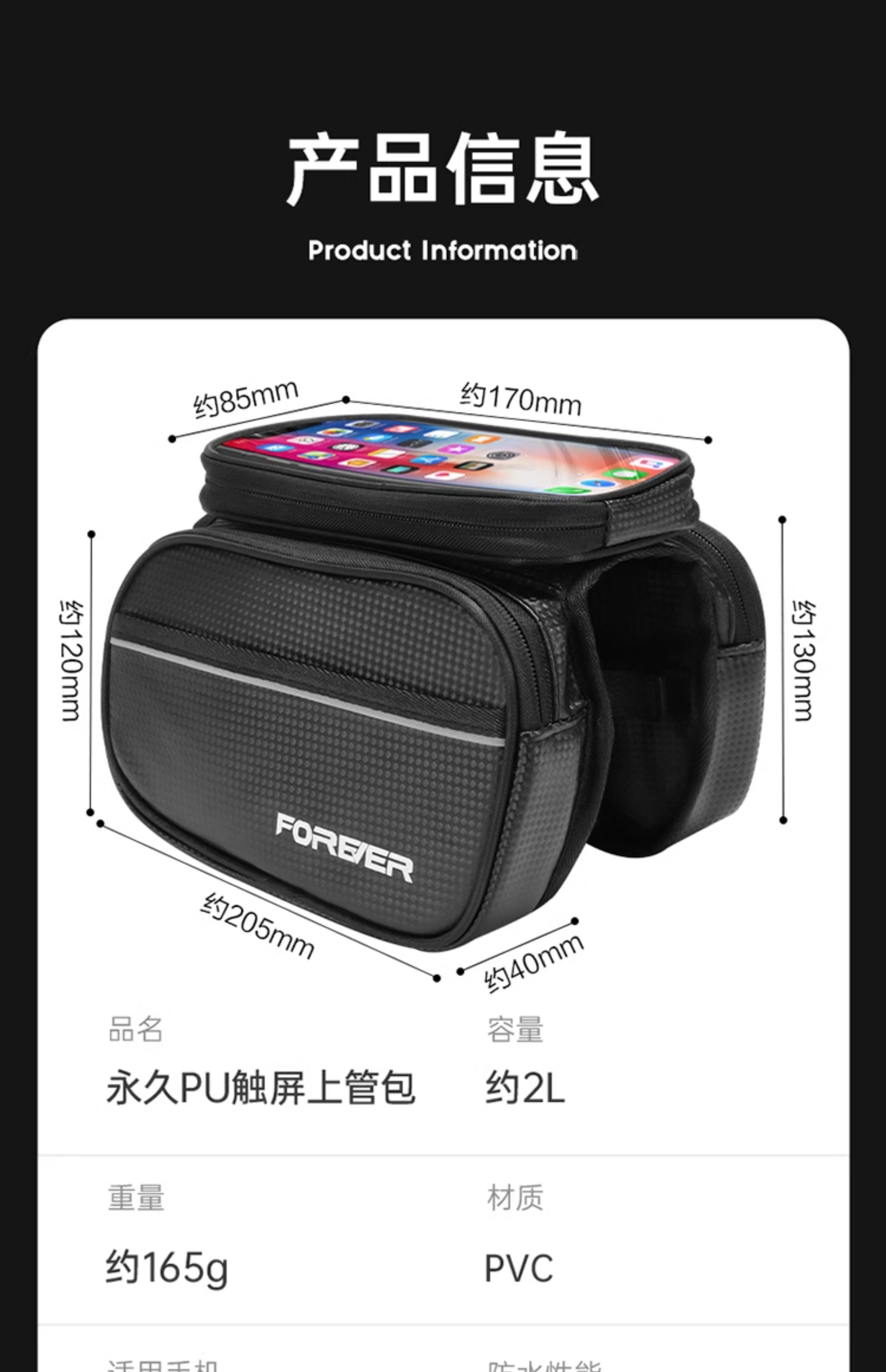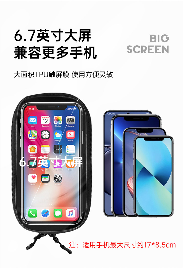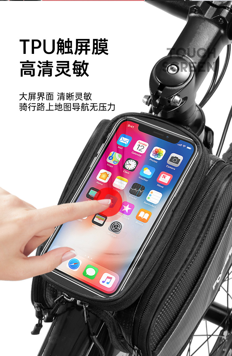 Farbklassifizierung Permanente PU-Touchscreen-Oberrohrtasche – schwarz