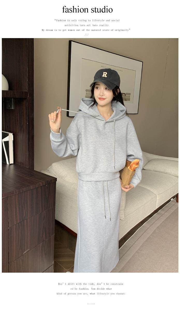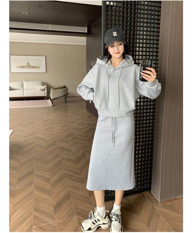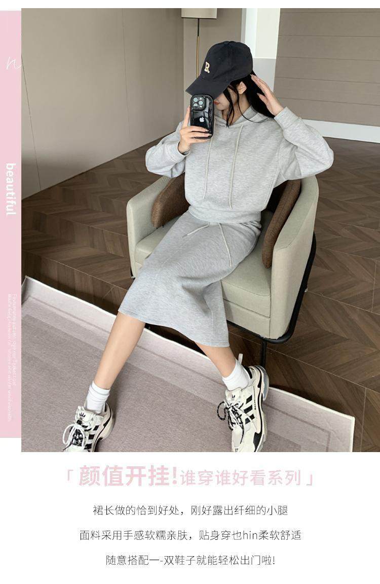 两件套运动套装卫衣半身裙时尚显瘦春秋穿搭连帽高级减龄休闲女装