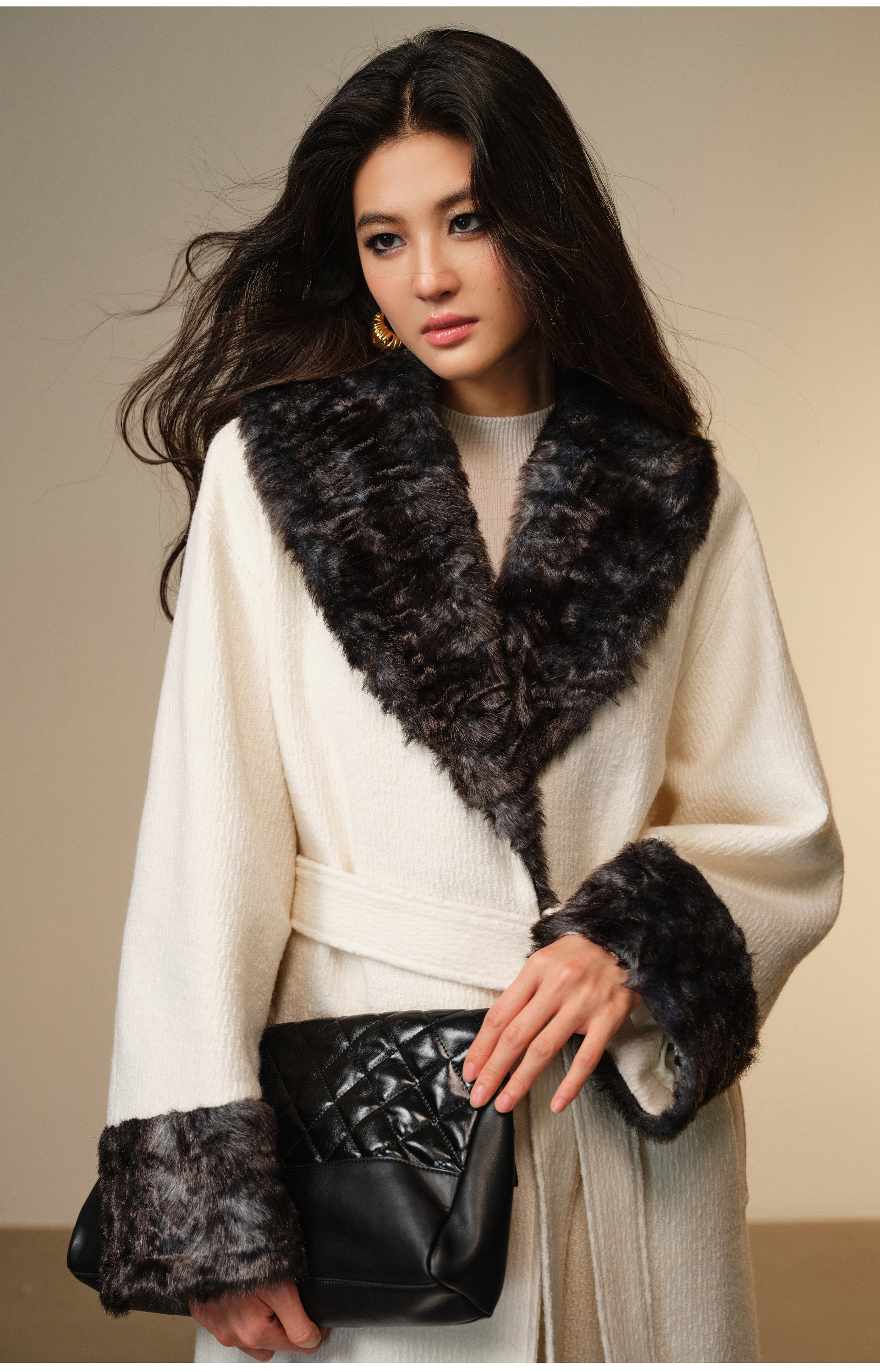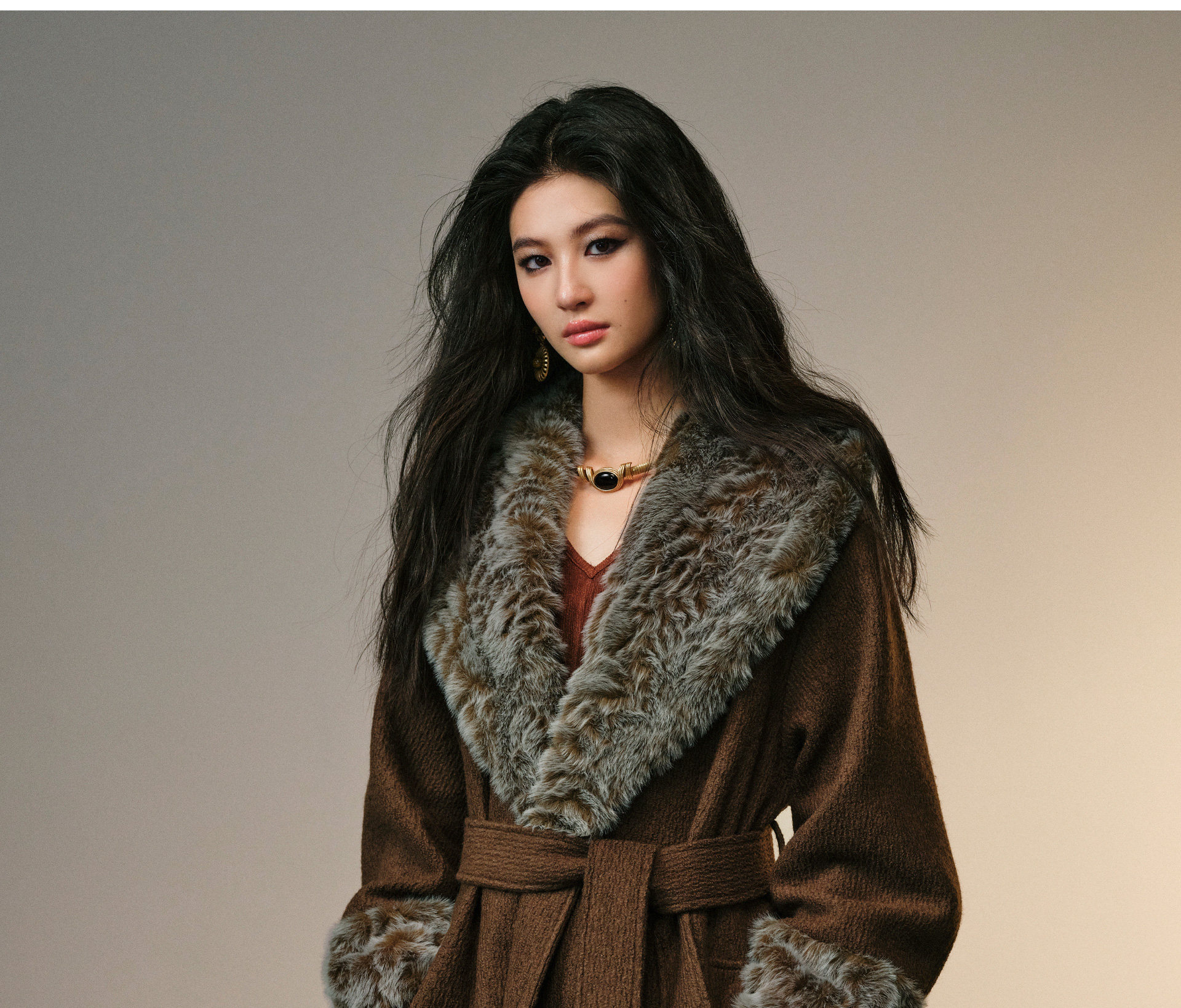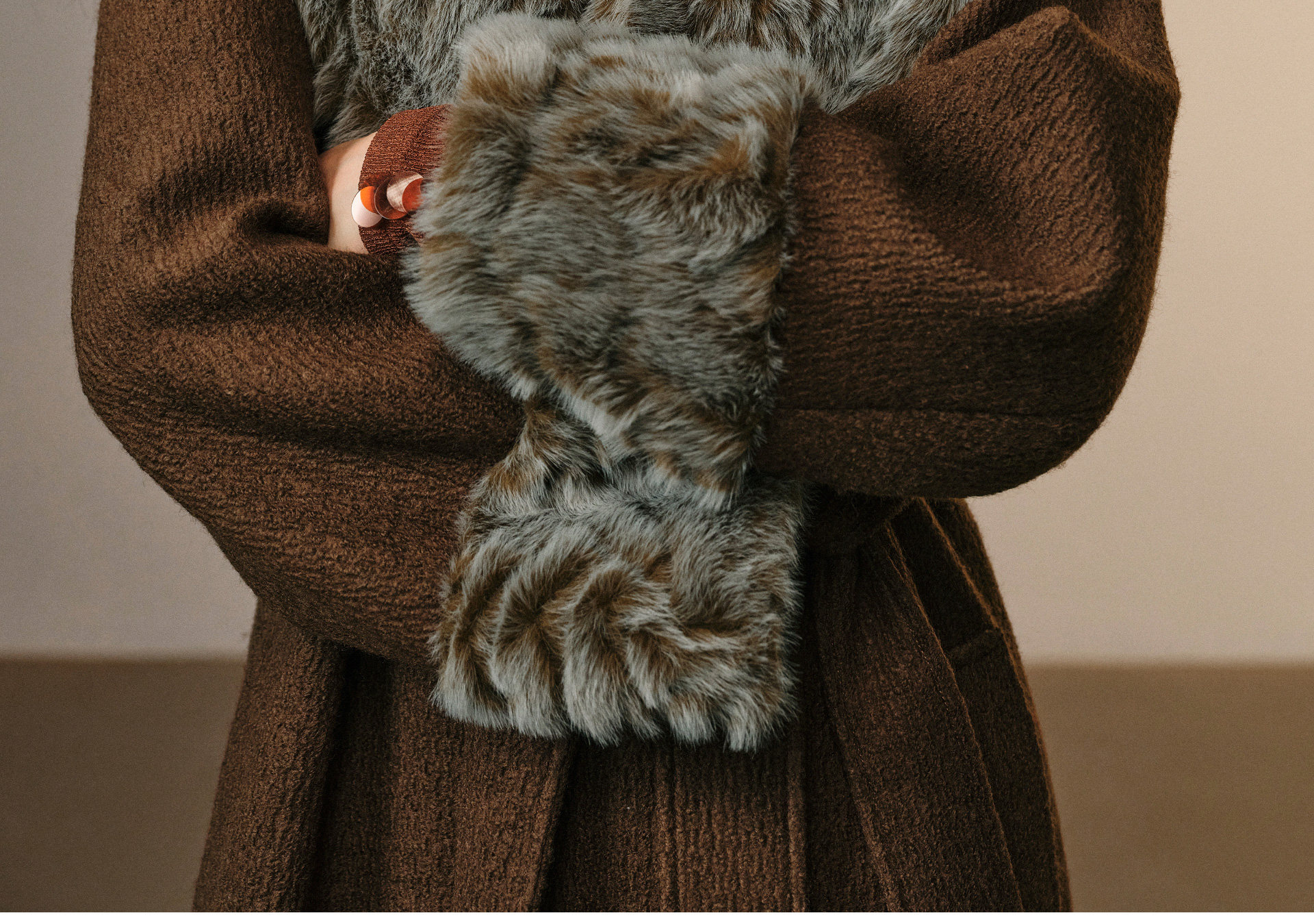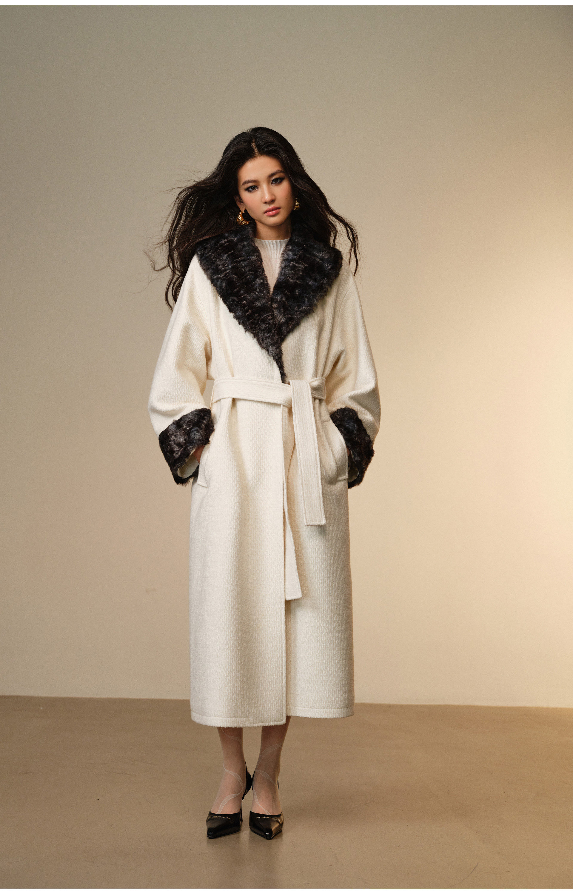 Wangxo|Dense Looped Wool Fabric|Heavyweight Fur Collar|Layered Tie-Up Silhouette Lapel Coat