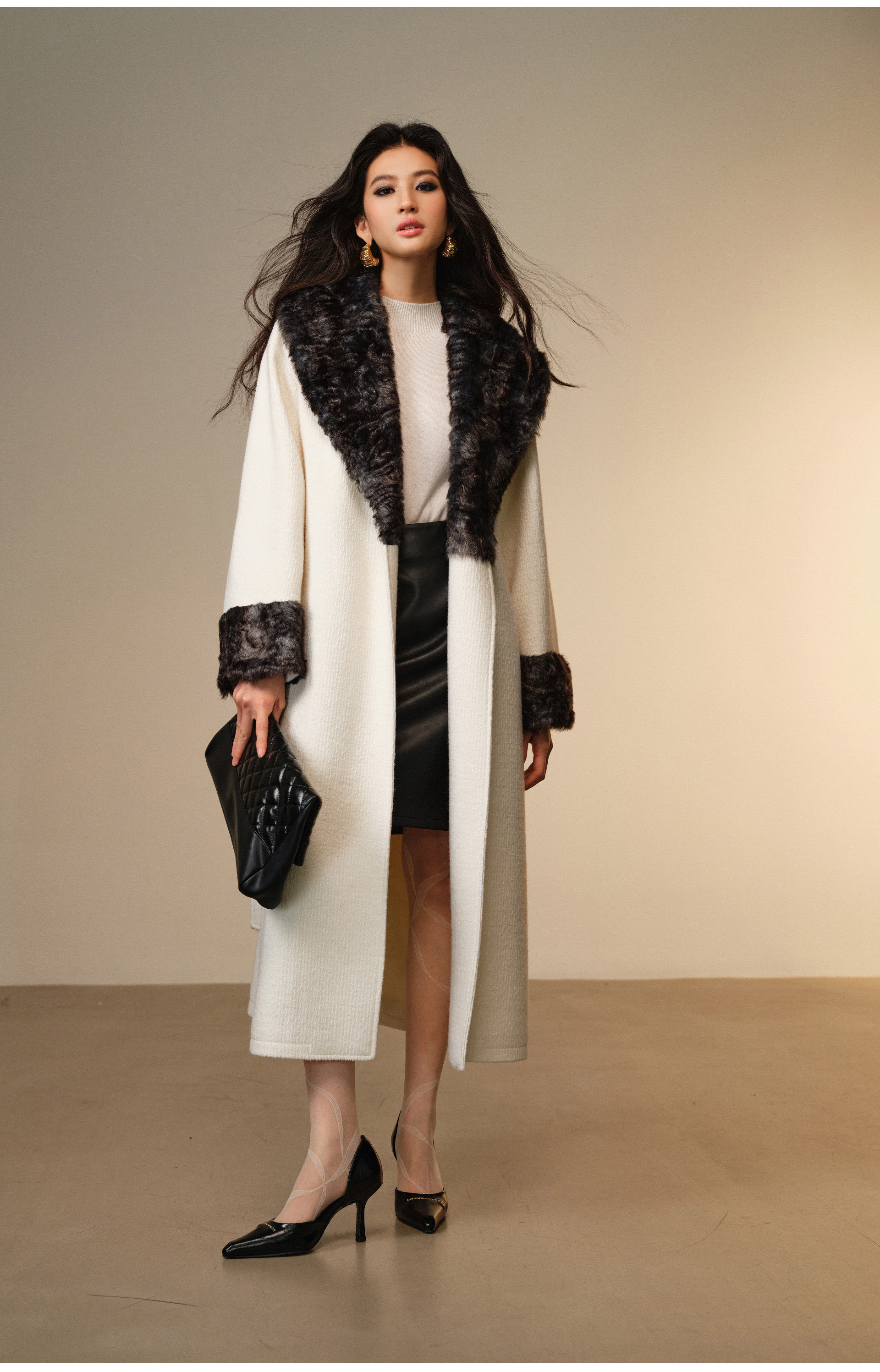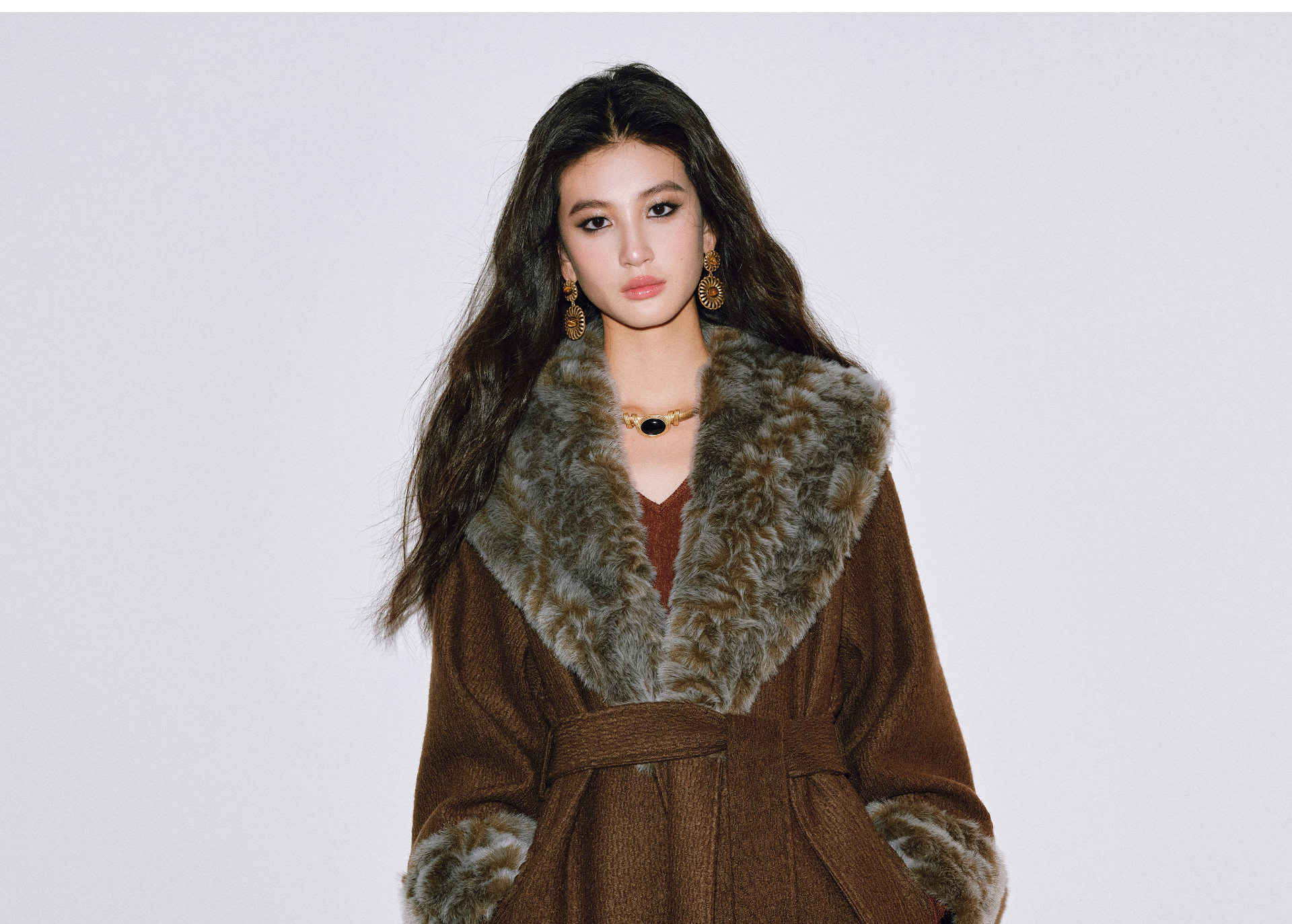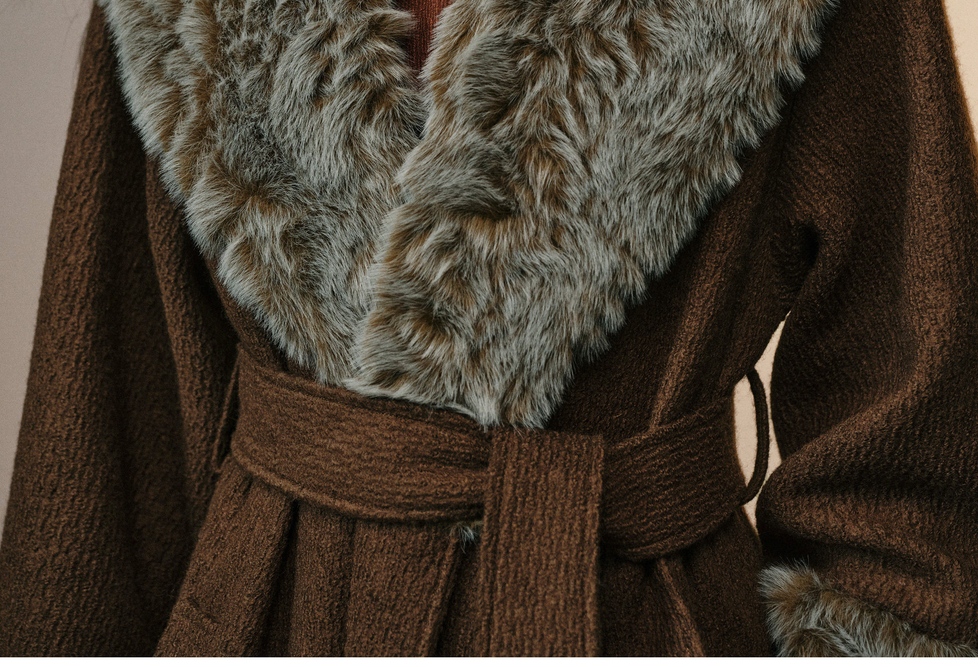 Wangxo|Dense Looped Wool Fabric|Heavyweight Fur Collar|Layered Tie-Up Silhouette Lapel Coat