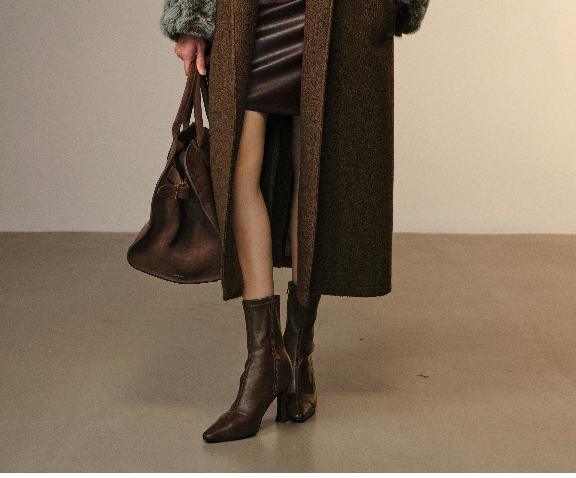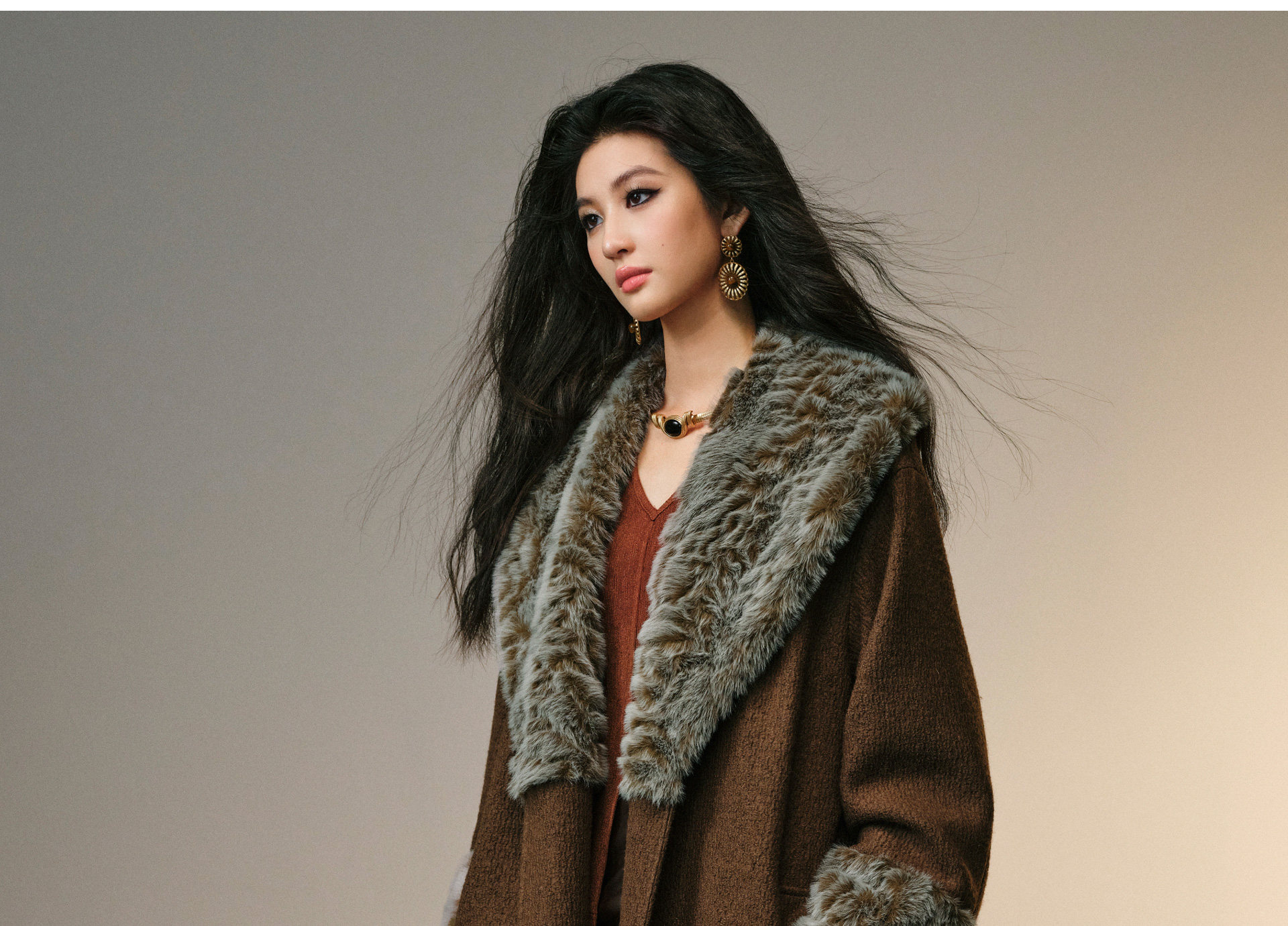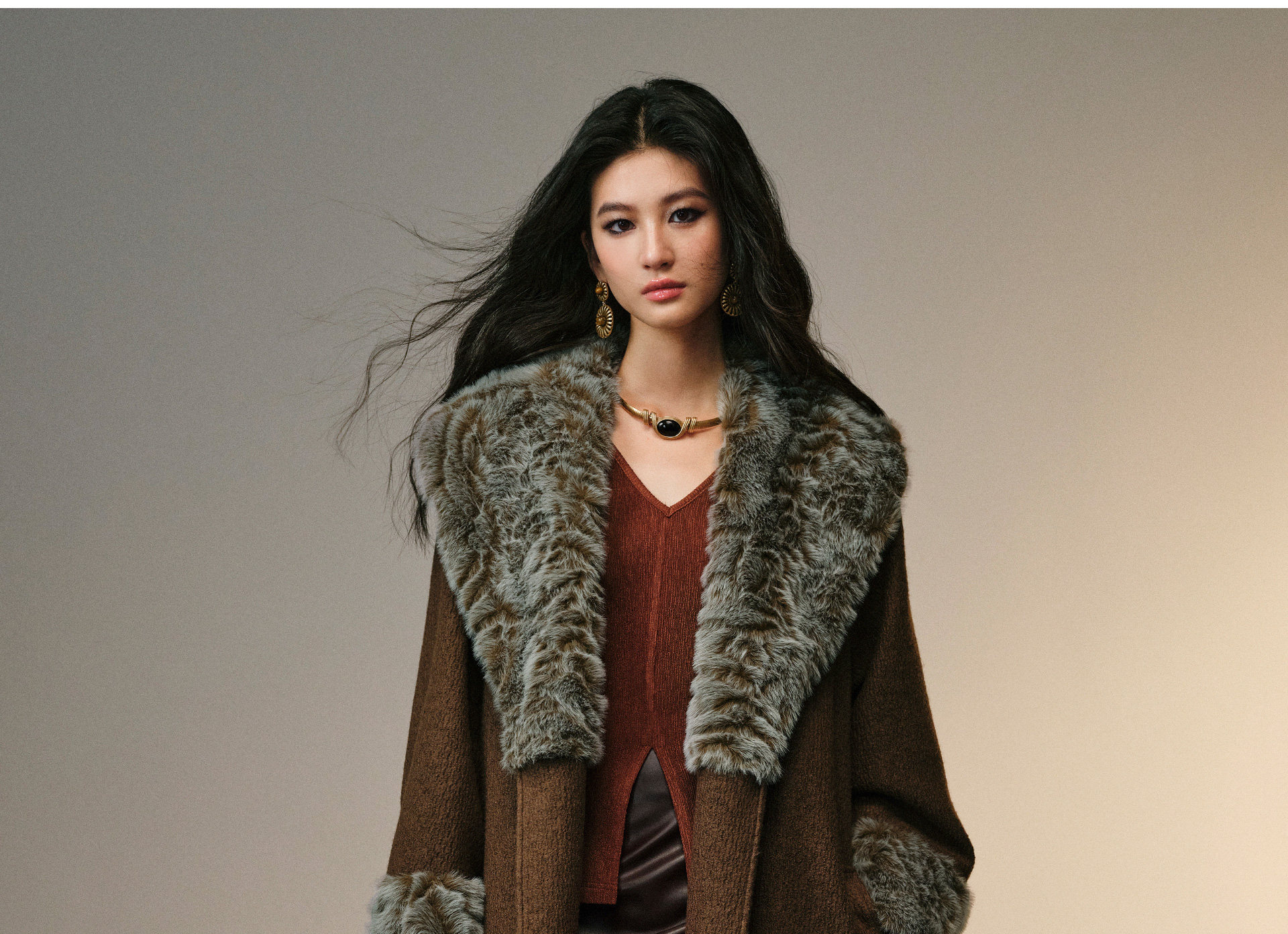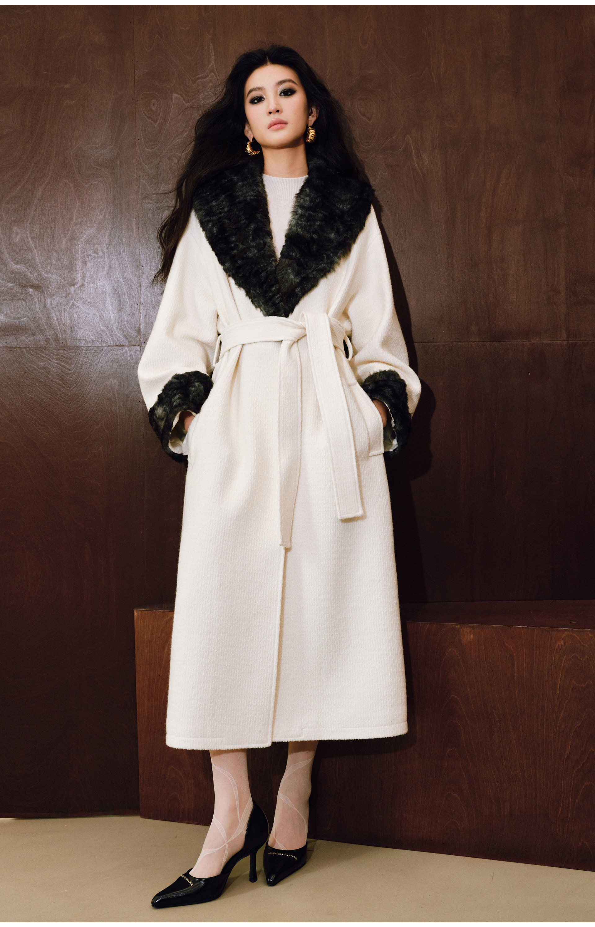 Wangxo|Dense Looped Wool Fabric|Heavyweight Fur Collar|Layered Tie-Up Silhouette Lapel Coat