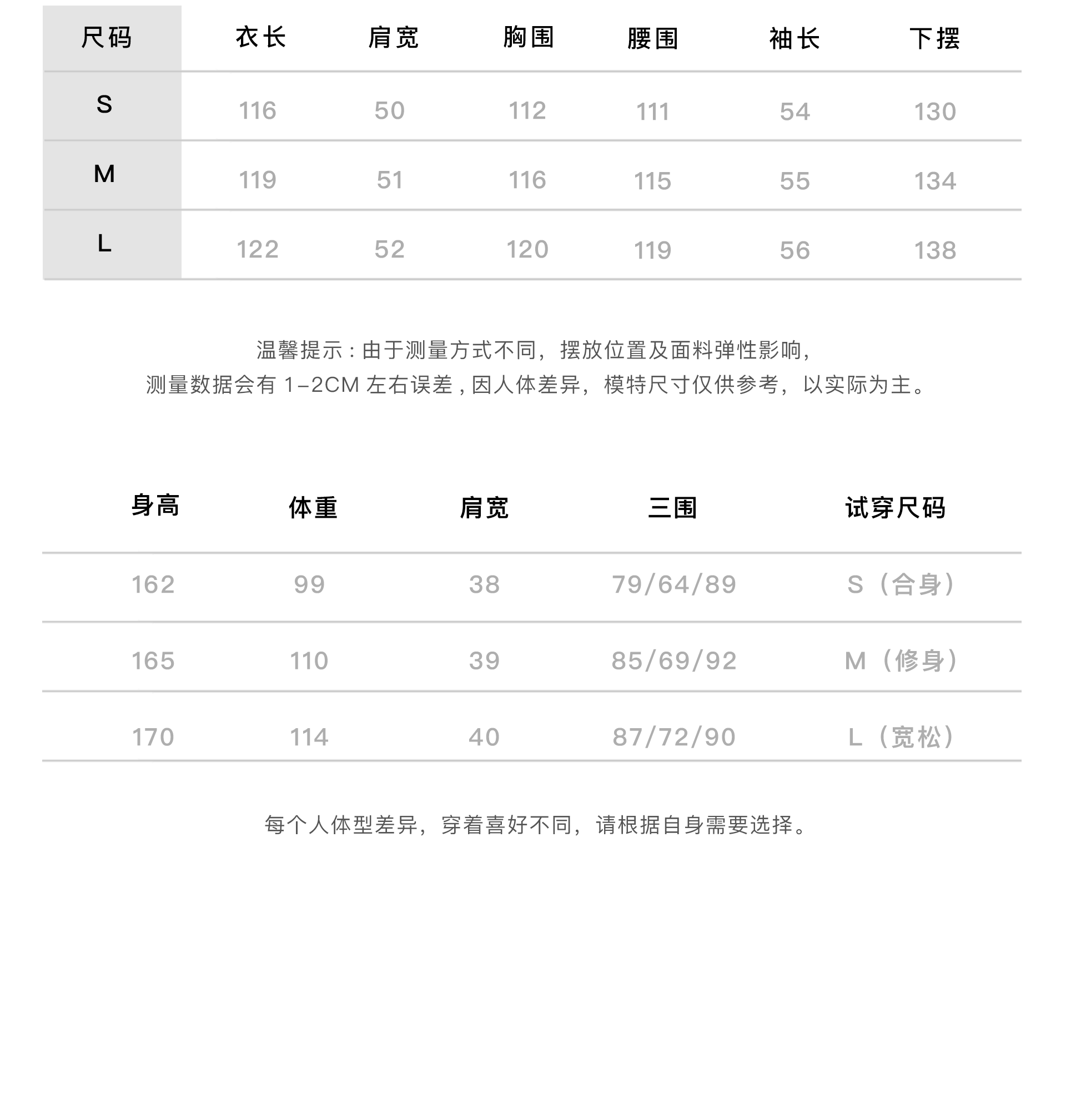 China (cm) 160-165/84-86 165-170 / 88-90 167-172 / 92-96 168-173 / 98-102 170-176 / 106-110