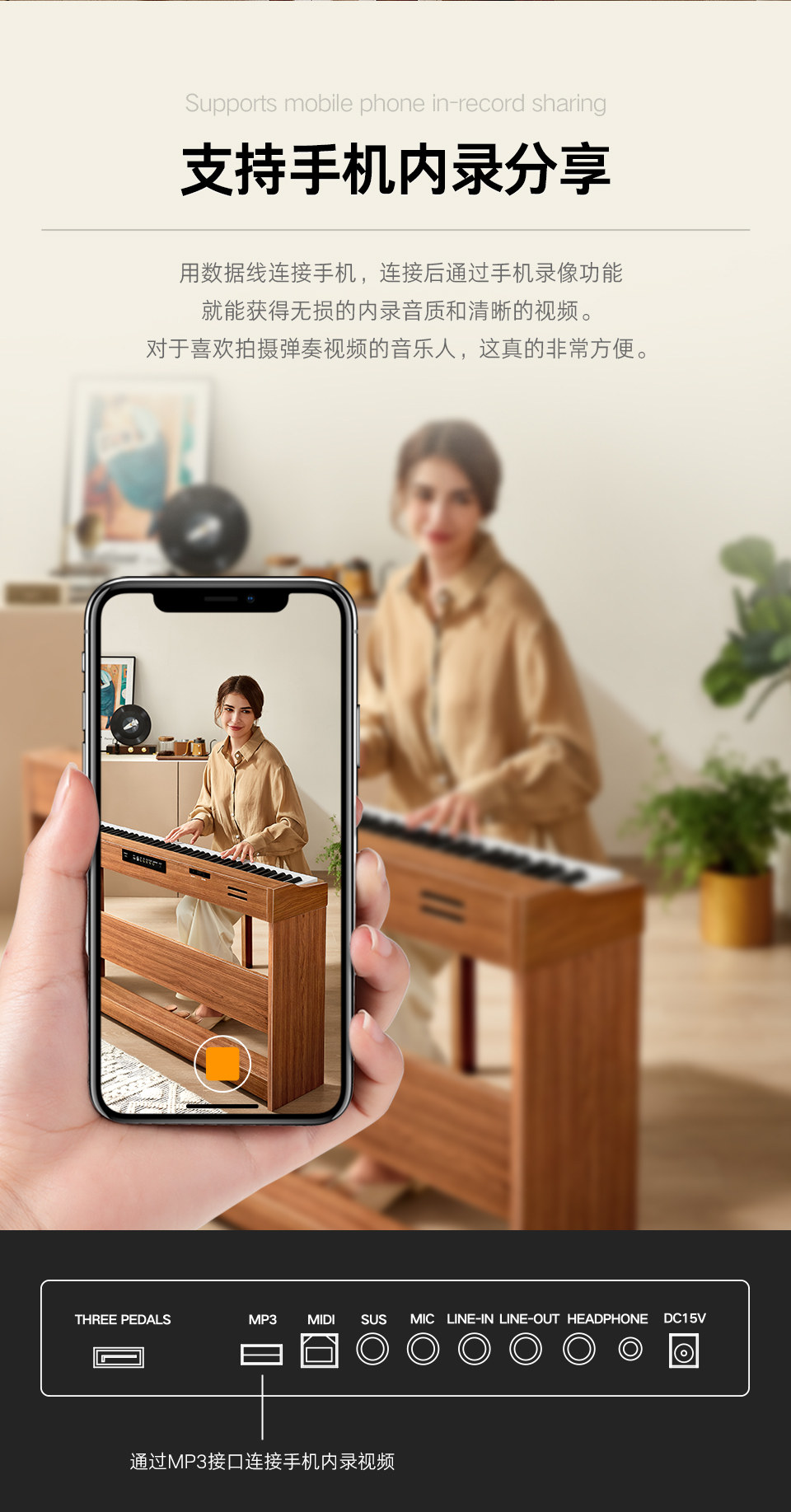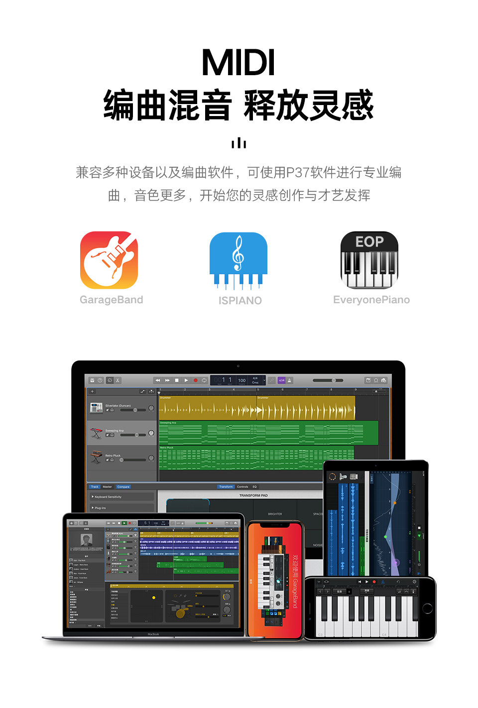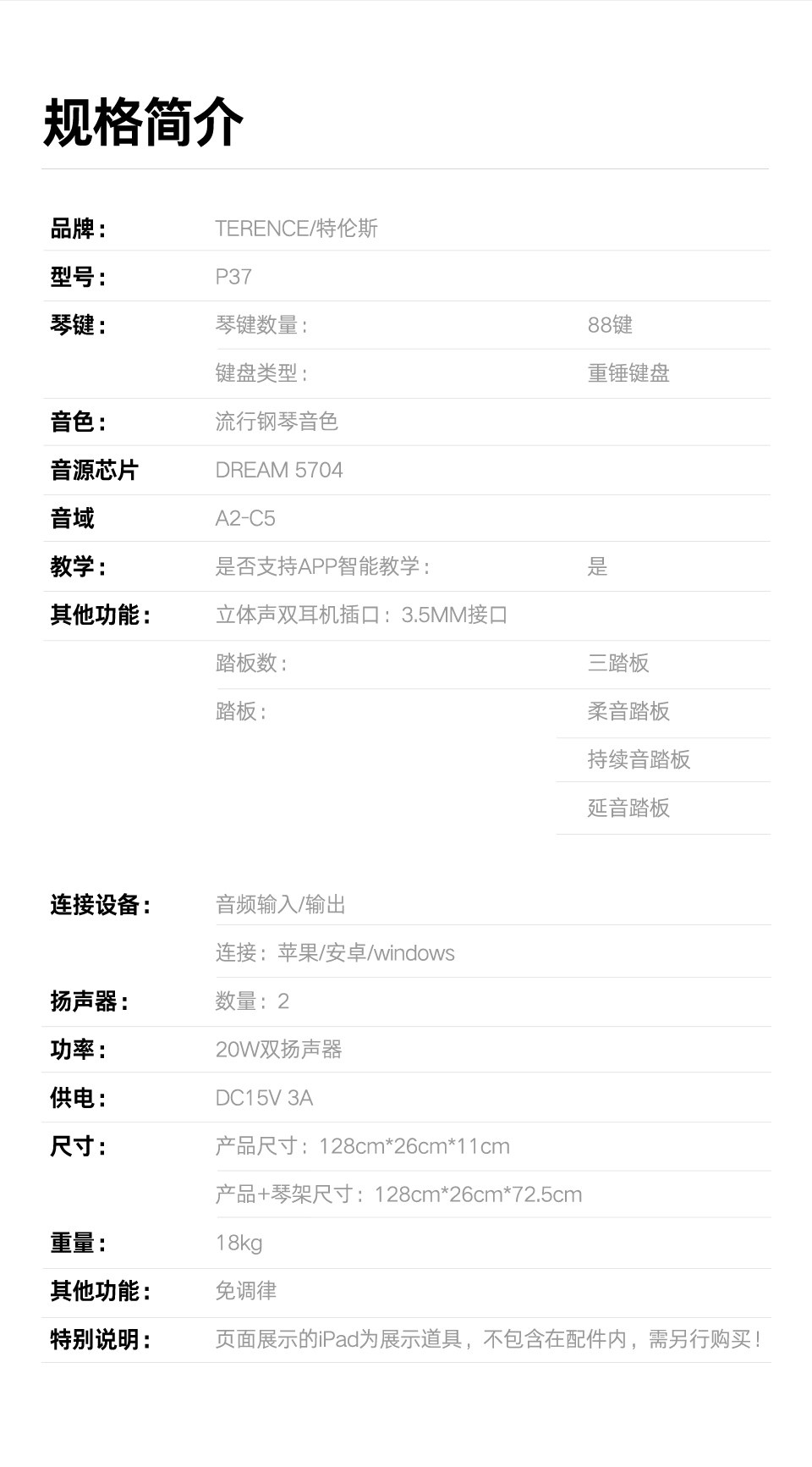 特伦斯P37电钢琴便携式专业88键重锤现代钢琴家用初学者新款复古